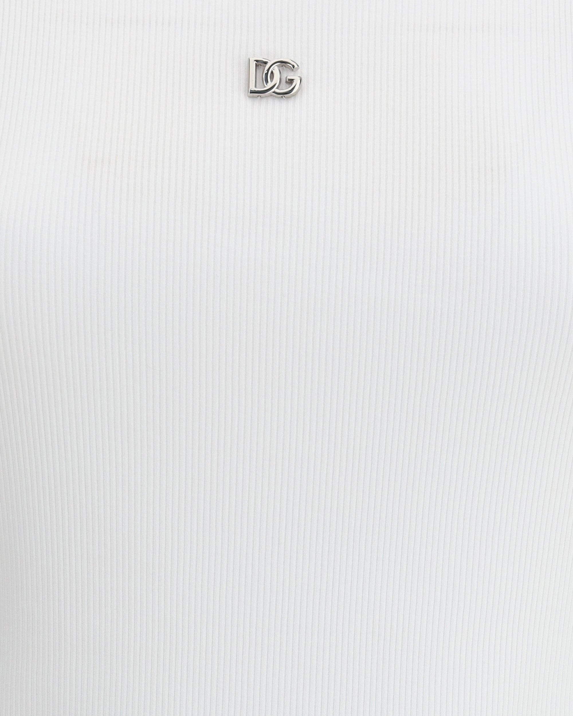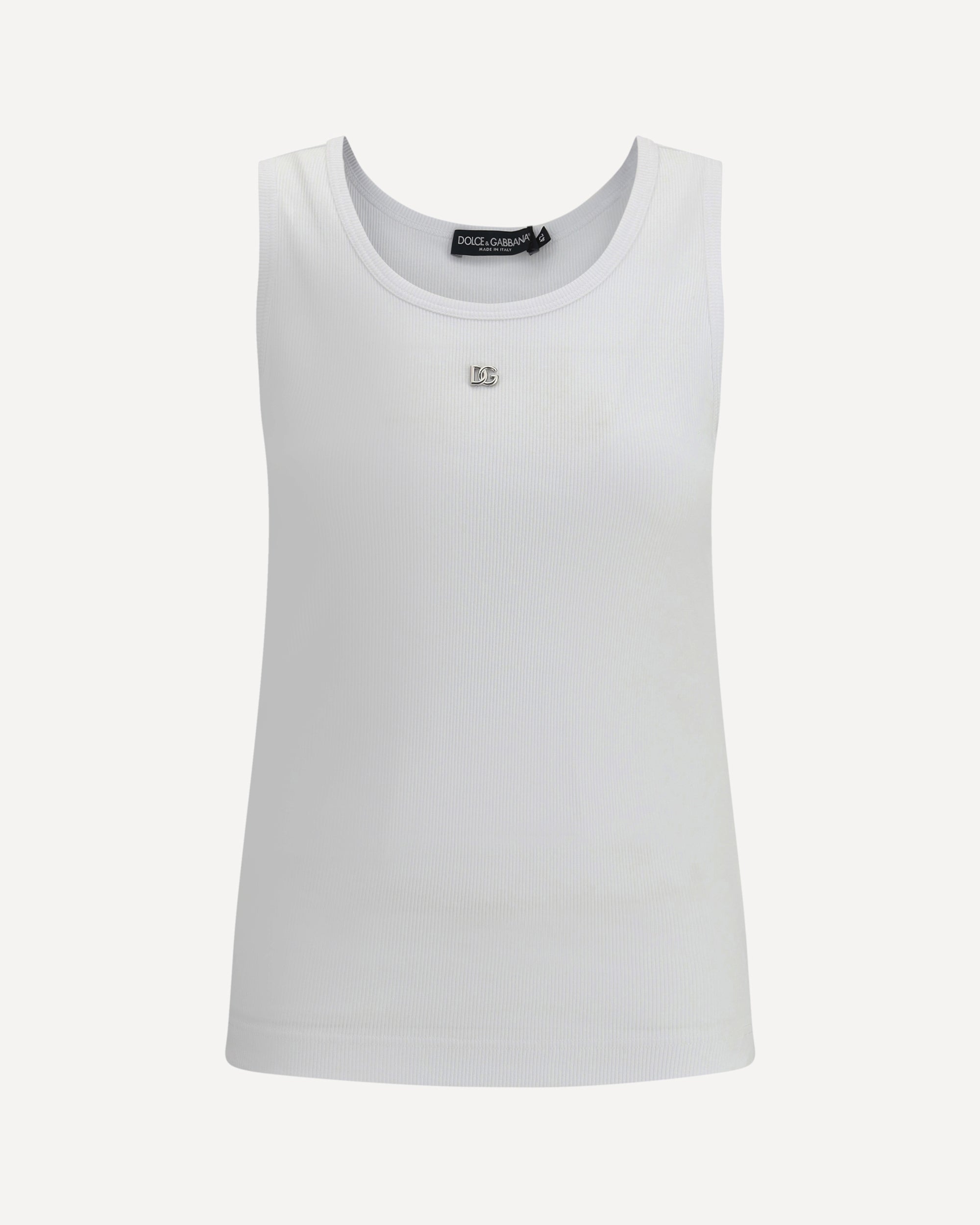 Dolce&Gabbana's cotton Top is a simple and elegant design. The brand's iconic logo plaque is applied to the front, adding a distinctive and refined touch. The monochrome pattern makes the garment versatile and easy to match, perfect for a casual-chic look.