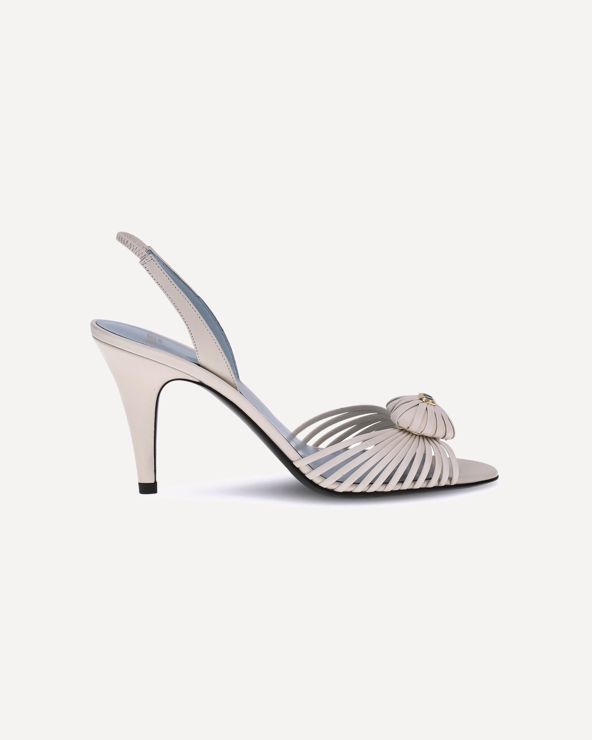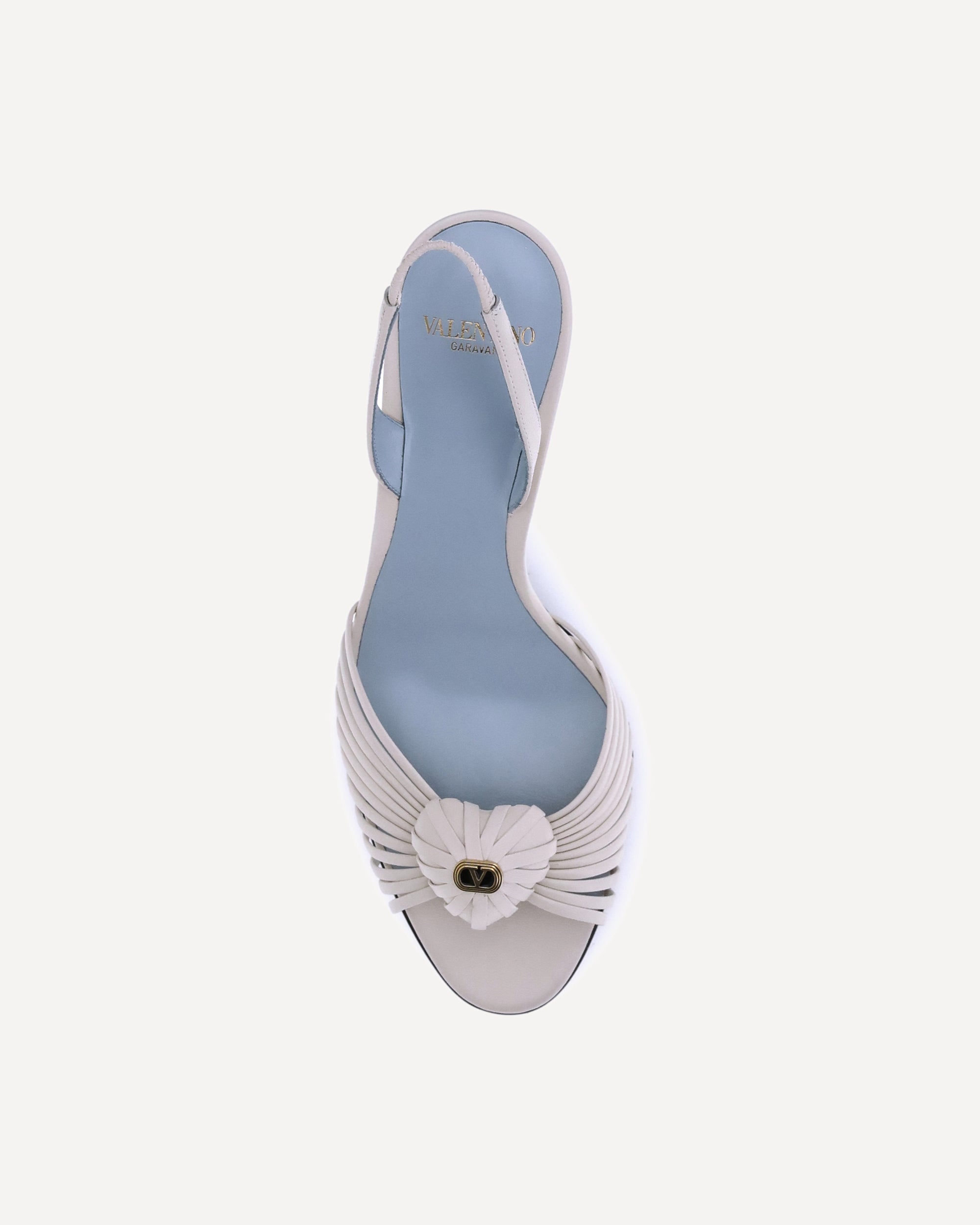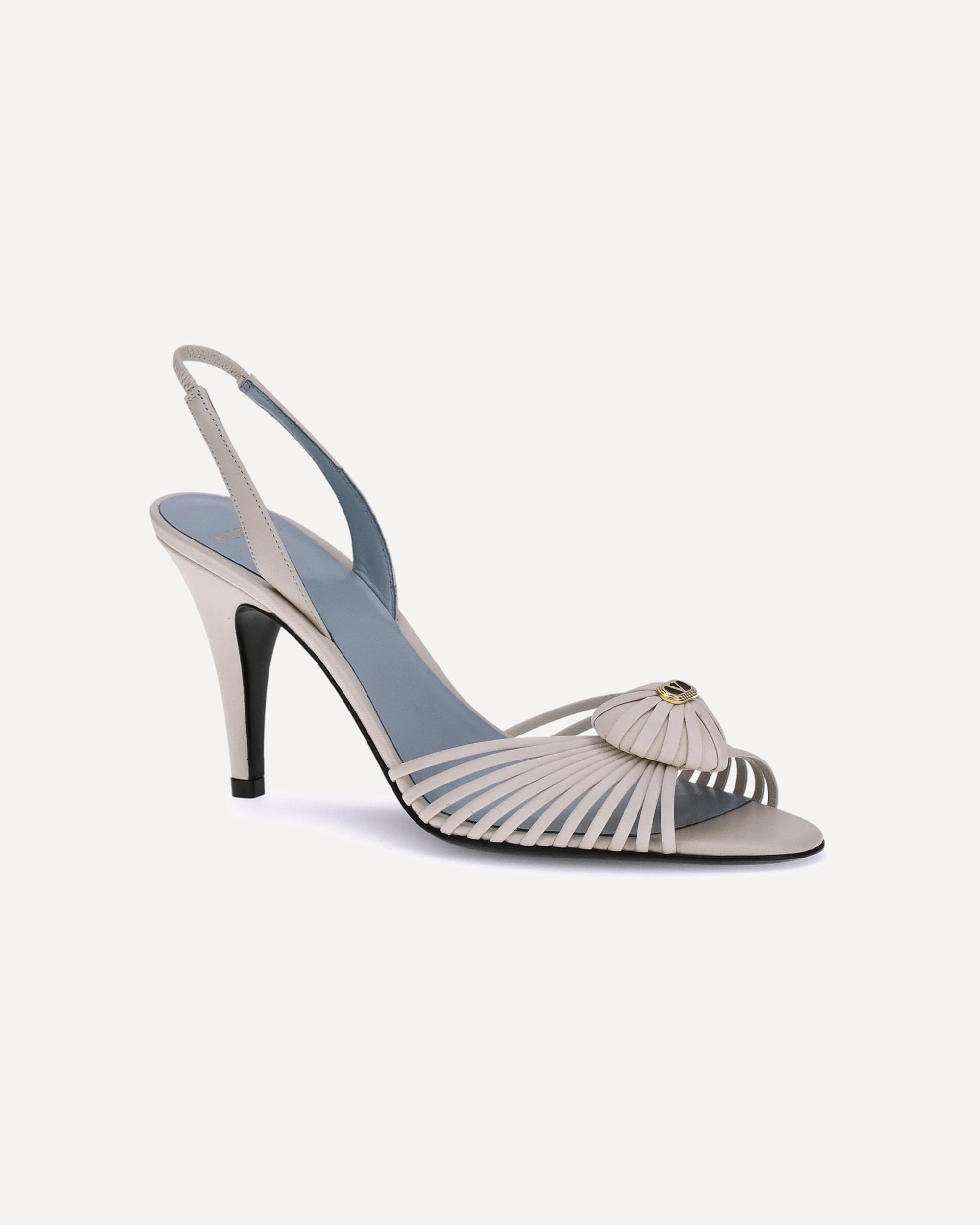 Valentino Garavani's Royal Sandals are made of leather. The distinctive detail is the three-dimensional leather heart with the Signature VLogo on the front, which gives a romantic and iconic touch. The slingback style provides comfort and stability, while the logoed insole completes the design with elegance.