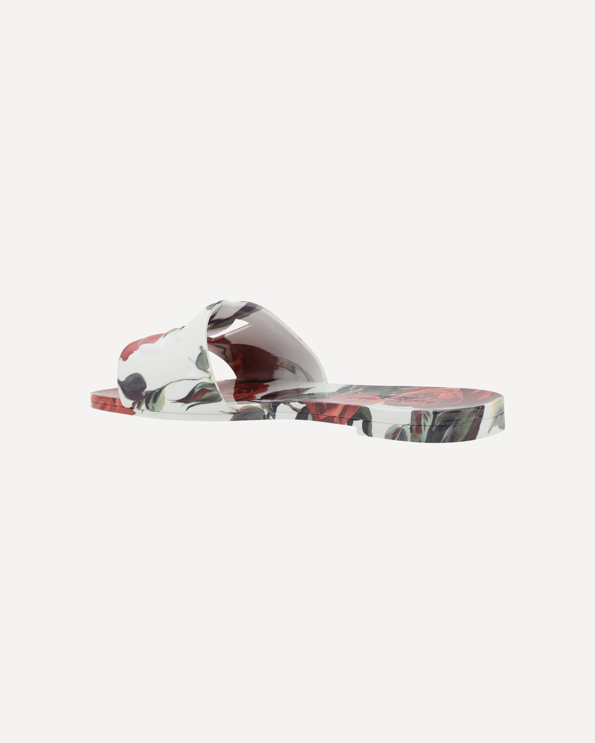 Dolce&Gabbana's Sandals feature a round toe and a front strap embellished with the brand's iconic embossed logo, adding a distinctive detail. The all-over repeated floral pattern lends a lively and feminine touch, while the flat sole ensures comfort for everyday wear. The branded insole completes the design.