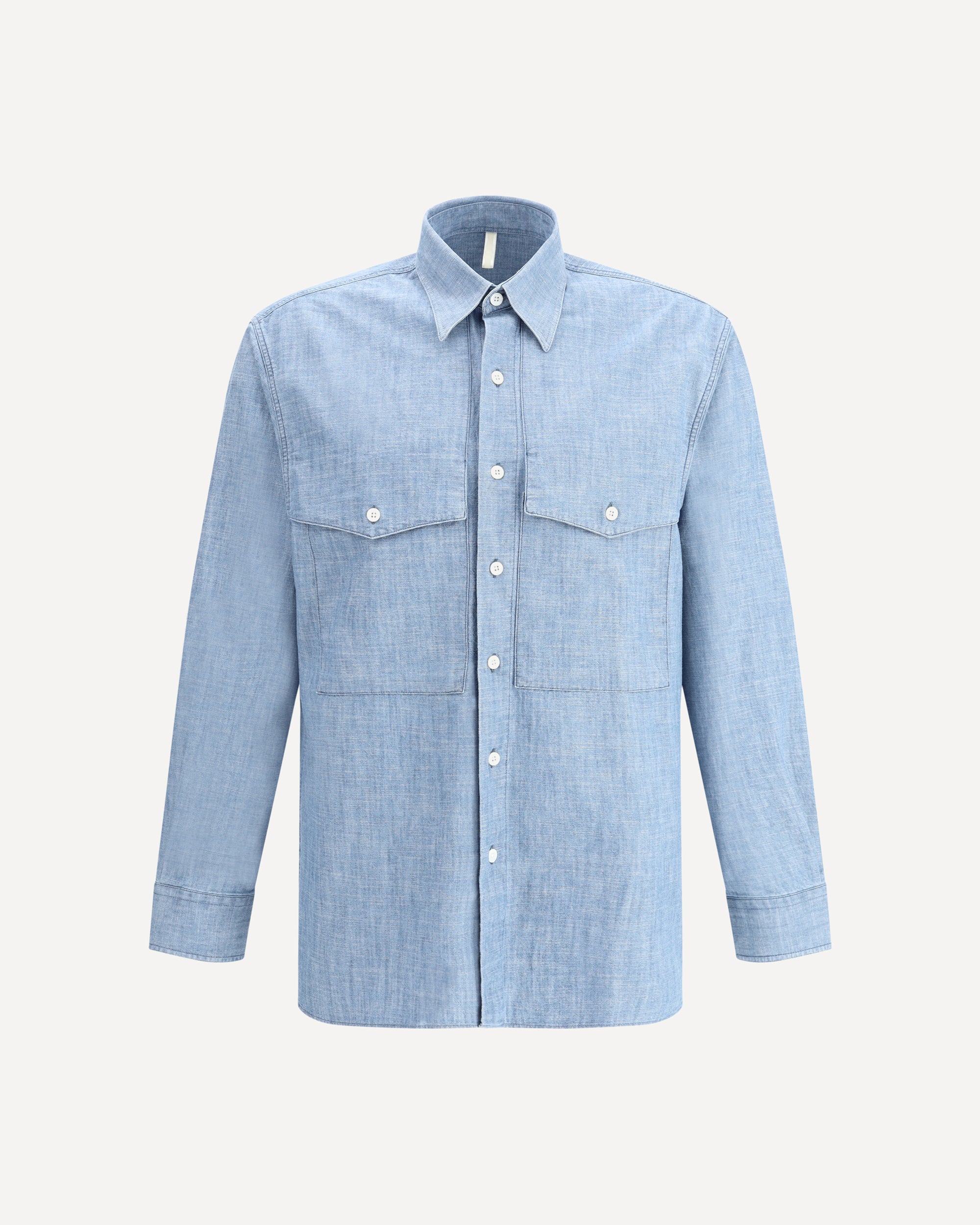Cotton Shirt by Sunflower, classic collar, front button closure, two front patch pockets with flap and buttons, mélange pattern, regular fit.