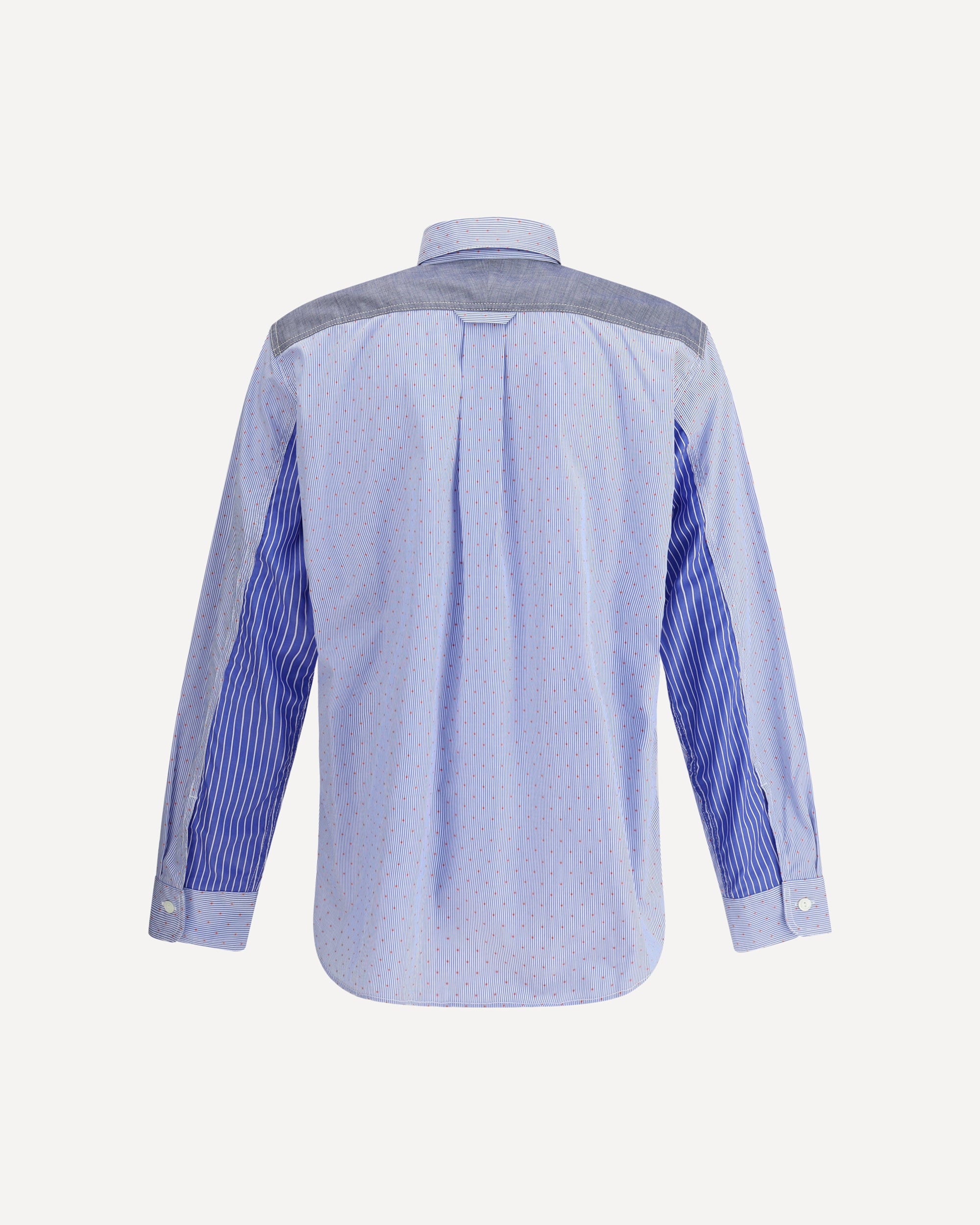 Junya Watanabe's cotton Shirt is a visually striking garment that combines tailoring and experimentation. The multicolored panel design creates a bold and contemporary graphic play, perfect for those who like to stand out. Featuring a classic collar, front button closure and adjustable button cuffs, this shirt represents the balance between functionality and creativity. Ideal for enriching your wardrobe with a statement piece with unique character.