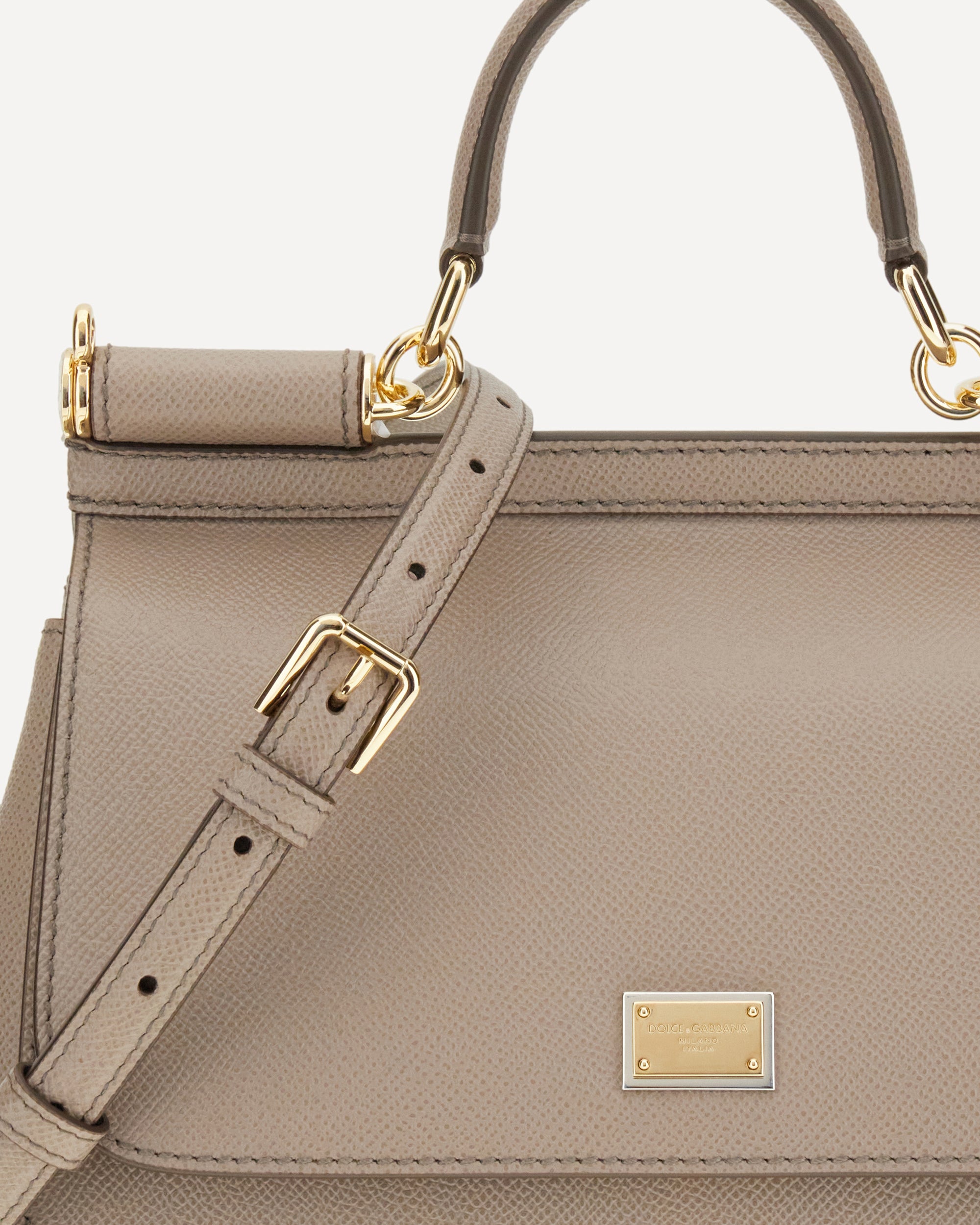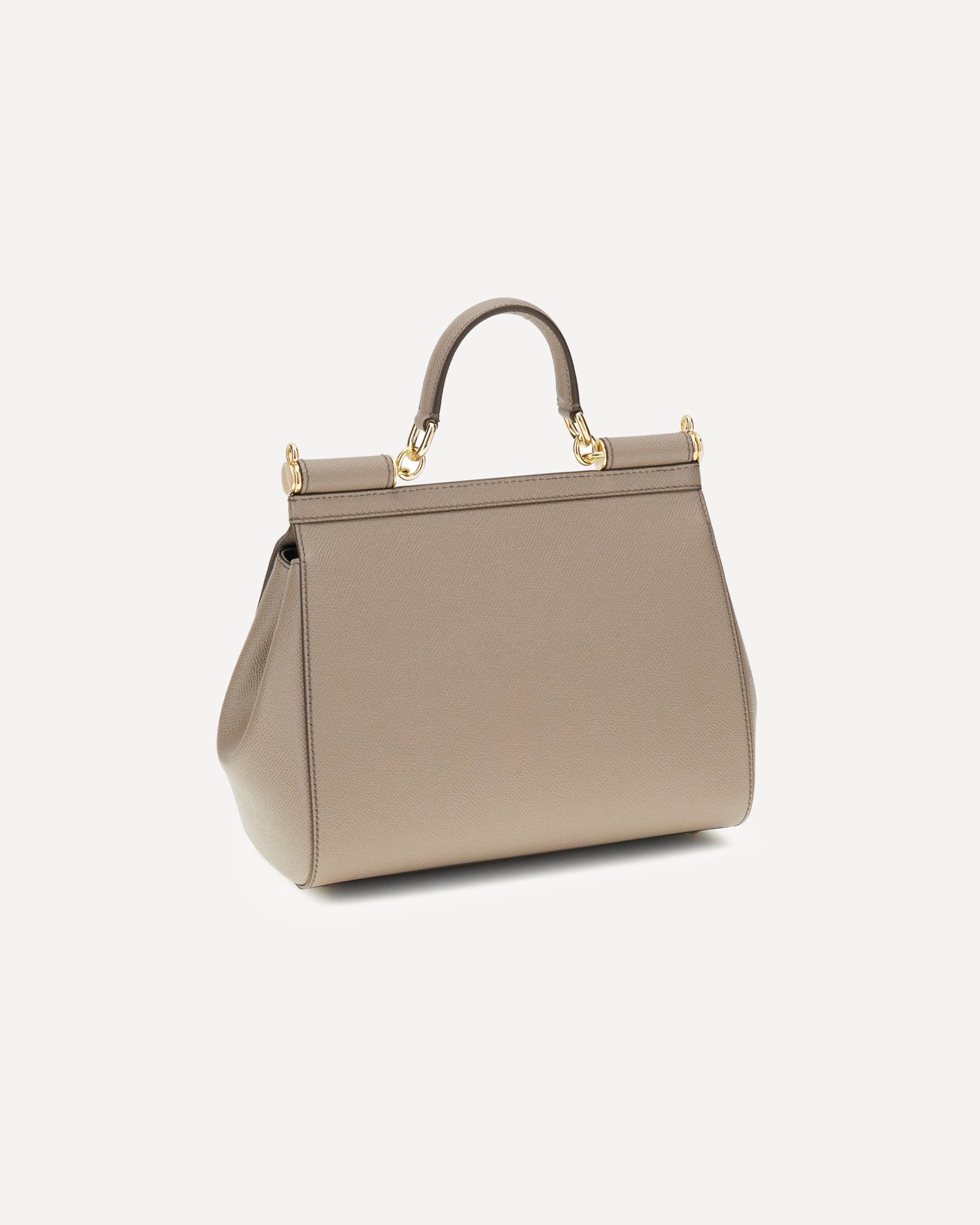 Dolce&Gabbana's My Sicily leather Handbag embodies the house's timeless elegance and signature sophistication. Featuring a rigid top handle, it offers sophisticated portability, while the flat, adjustable and removable shoulder strap adds practicality and versatility. The front flap closure with magnetic buttons provides security, while the applied logo hardware on the front adds a distinctive touch. The interior, with a single compartment, is designed to store essentials in style and order.