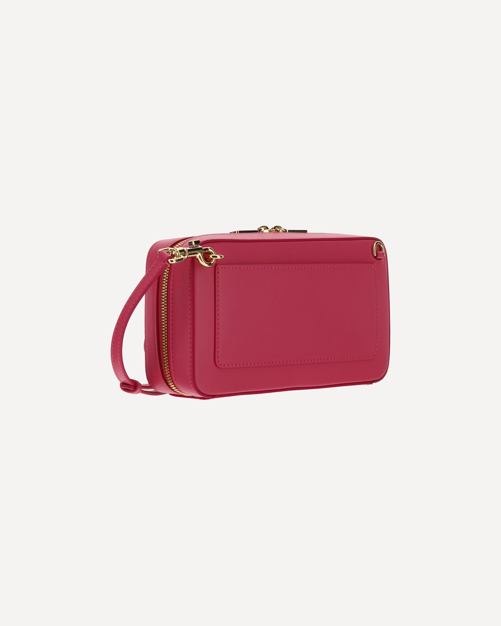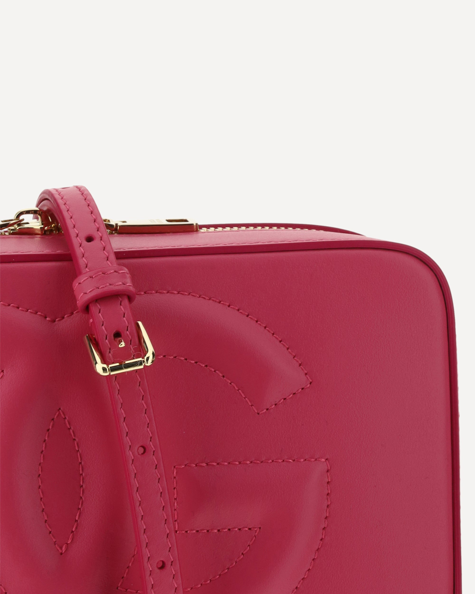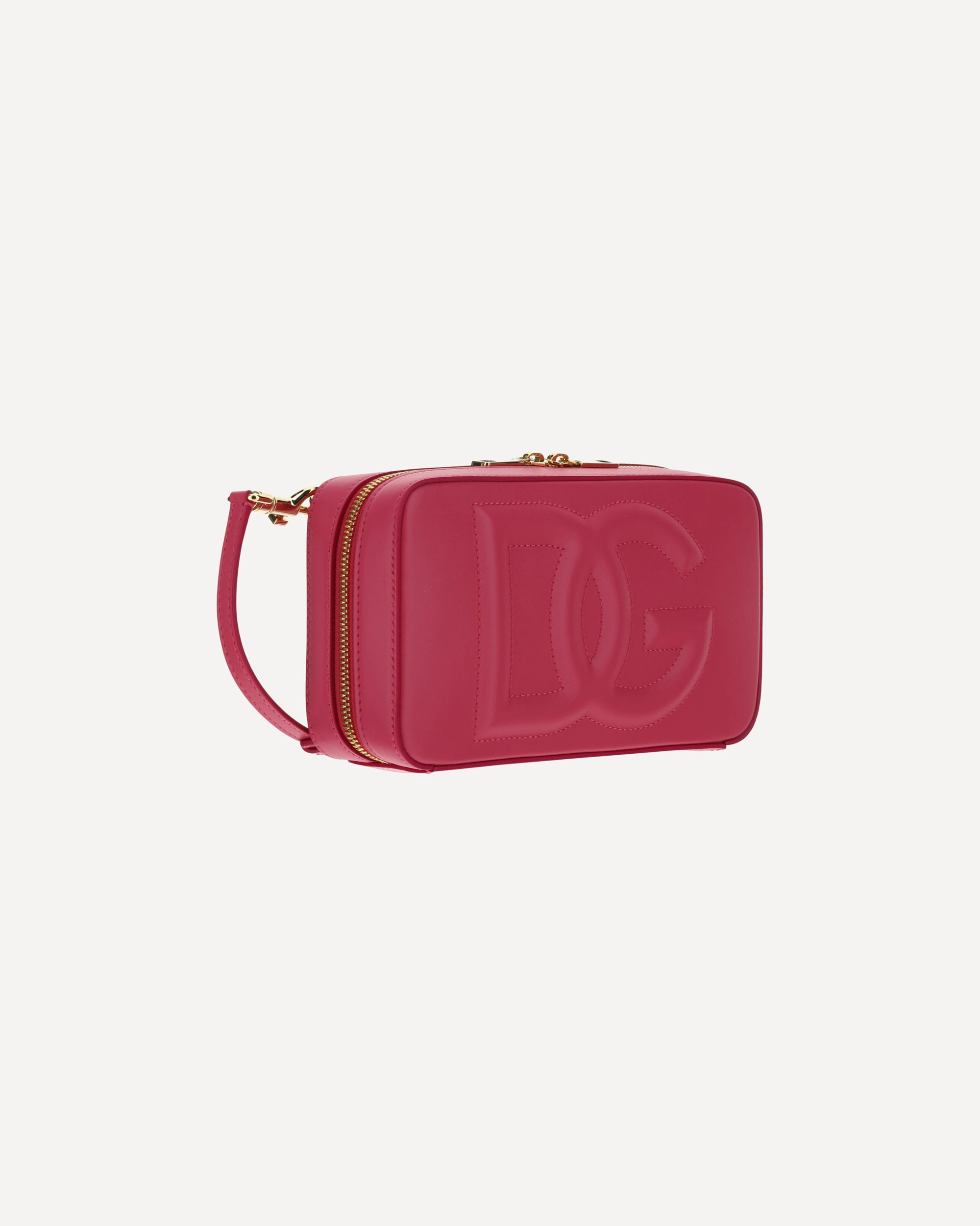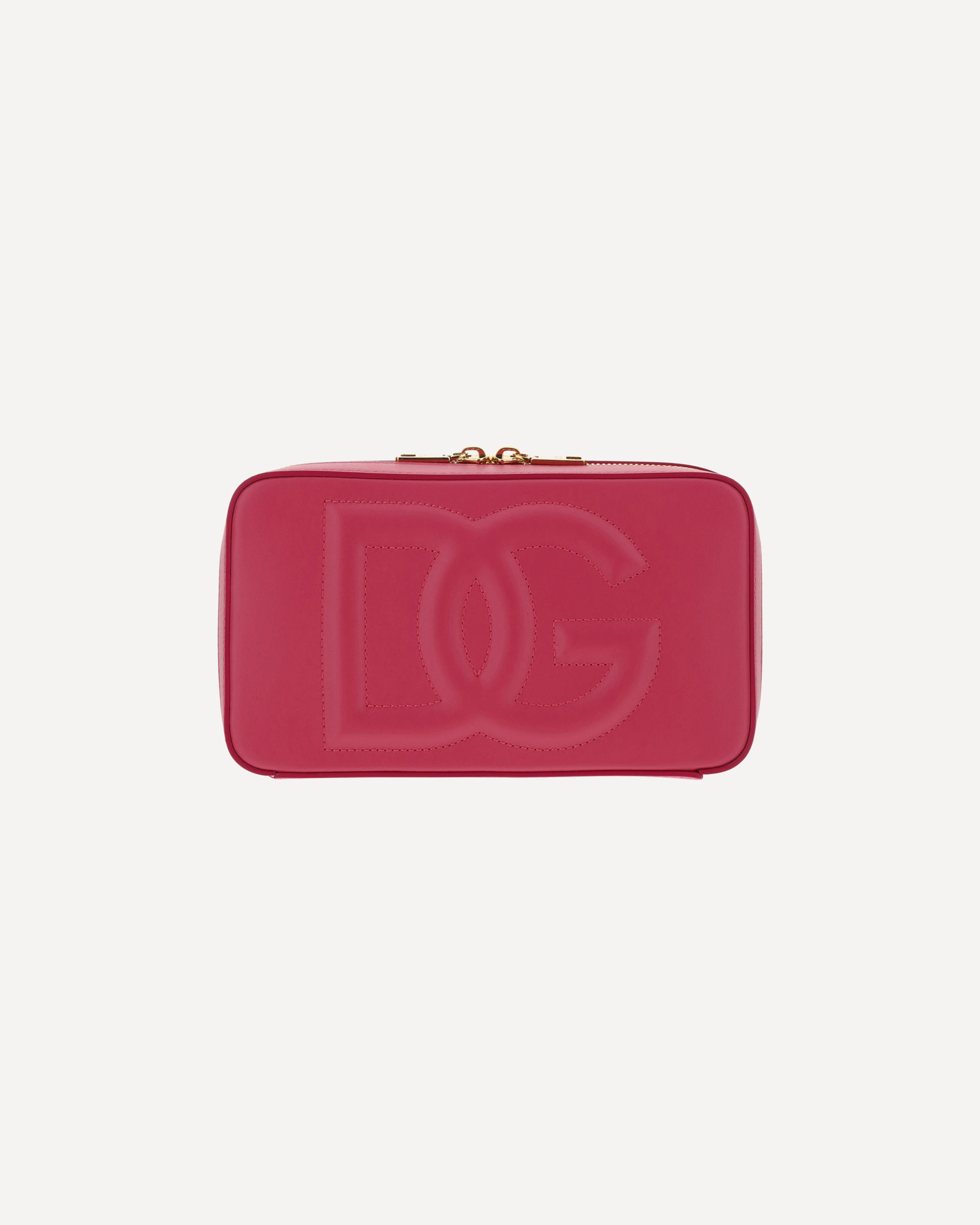 Calfskin Shoulder Bag by Dolce&Gabbana, removable and adjustable leather shoulder strap, swivel top closure, gold-plated hardware, iconic brand monogram embossed on front, welt pocket on back, interior welt pocket, rigid design.