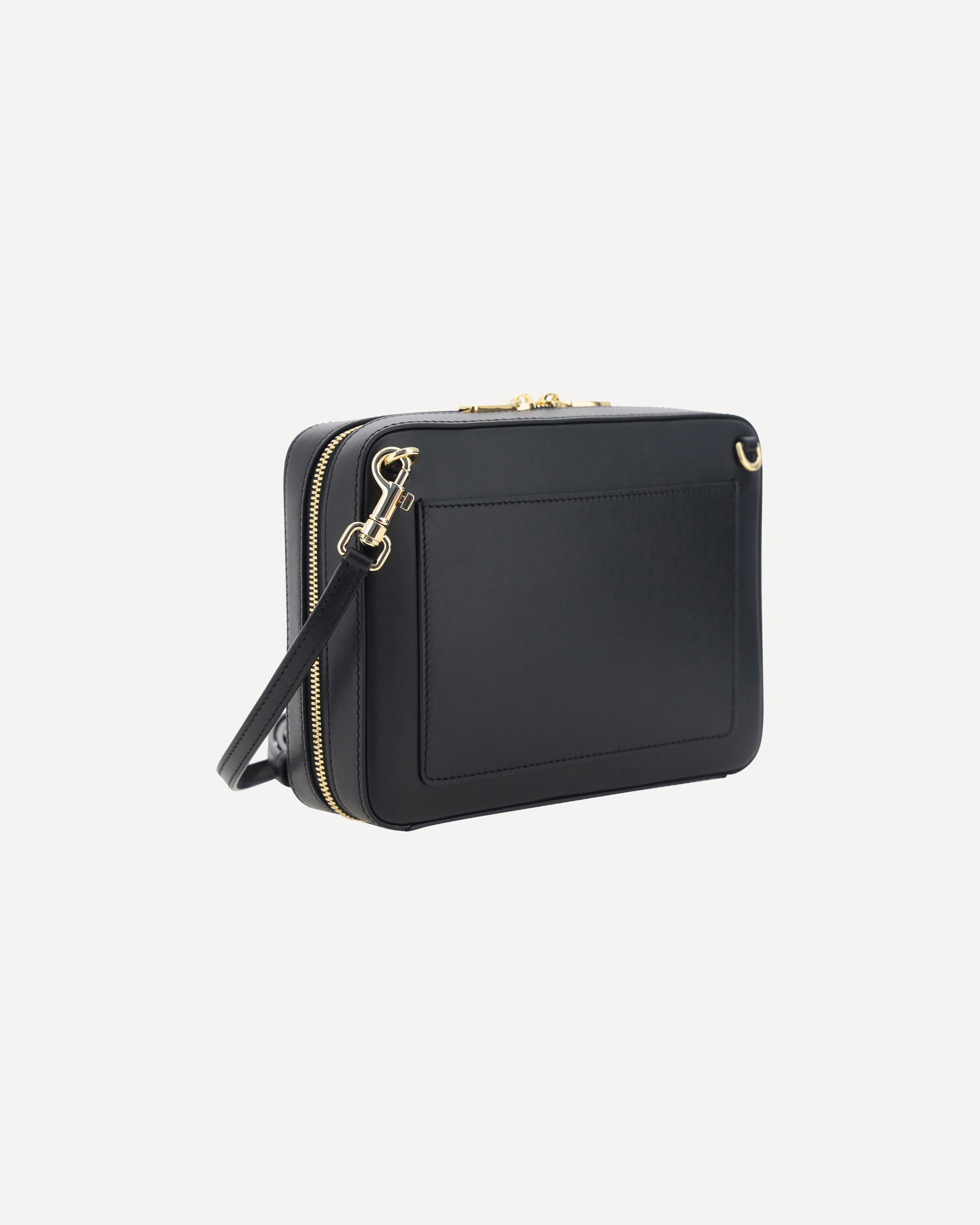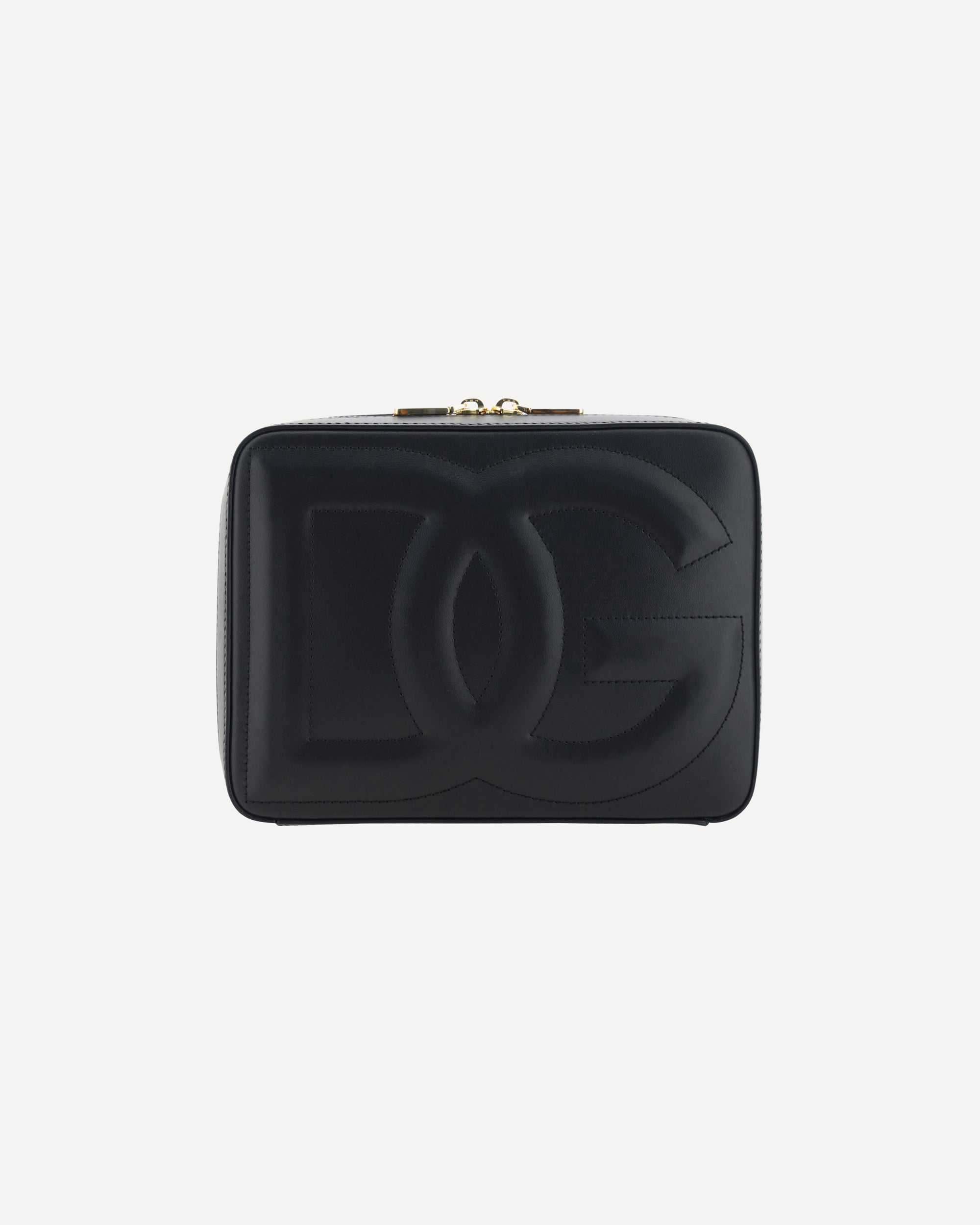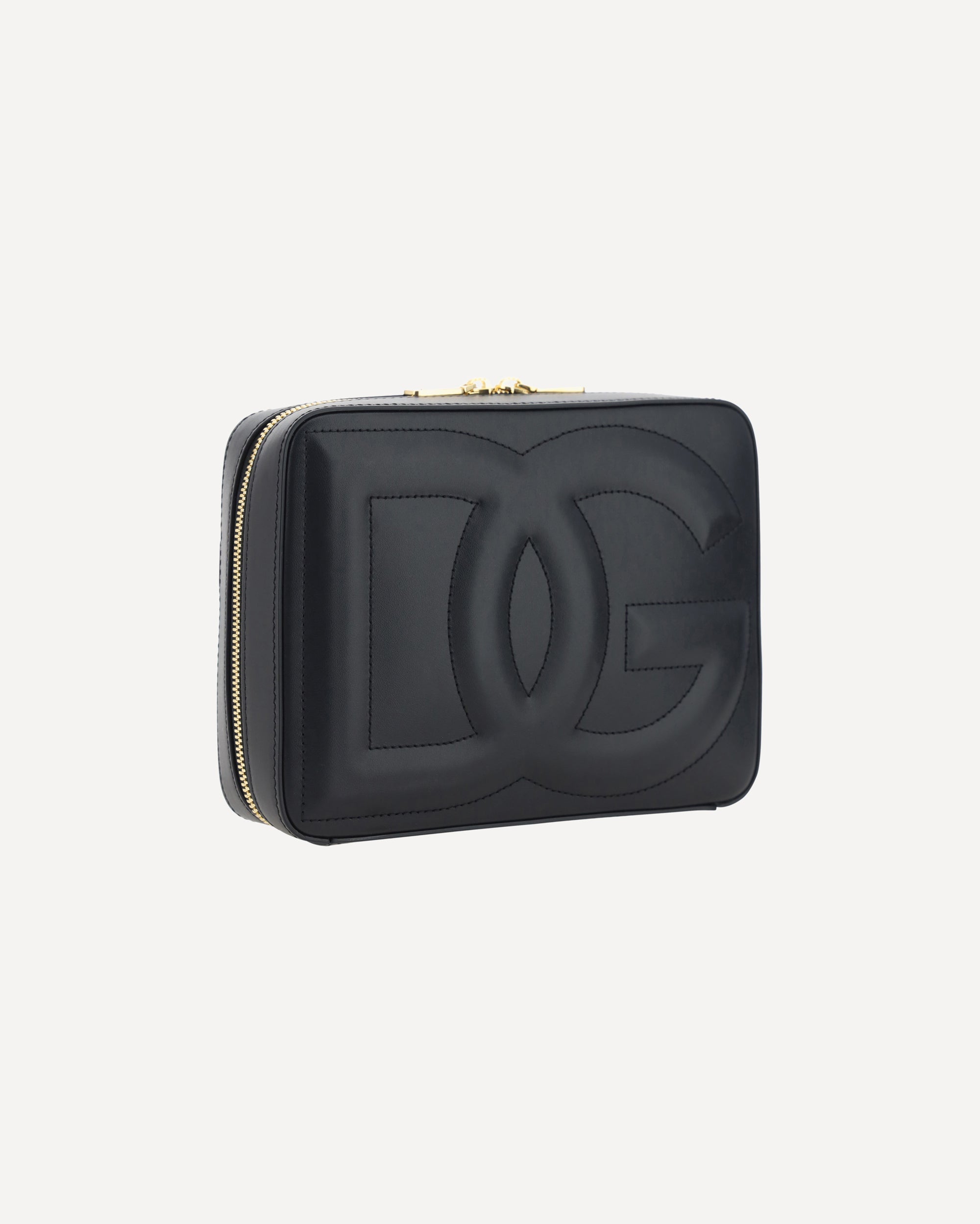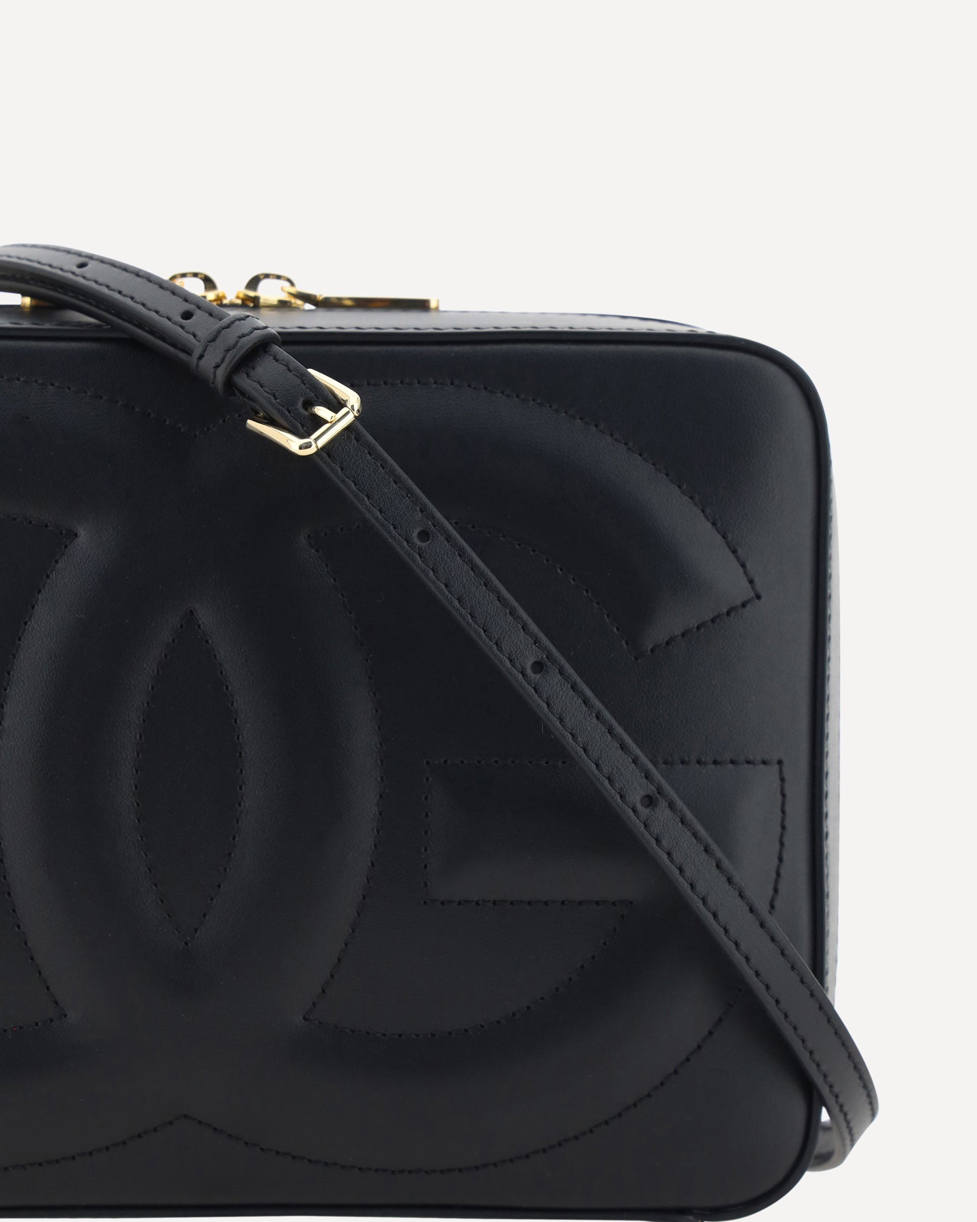 Leather Shoulder Bag by Dolce&Gabbana , adjustable and removable flat shoulder strap, two-way zipper closure, iconic embossed monogram at front, single compartment.