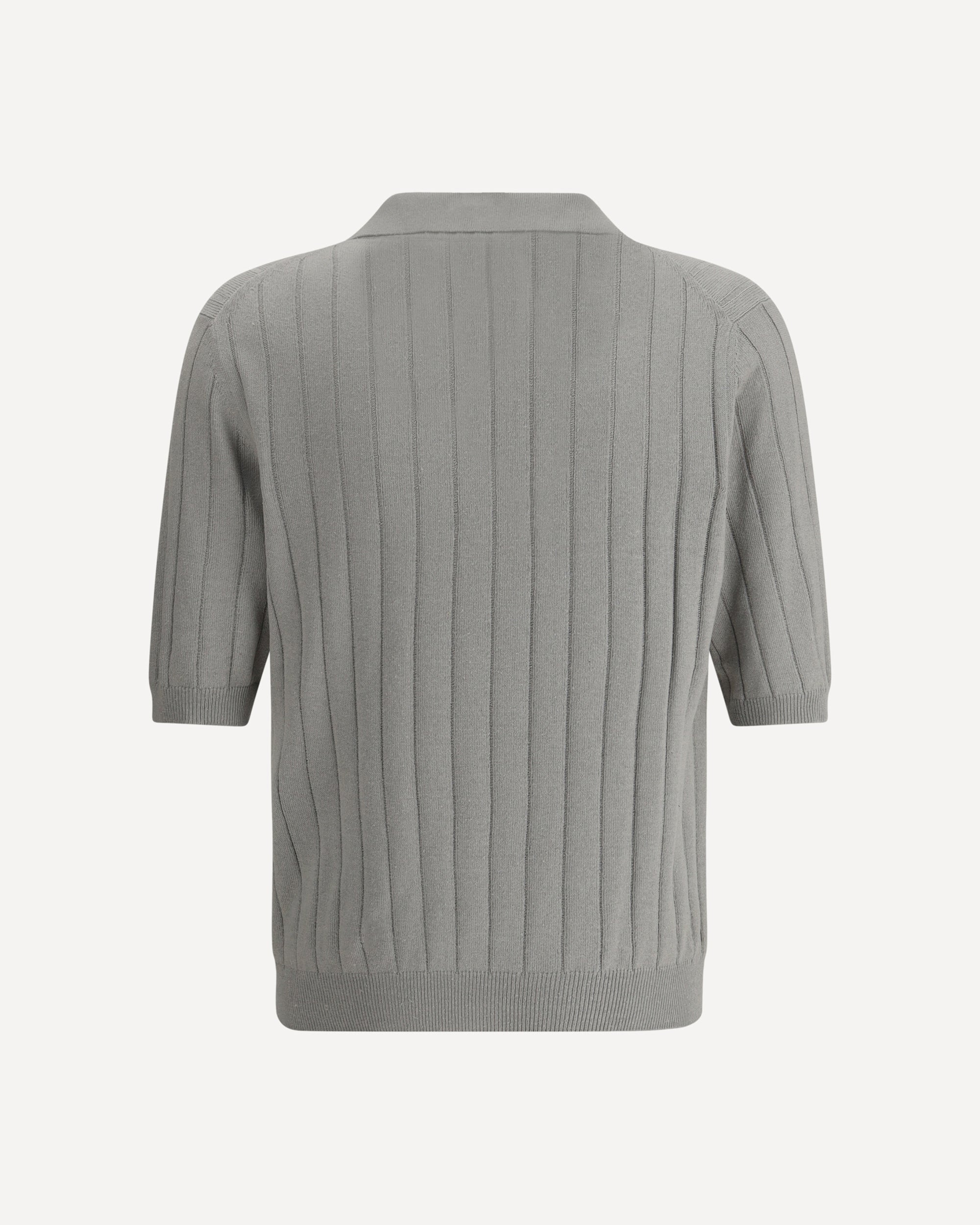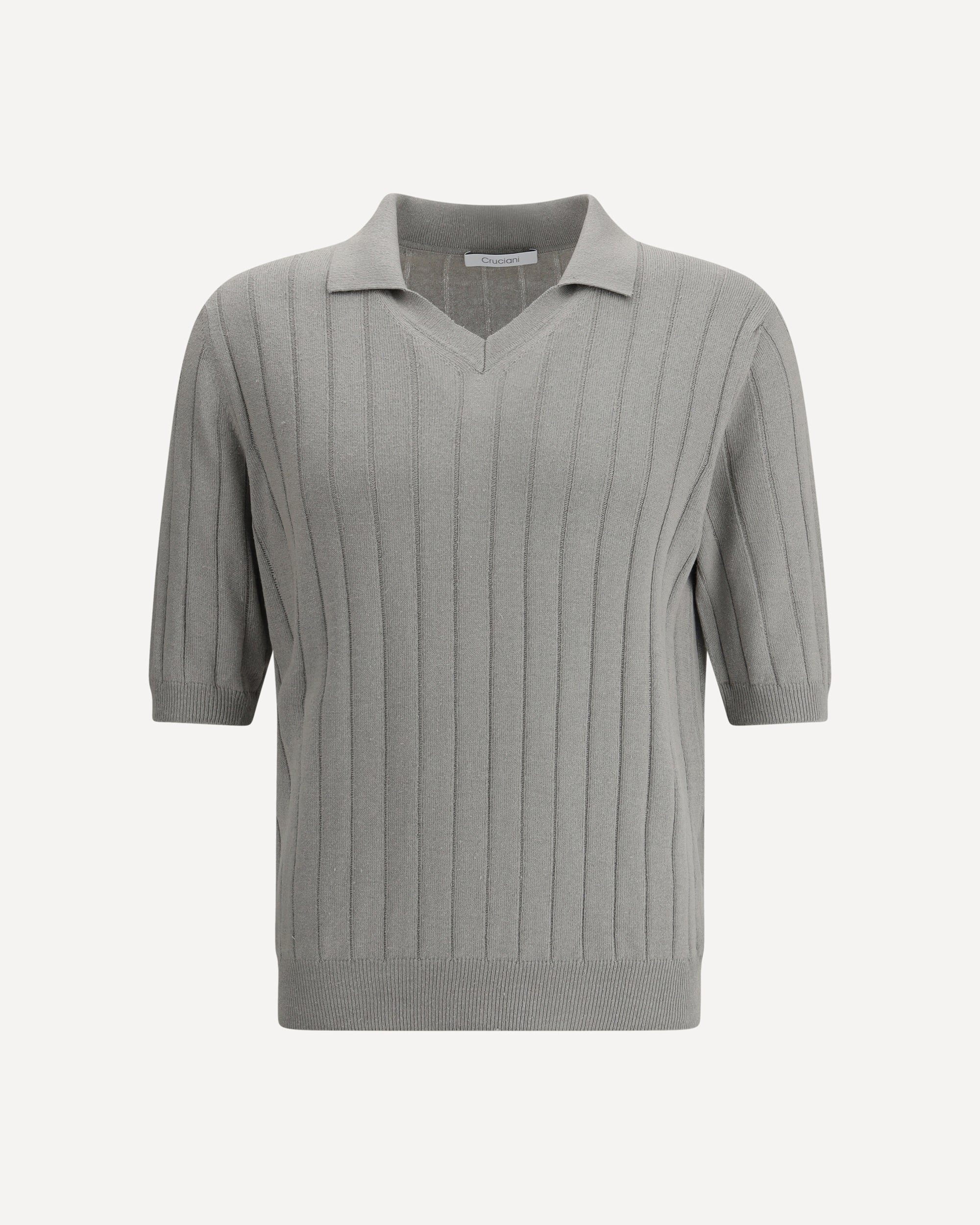 Cruciani's ribbed silk V-neck Polo Shirt by Cruciani is a sophisticated garment, ideal for those seeking elegance and comfort in an essential design. Made of pure silk, it features a refined ribbed design, classic collar and V-neck on the front that gives a contemporary touch. The ribbed hem ensures a defined fit and a look with attention to every detail.