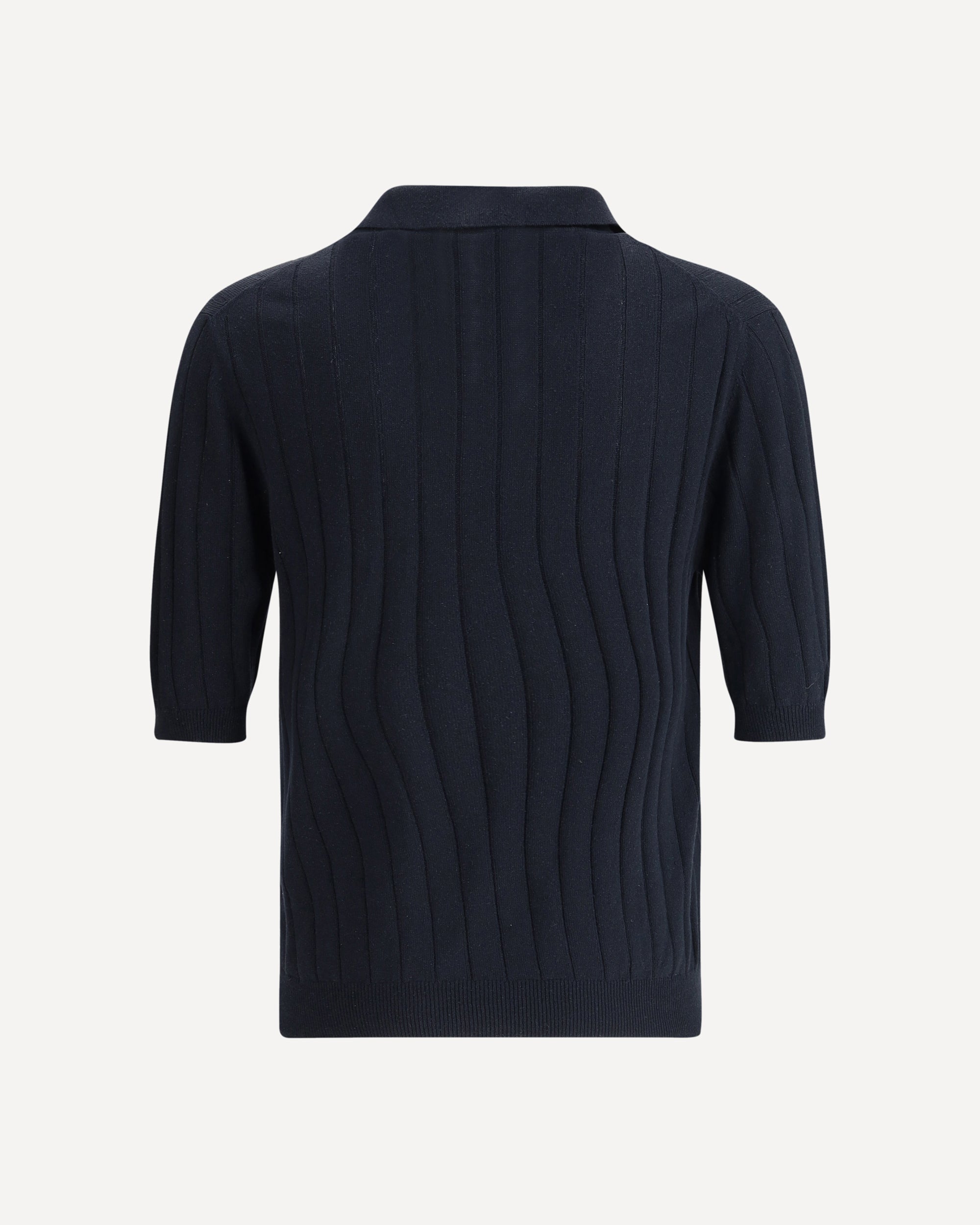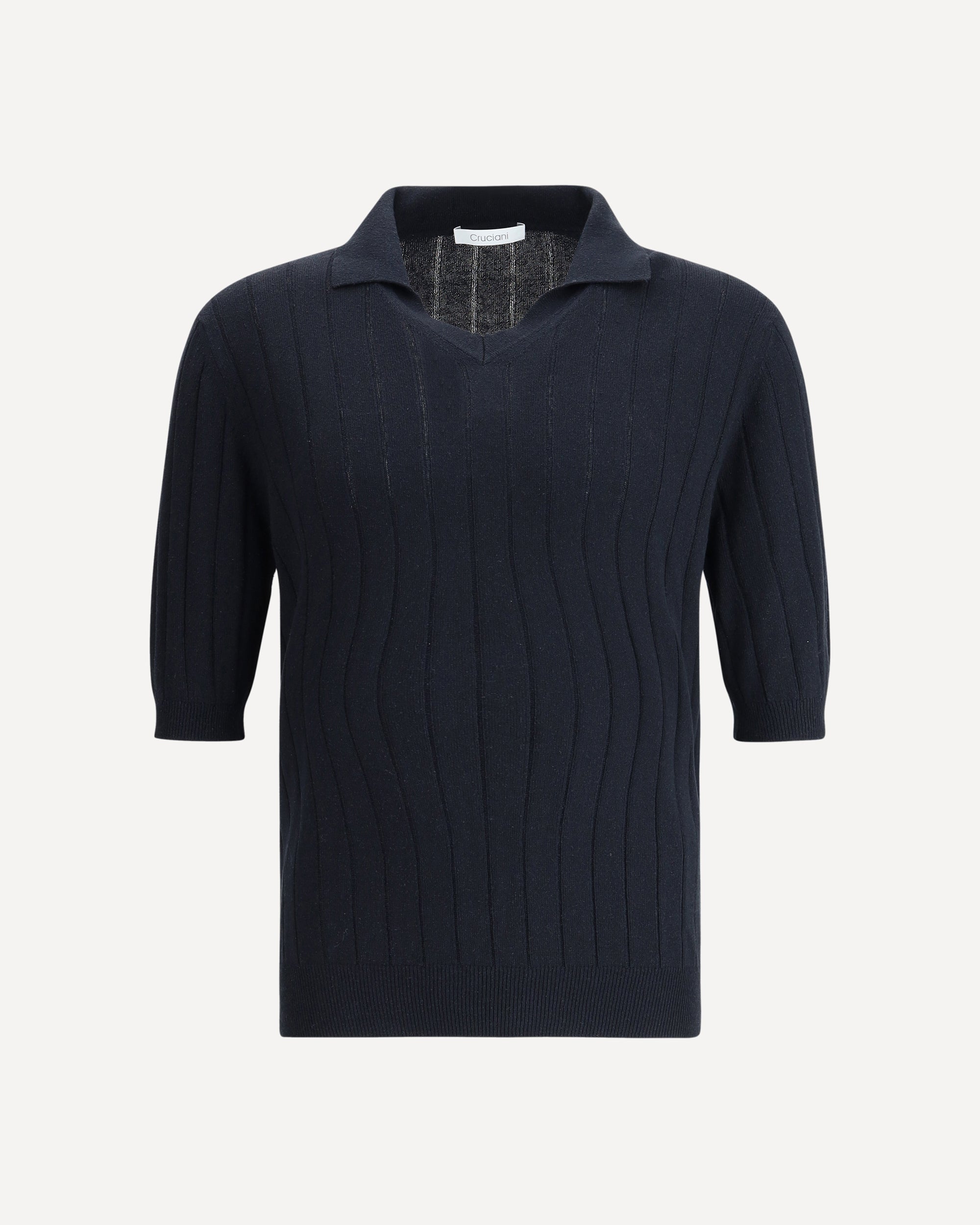 Cruciani's ribbed silk V-neck Polo Shirt by Cruciani is a sophisticated garment, ideal for those seeking elegance and comfort in an essential design. Made of pure silk, it features a refined ribbed design, classic collar and V-neck on the front that gives a contemporary touch. The ribbed hem ensures a defined fit and a look with attention to every detail.