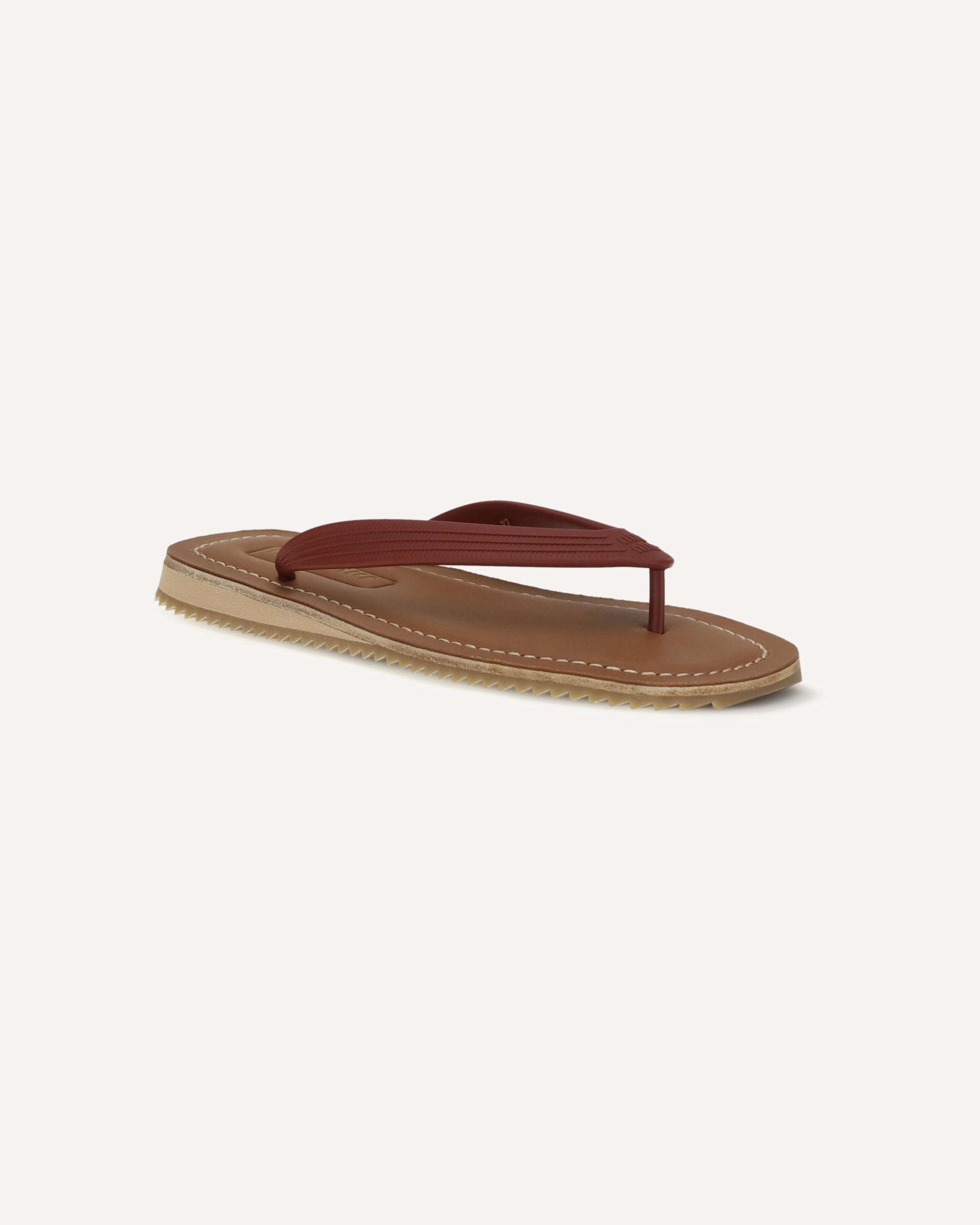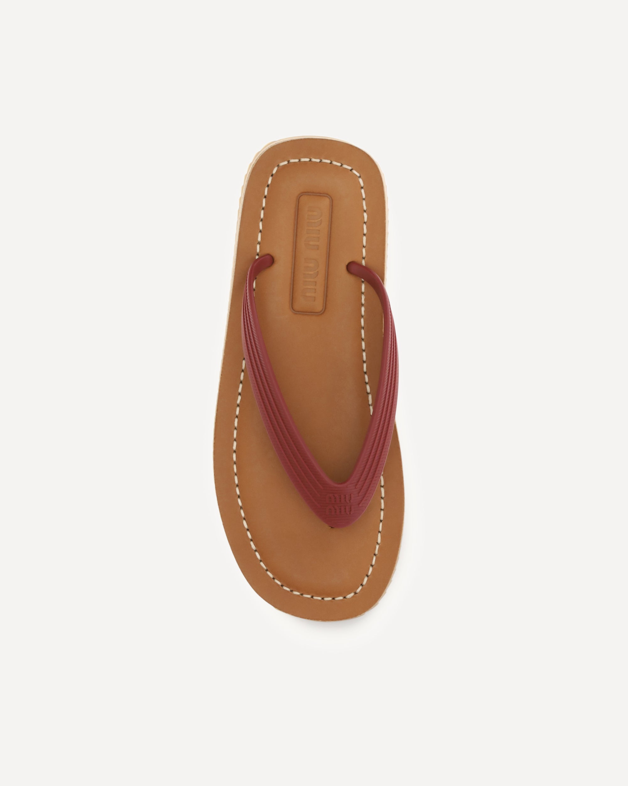 The flip-flop Sandals by Miu Miu combine style and practicality in a contemporary design. The leather sole with logo and visible stitching add a refined touch, while the rubber flip-flop with logo ensures comfort and durability. Perfect for completing summer looks with a distinctive and trendy detail.