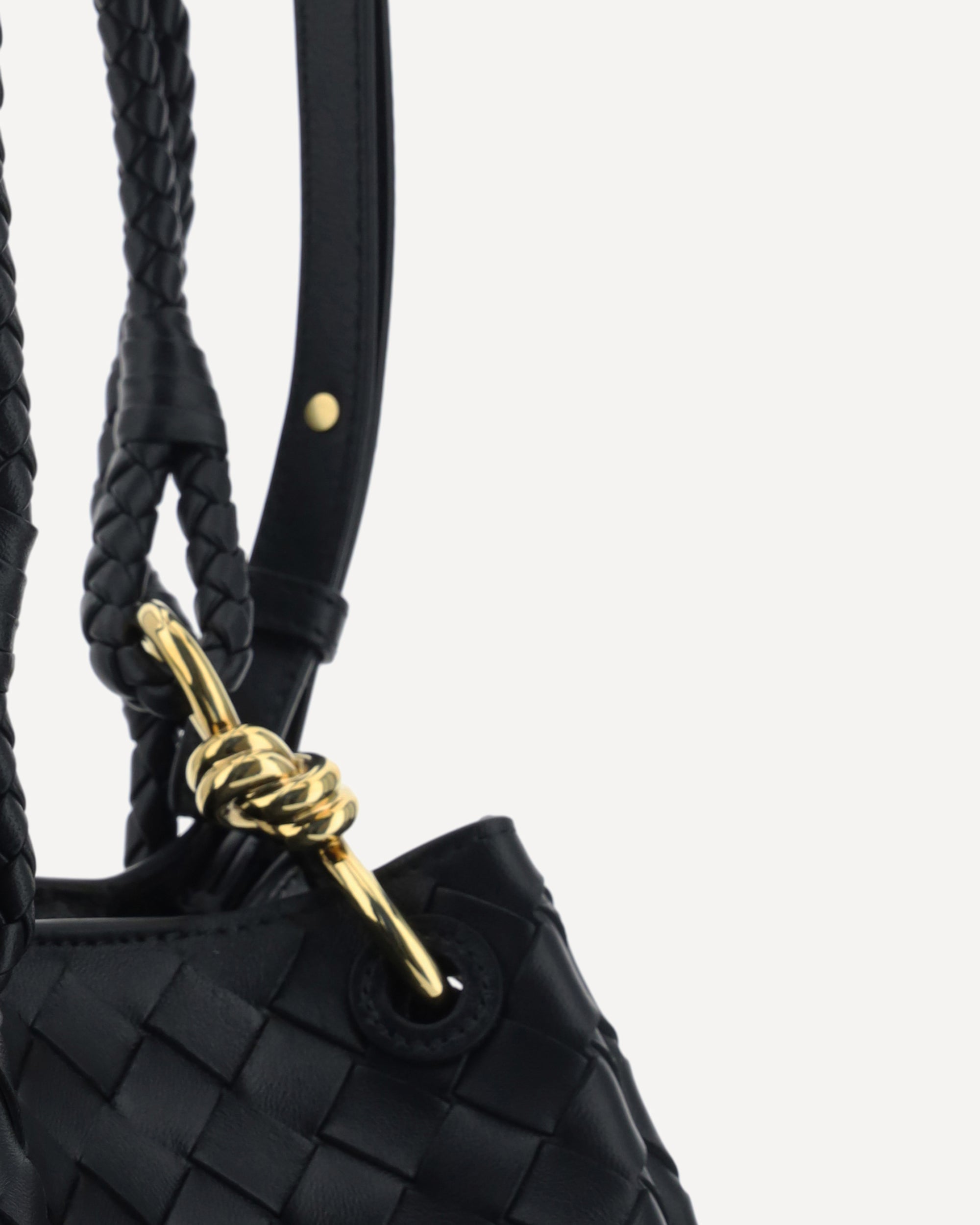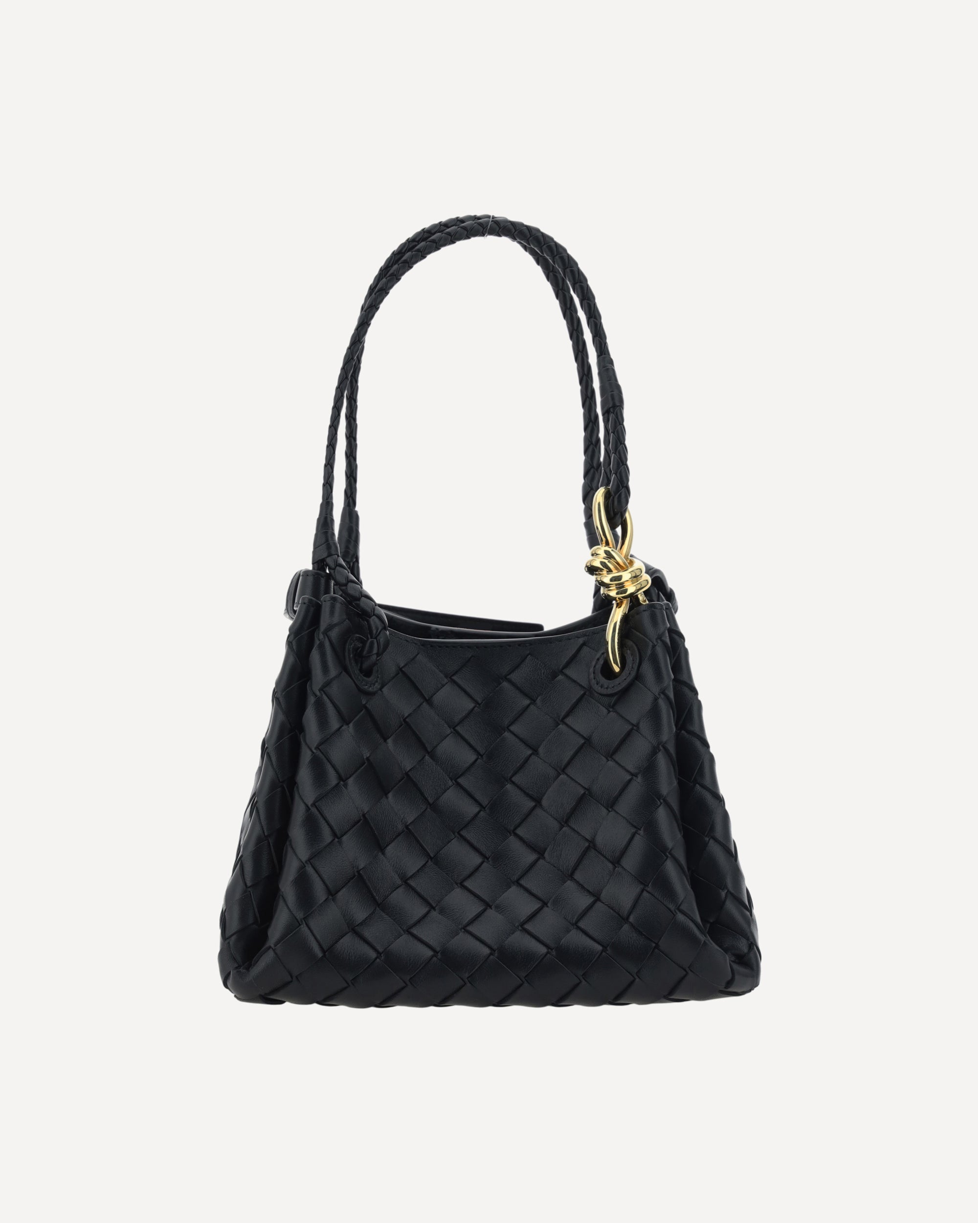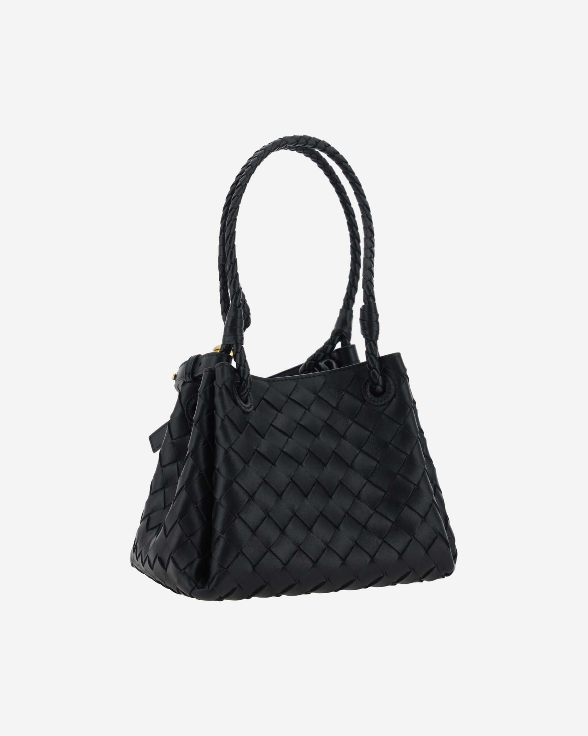 Lambskin Parachute Shoulder Bag by Bottega Veneta, one main compartment, removable interior zippered pocket, double braided handles, removable and adjustable flat shoulder strap, the brand's iconic all-over braided pattern applied, hardware with emblematic contrasting Knot detail in antiqued brass.