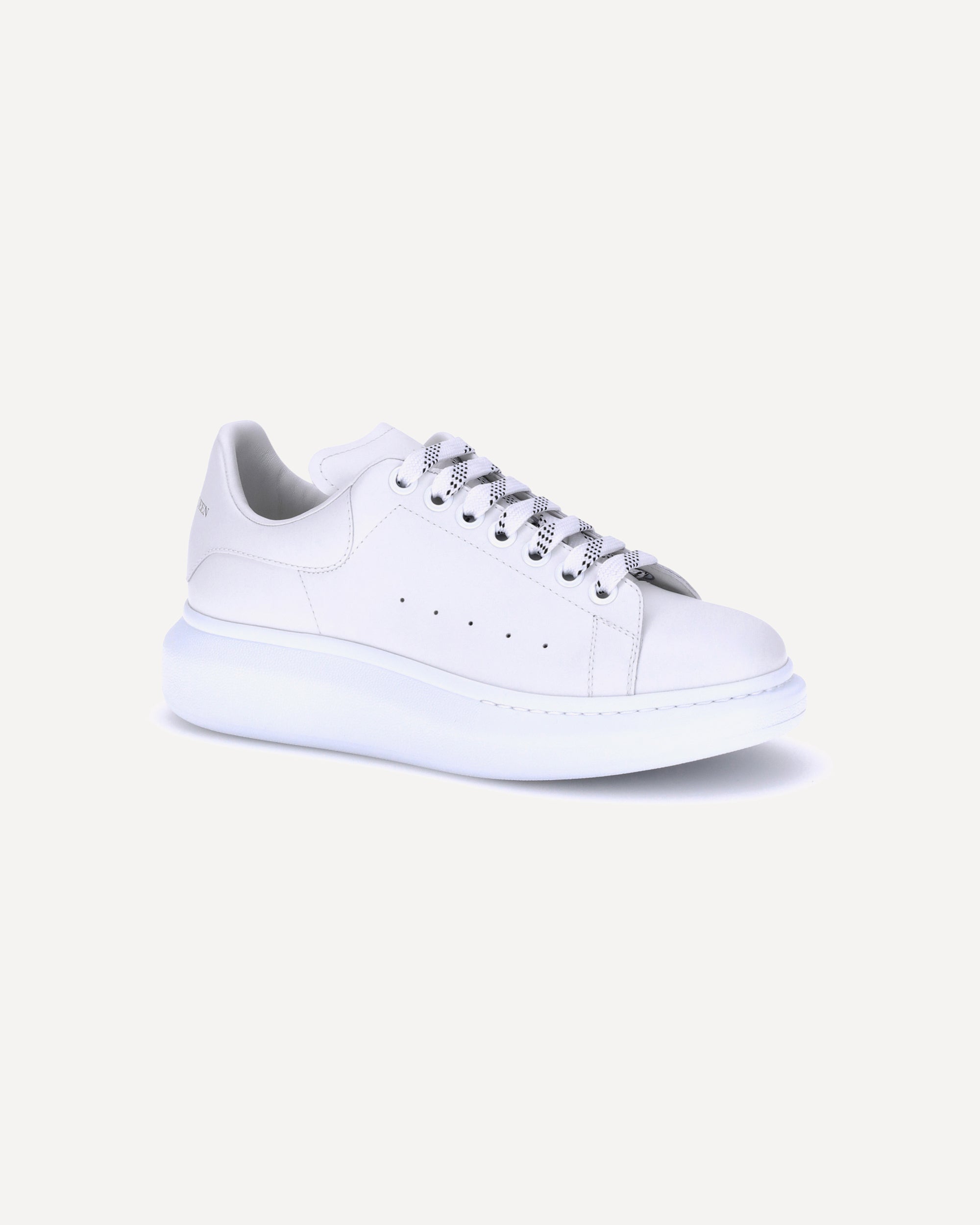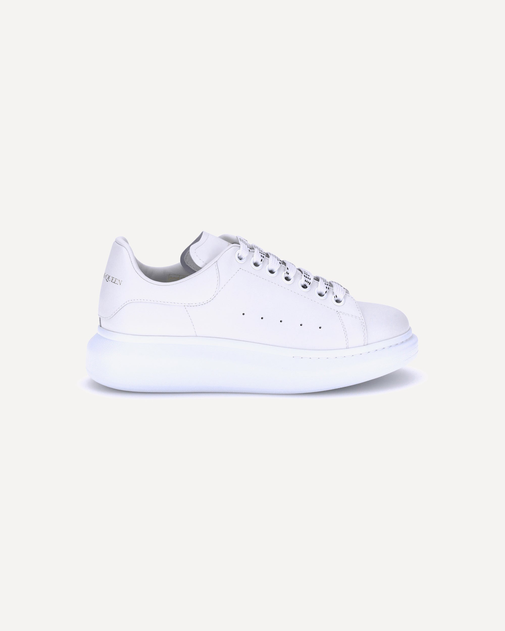 Alexander McQueen's leather Sneakers are a distinctive piece that combines elegance and boldness in a contemporary design. They feature a front lace-up closure for a comfortable and adjustable fit, while the round toe ensures a classic and versatile look. The press-studded logoed front tab and contrasting logoed heel label add iconic details that recall the brand's authenticity. The platform sole not only gives added height, but also adds a bold, modern touch to the design.