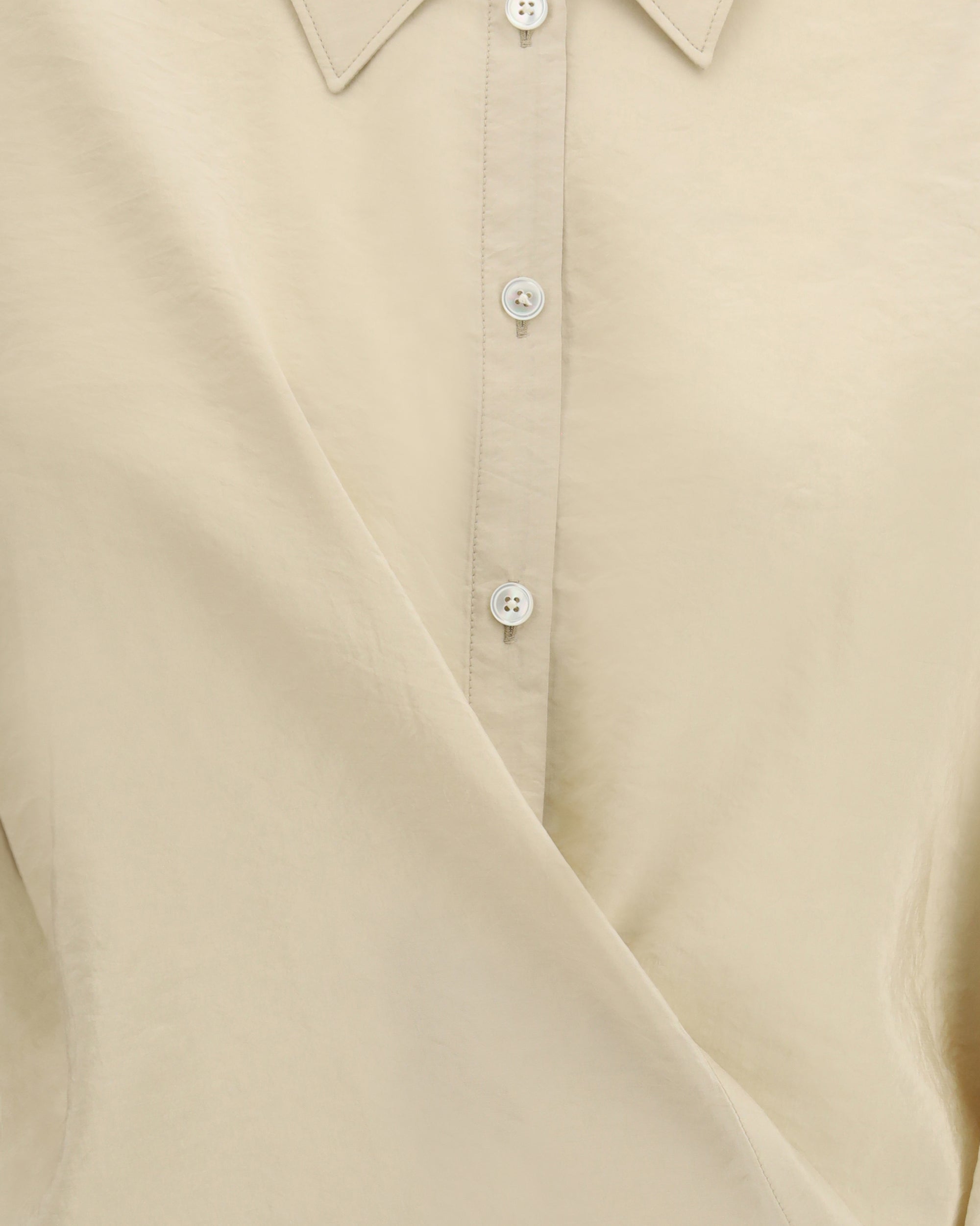The draped Shirt by Lemaire combines minimal elegance with tailored details. Featuring a classic collar, it features a front closure embellished with a delicate drape, giving movement and sophistication to the garment.