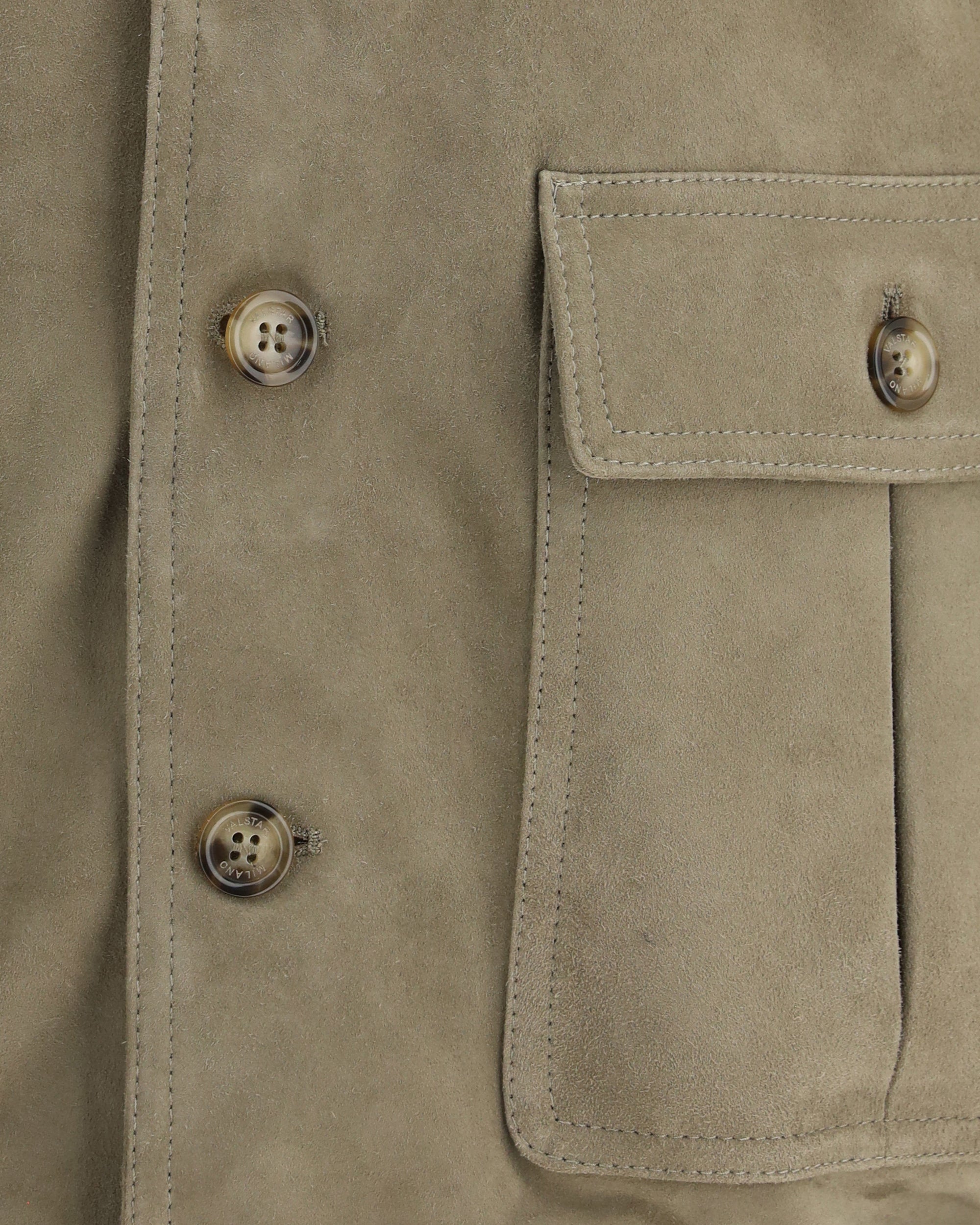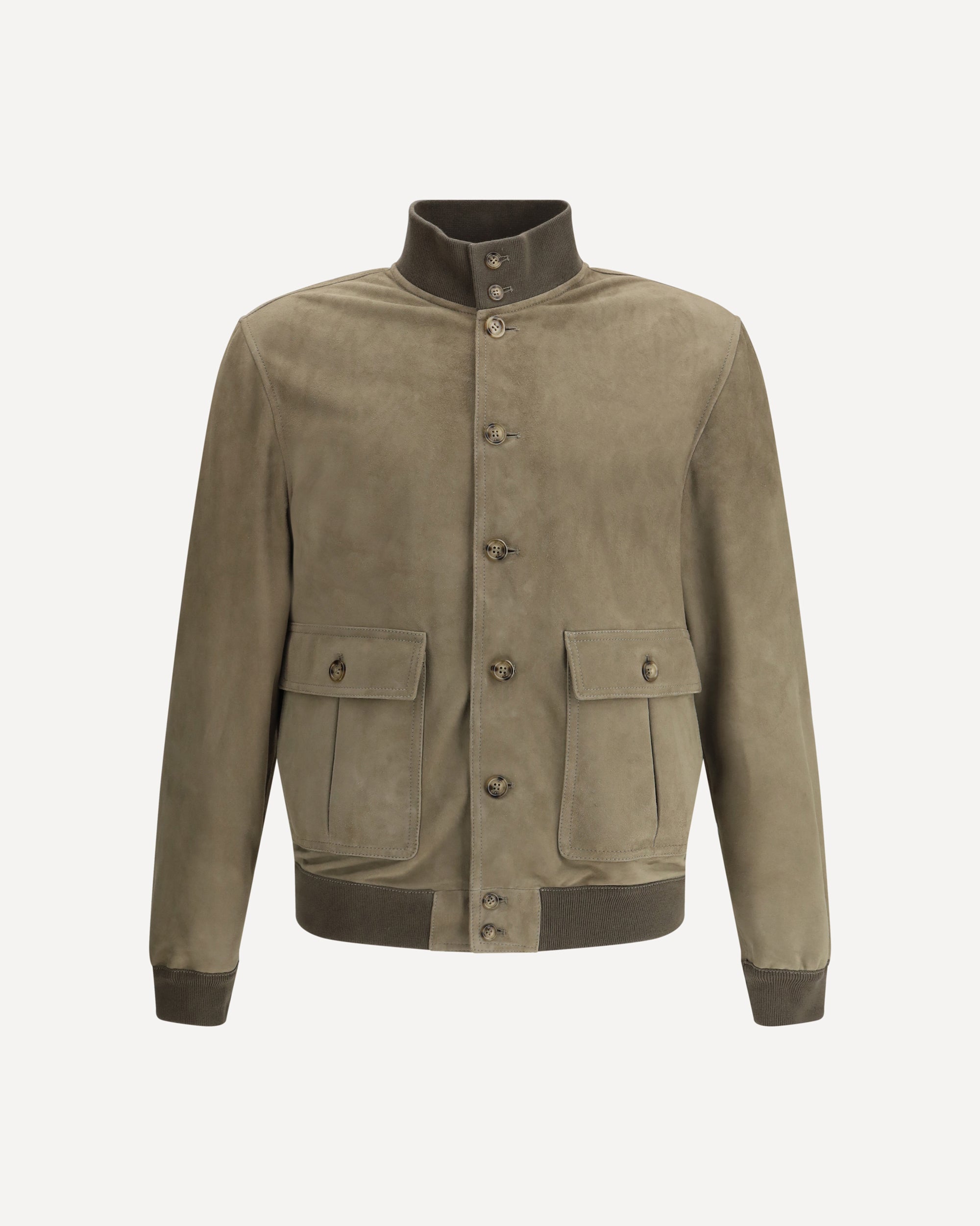 Valstar's suede leather Jacket, with its suede design, is a stylish and versatile garment that stands out for its sophisticated style. The ribbed collar, along with the ribbed cuffs and hem, adds a dynamic touch to the design, creating a well-defined and comfortable silhouette. The front button closure maintains a clean, refined look. The two patch flap pockets on the front not only offer practicality, but also complement the functional aesthetic of the garment.