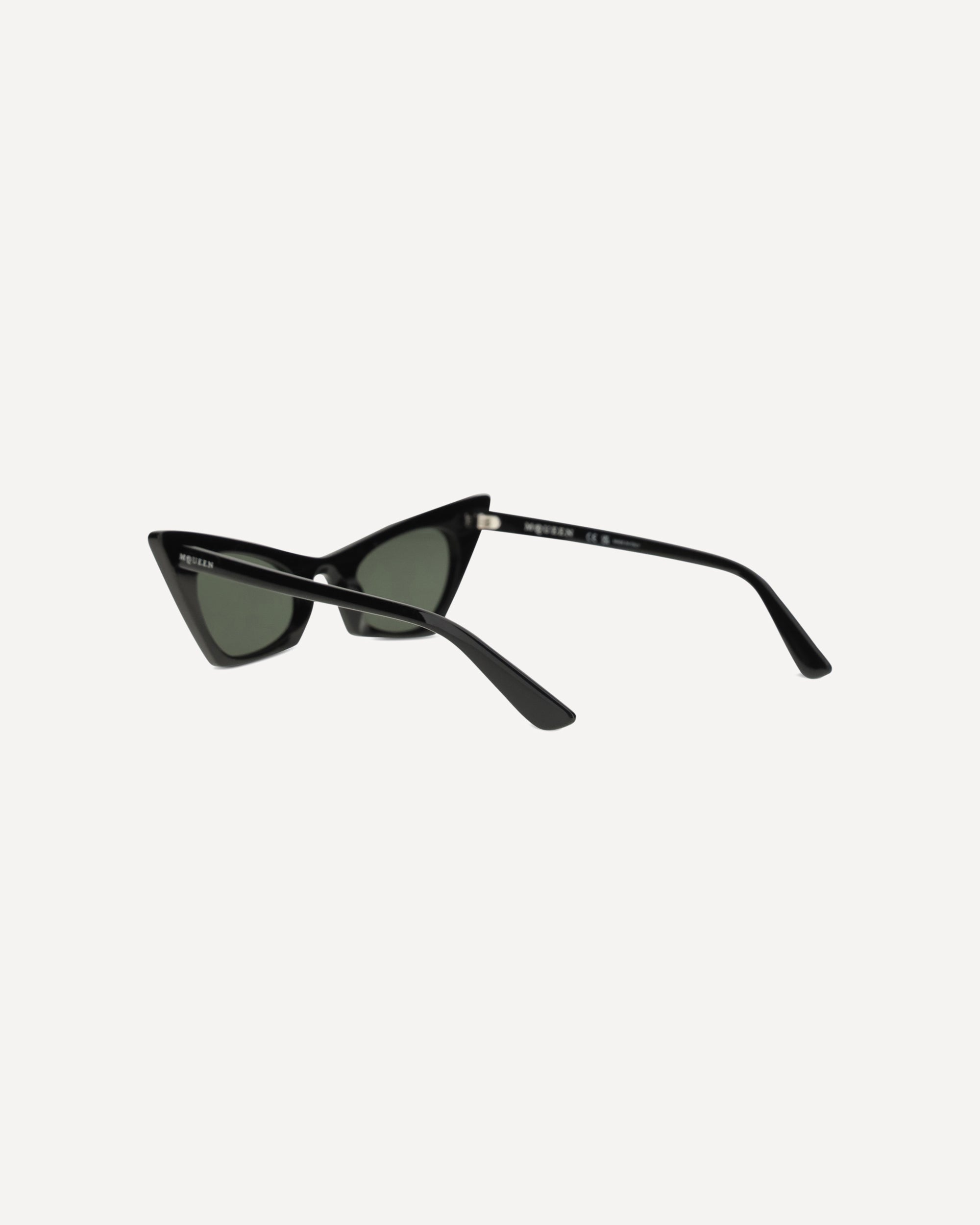 The cat-eye Sunglasses with pointed tips by Alexander McQueen combine boldness and contemporary elegance. Crafted from Havana acetate with brown lenses, they feature a sharp, iconic silhouette, embellished with the McQueen logo laser-engraved on the temples for a distinctive and recognizable detail.
