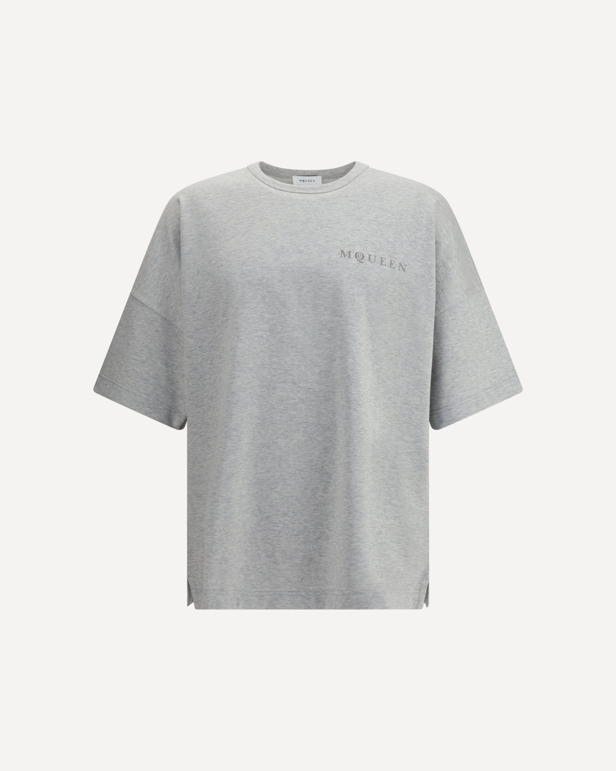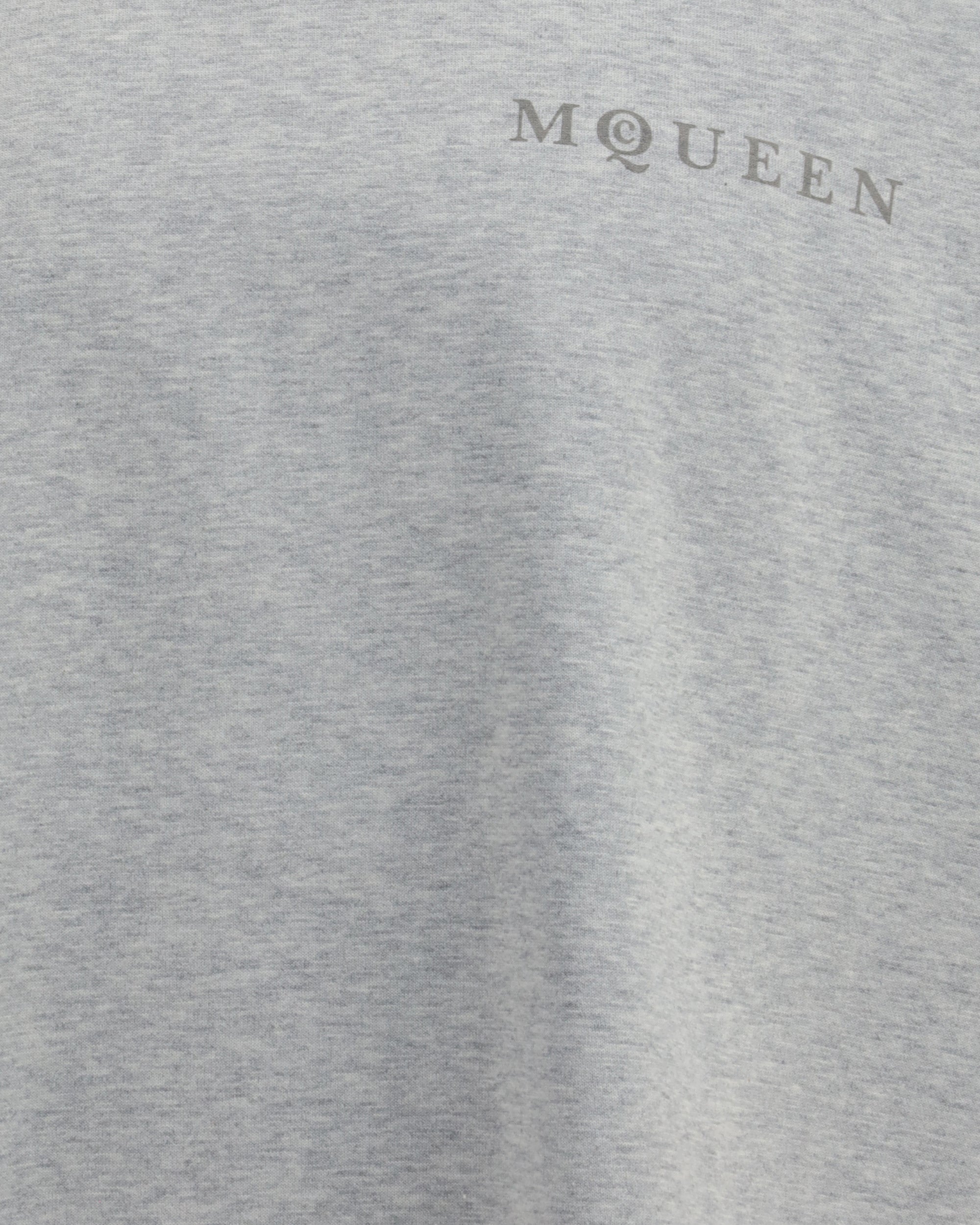 Alexander McQueen's grey mélange T-Shirt is an essential and contemporary design. The ribbed crew neck ensures optimal comfort, while the brand's signature is printed on both the front and back, adding a distinctive and instantly recognizable touch. Perfect for those seeking a balance between casual and luxurious style, this T-shirt is a statement of minimalist elegance.