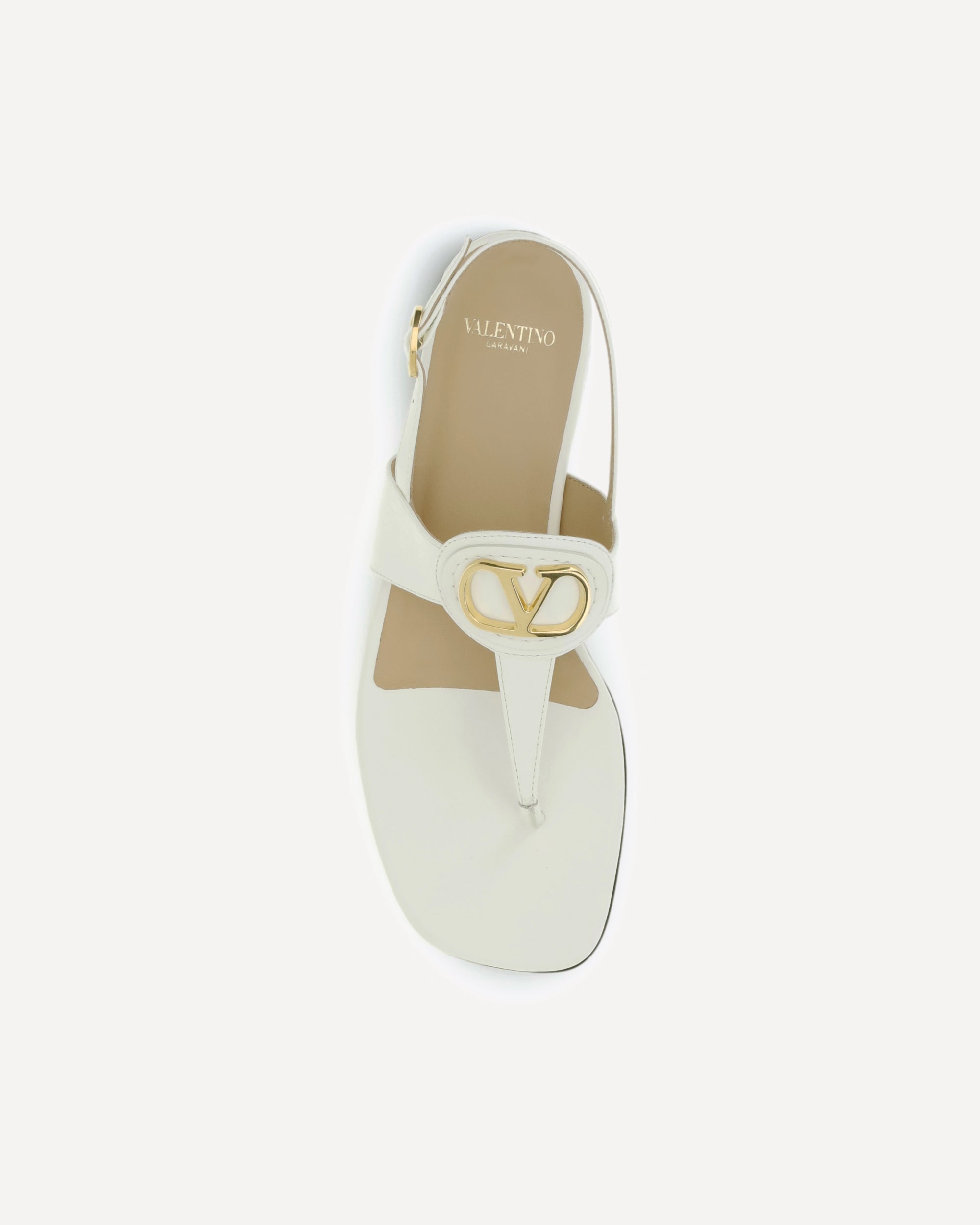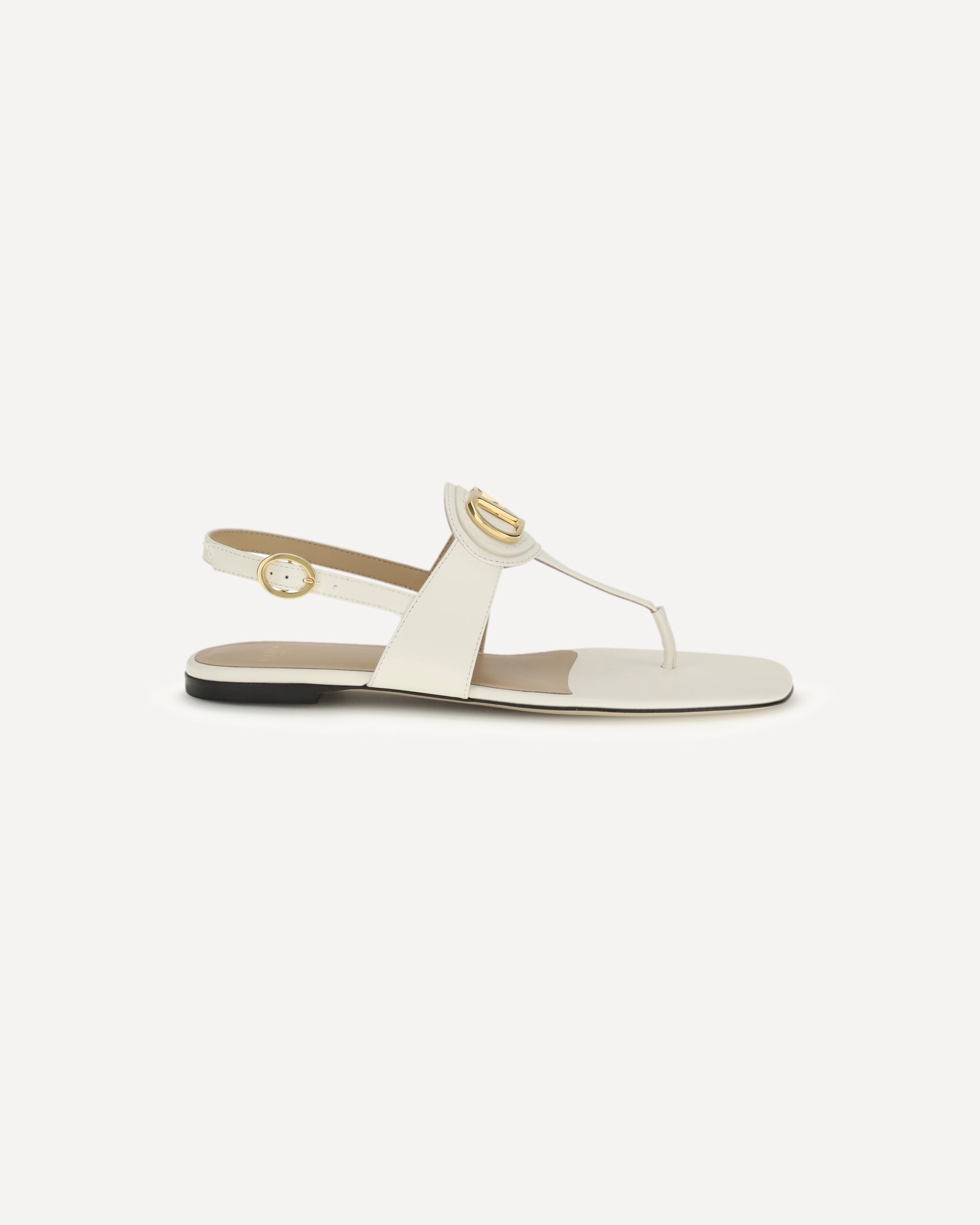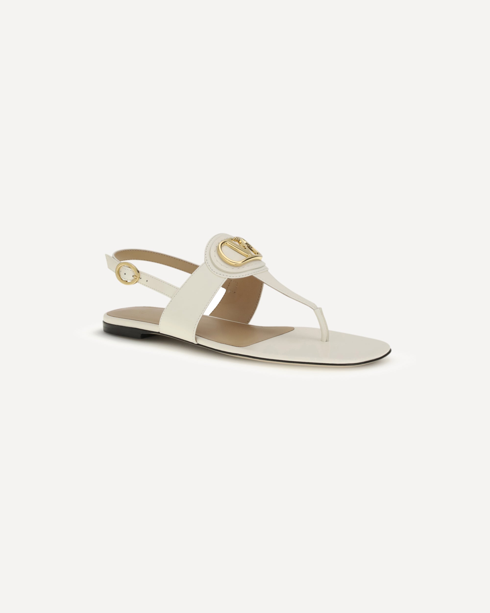 The leather thong Sandals by Valentino Garavani embody refined minimalism, enhanced by the gold-tone metal VLogo Signature detail on the front. The adjustable back strap with buckle ensures a secure fit, while the flat leather sole adds a polished and timeless finish to the design.