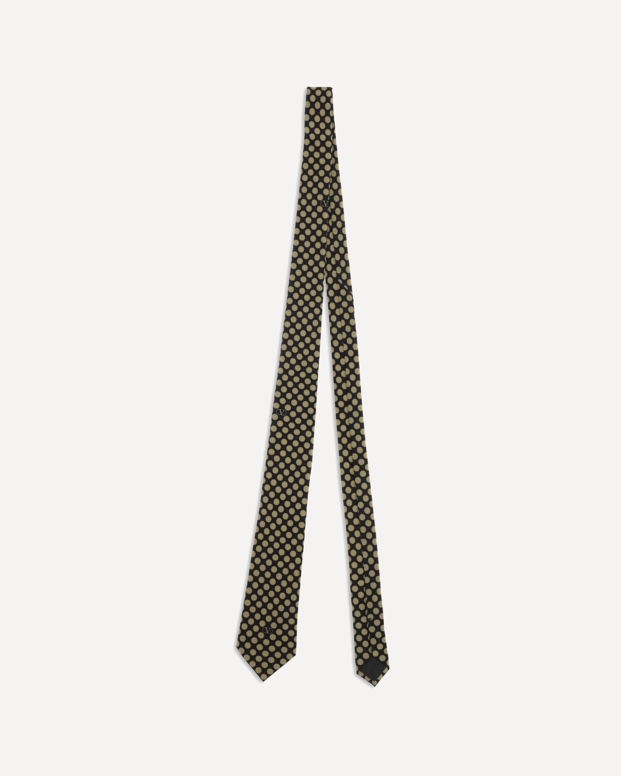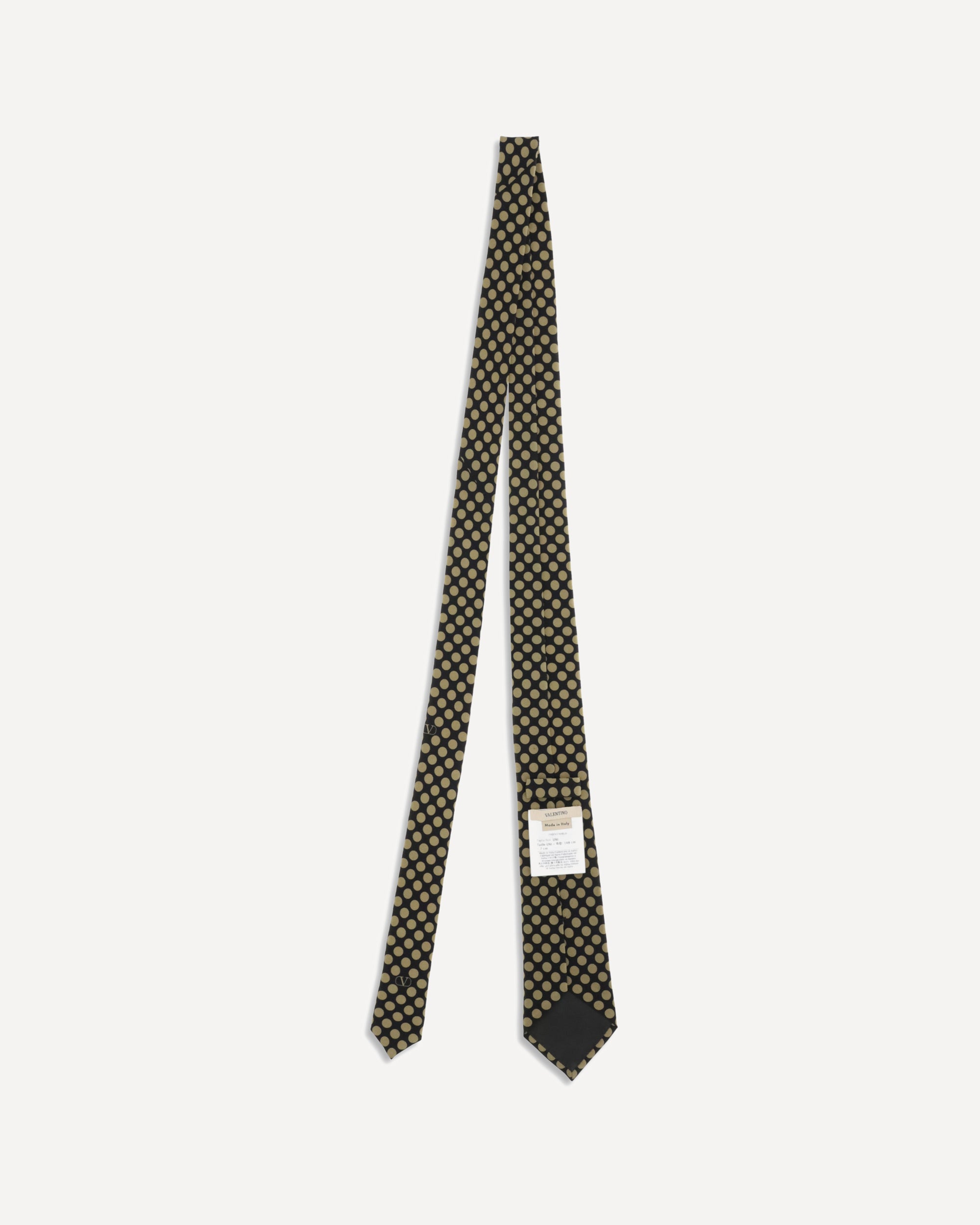 Polka Dot Tie by Valentino Garavani is made of pure silk and embellished with a plusdepois pattern, giving it a refined and timeless elegance. The Valentino signature, woven in jacquard on the outside of the tail, adds a distinctive and sophisticated detail.