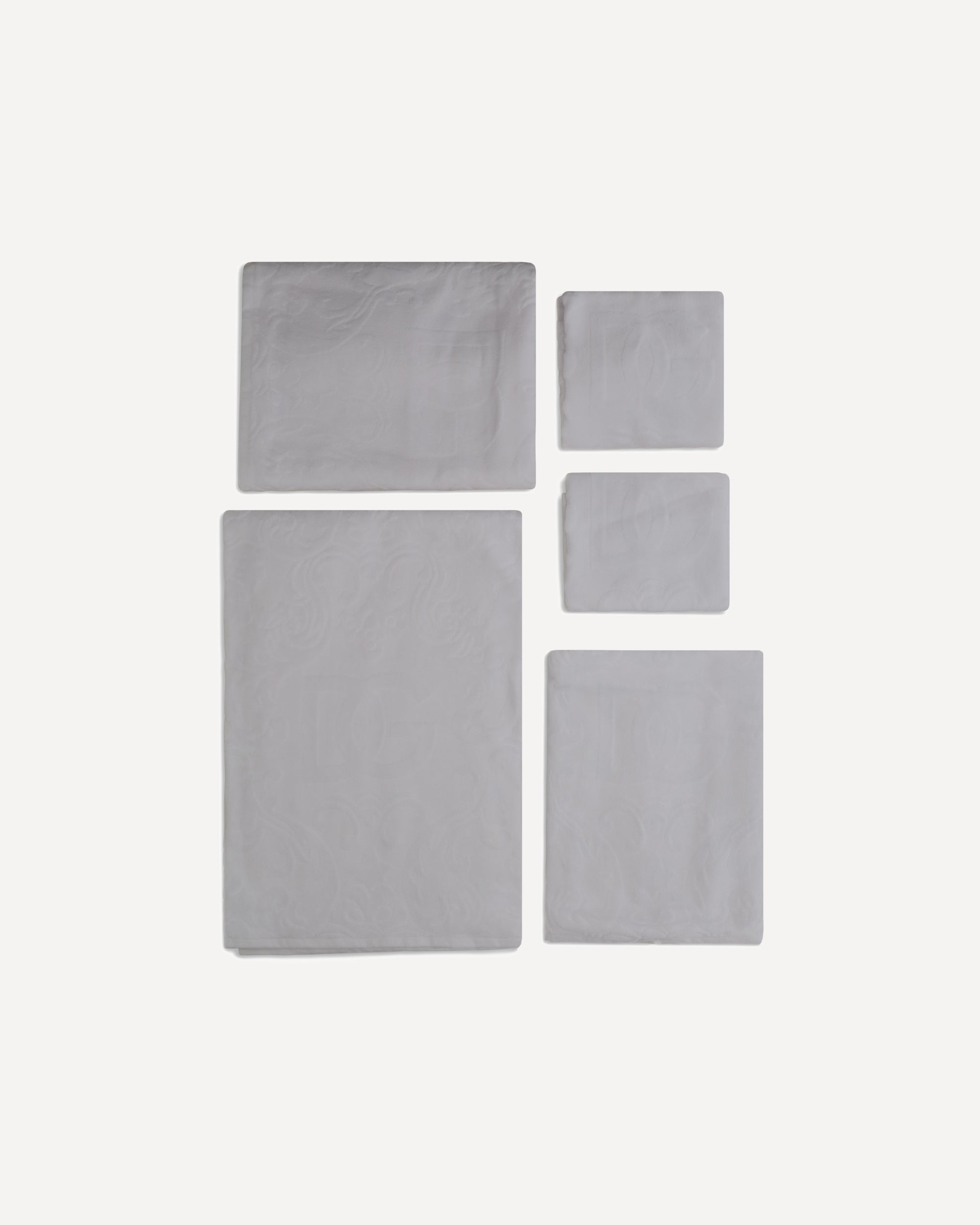 The 5-Piece cotton terry Towel Set by Dolce&Gabbana exudes refinement and attention to detail. Featuring an elegant floral damask design, achieved by alternating plain and sheared fabric, these towels discreetly display the brand's logo. The set includes two guest towels (40 x 60 cm), two face towels (60 x 110 cm), and one bath towel (100 x 150 cm), for a touch of everyday luxury.