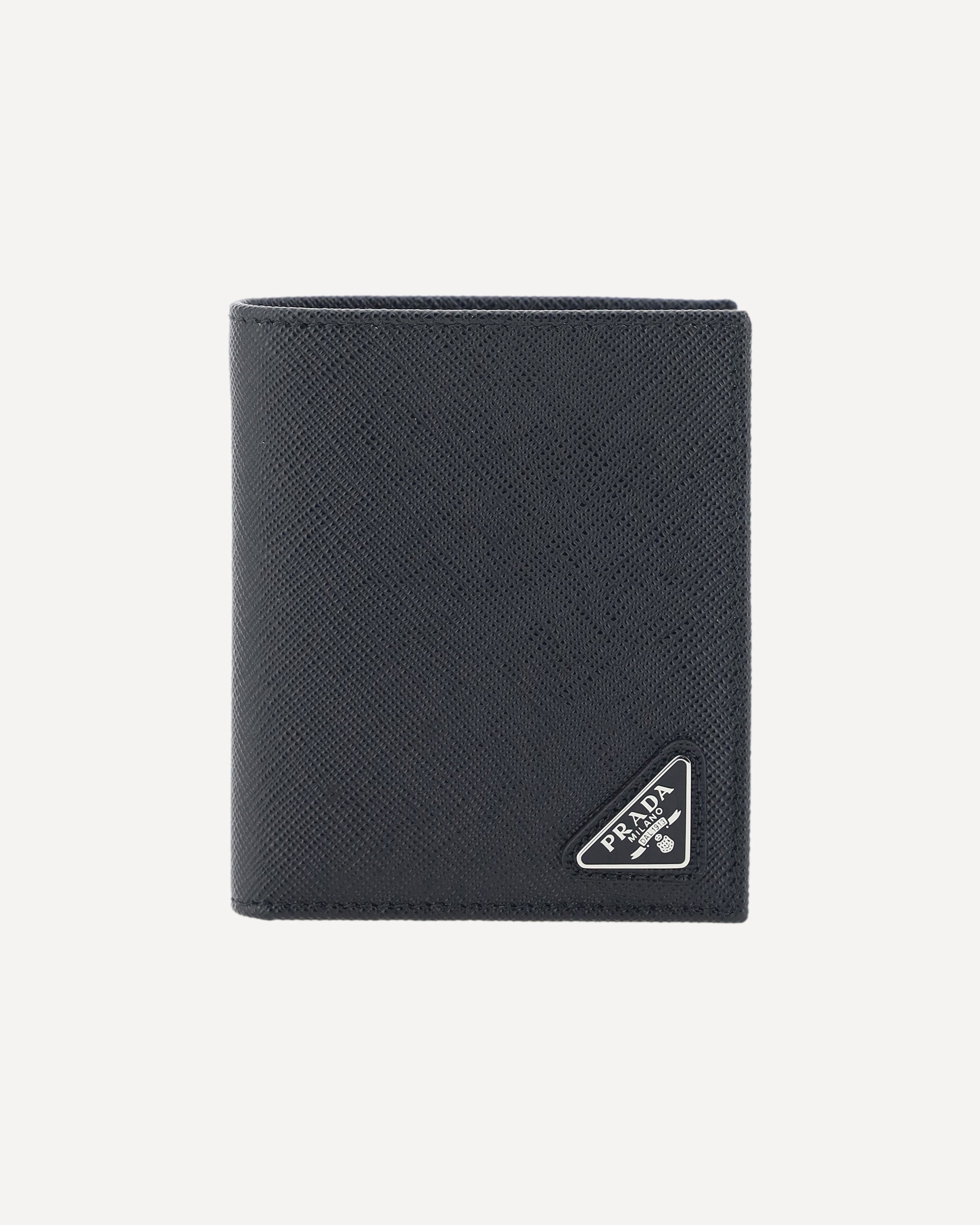 The Saffiano leather Wallet by Prada features an elegant billfold design that is both essential and refined. The characteristic triangular plaque with the brand's logo stands out on the front, an iconic detail that underscores its identity. The interior offers practical card slots and a dedicated banknote compartment, ensuring order and functionality in a compact and stylish format.