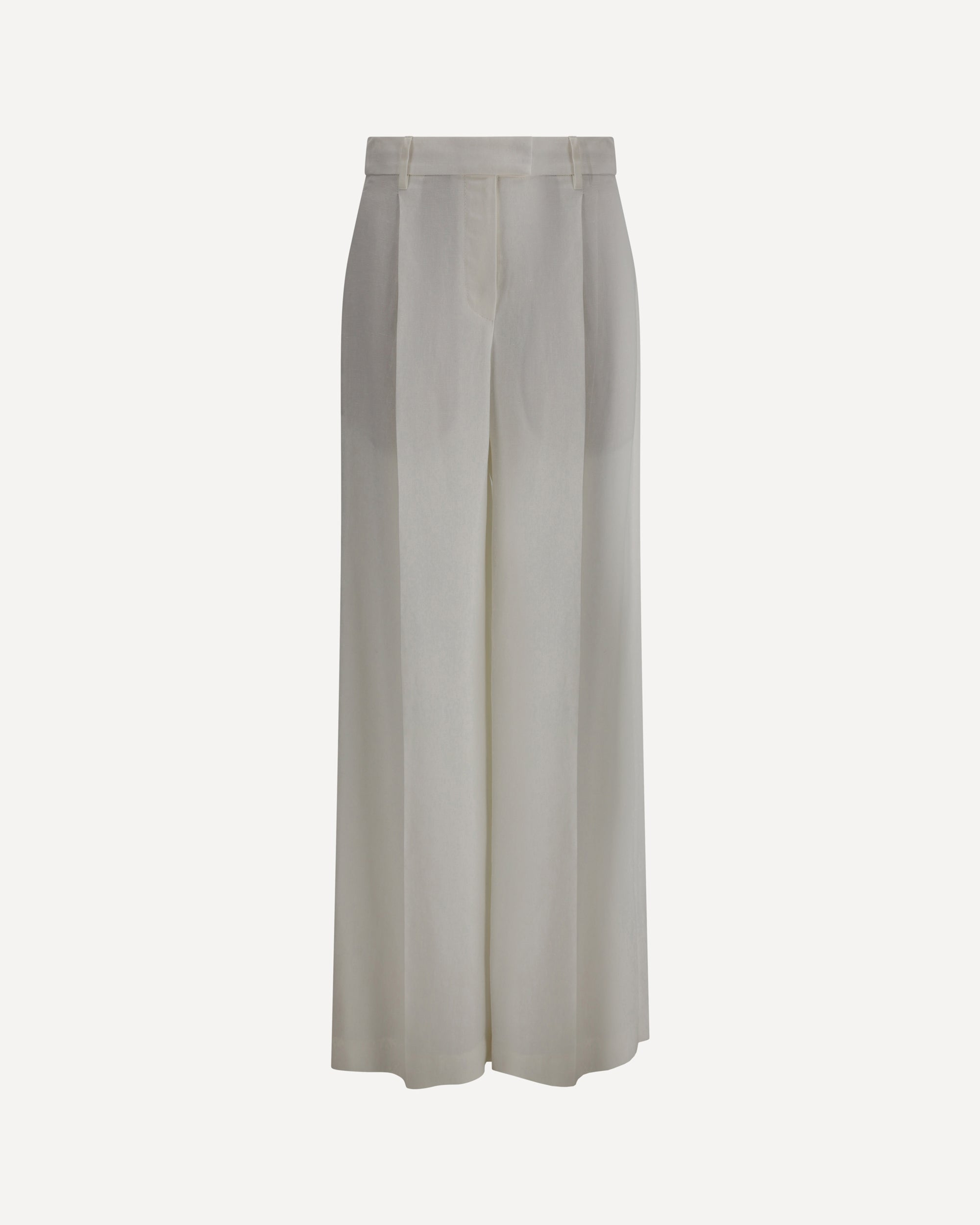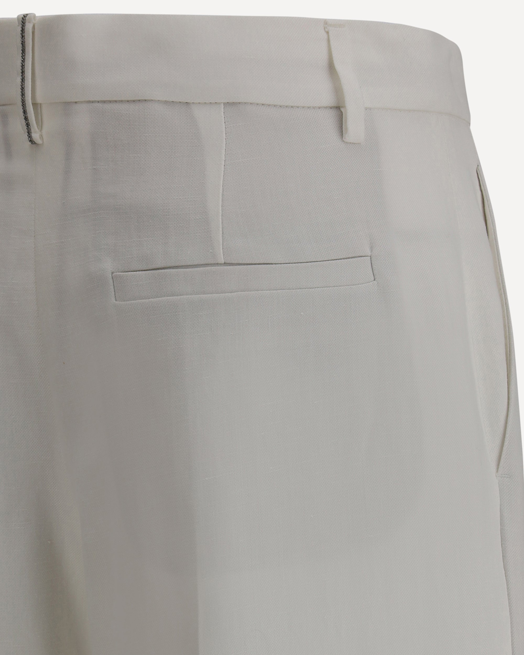 Brunello Cucinelli's wide leg Pants are a sophisticated and versatile piece, featuring a loose, flowing silhouette that lends elegance and comfort. The front zipper and button closure, along with belt loops on the waistband, ensure a perfect fit. The two side welt pockets add a practical and discreet detail. With a high waist, these pants offer a sleek and modern silhouette, perfect for a refined and chic look that can be easily paired with blouses, shirts or elegant tops.