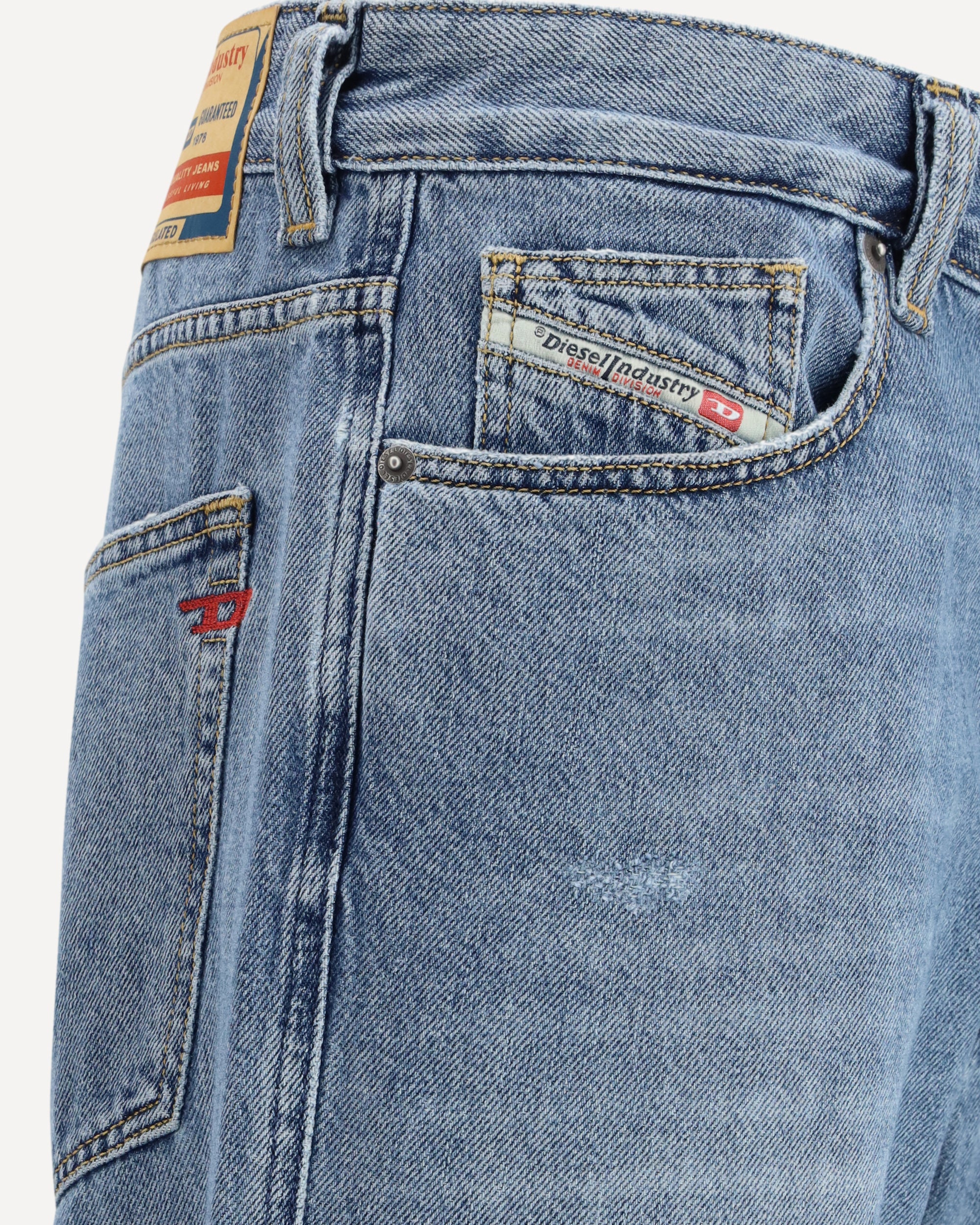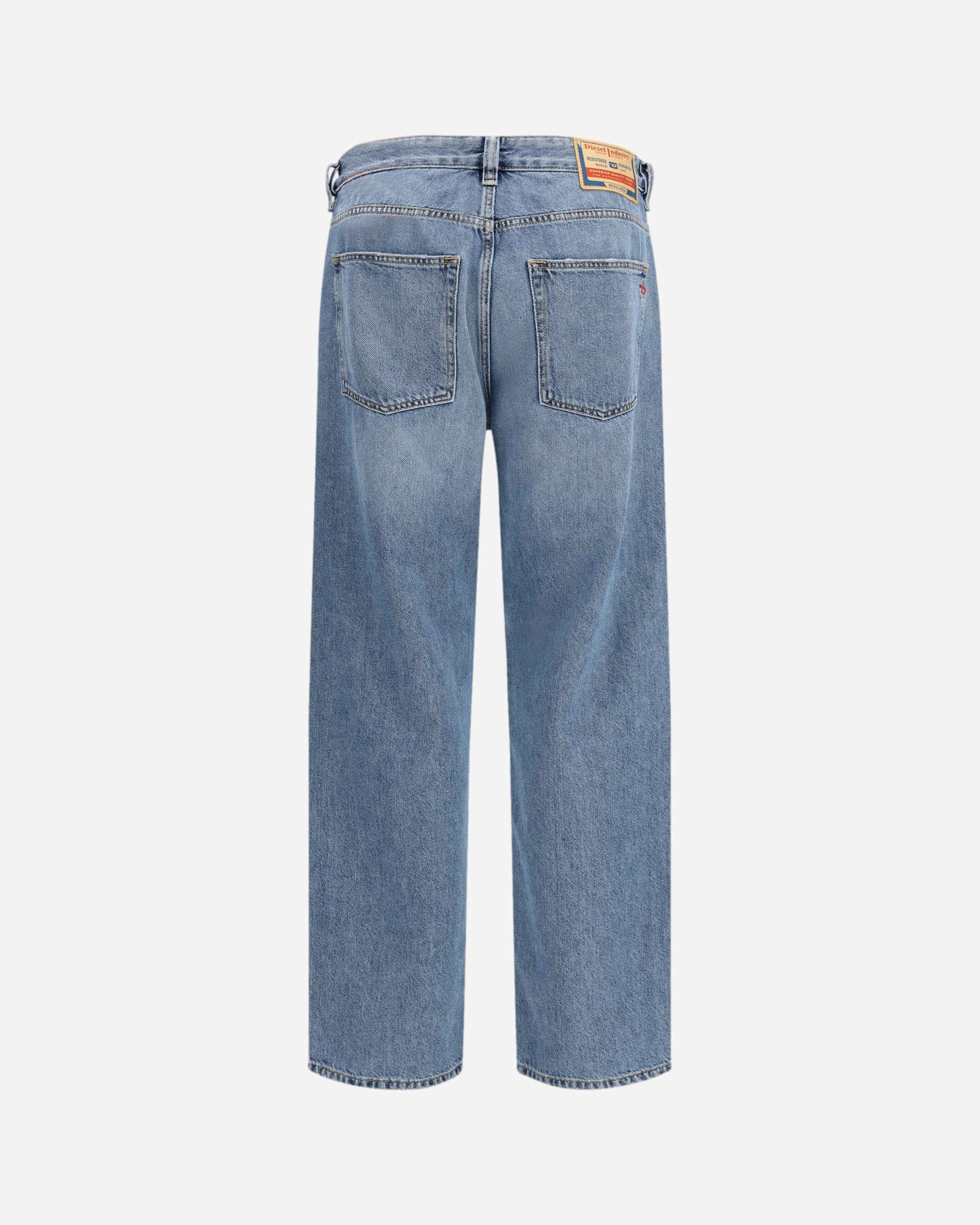 The 2024 D-Macs Jeans by Diesel offer a regular fit with a mid-rise waist and low crotch, while the slightly tapered leg creates a modern and versatile silhouette. The button closure adds a distinctive touch of style. Made from 100% organic cotton. The marked abrasions contribute to a worn effect, making each pair unique. A perfect garment for those looking for a casual style with a strong character and a commitment to sustainability.