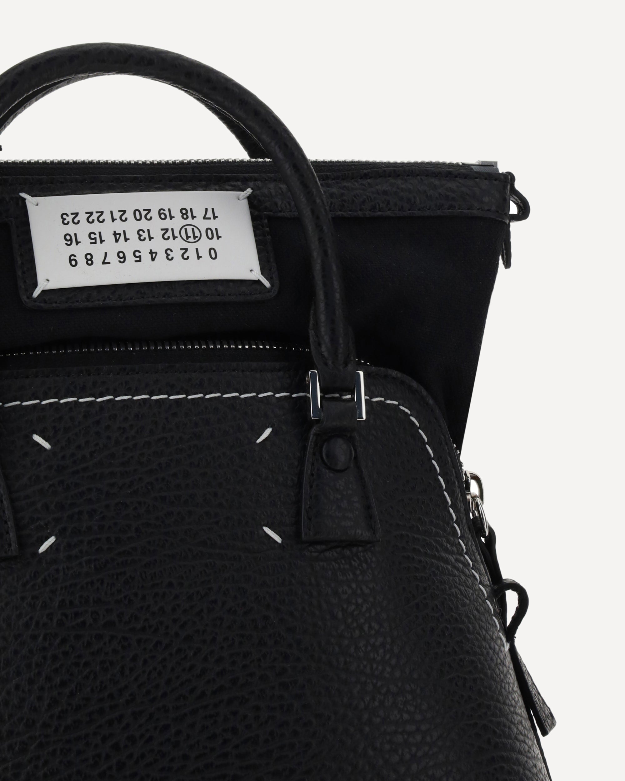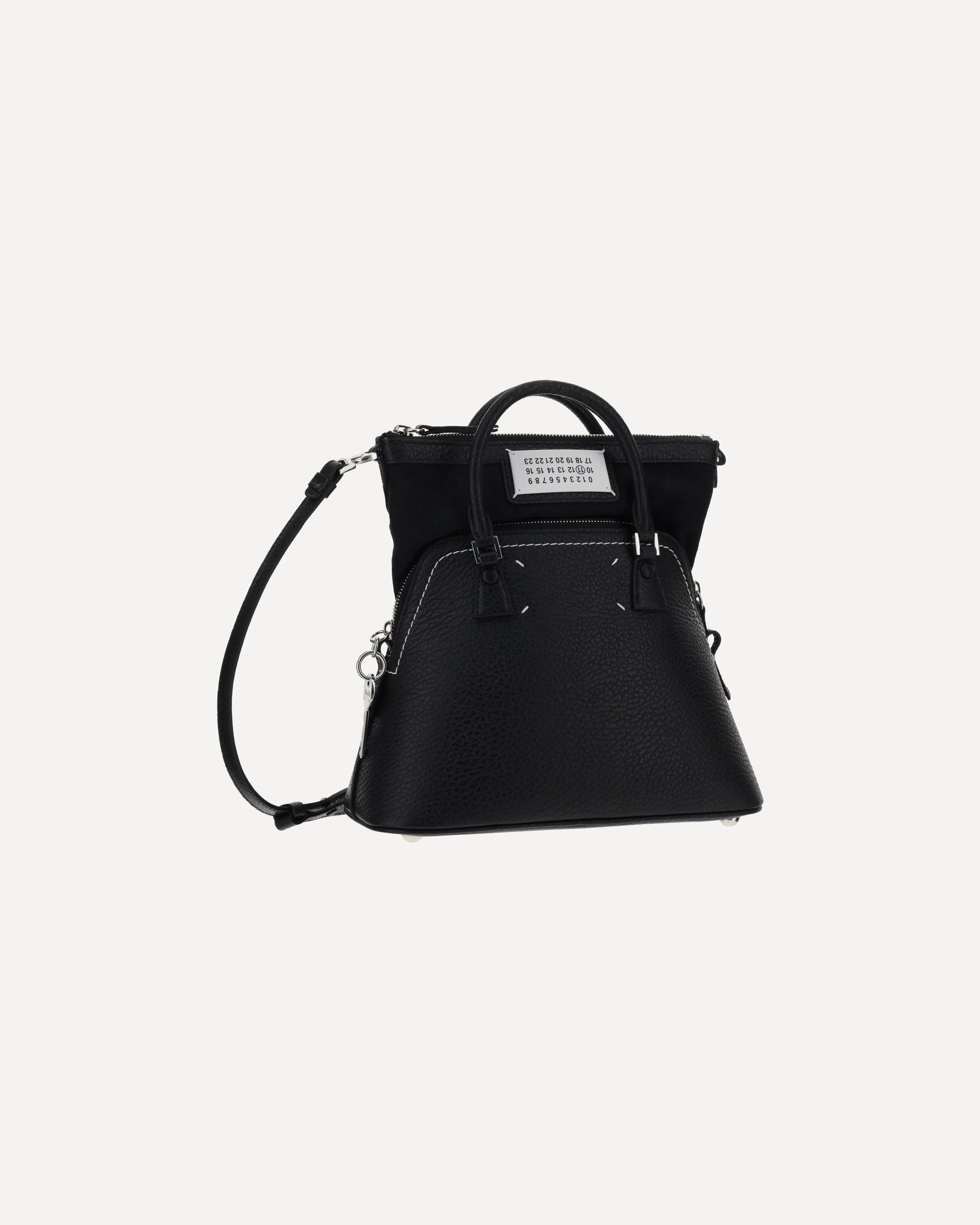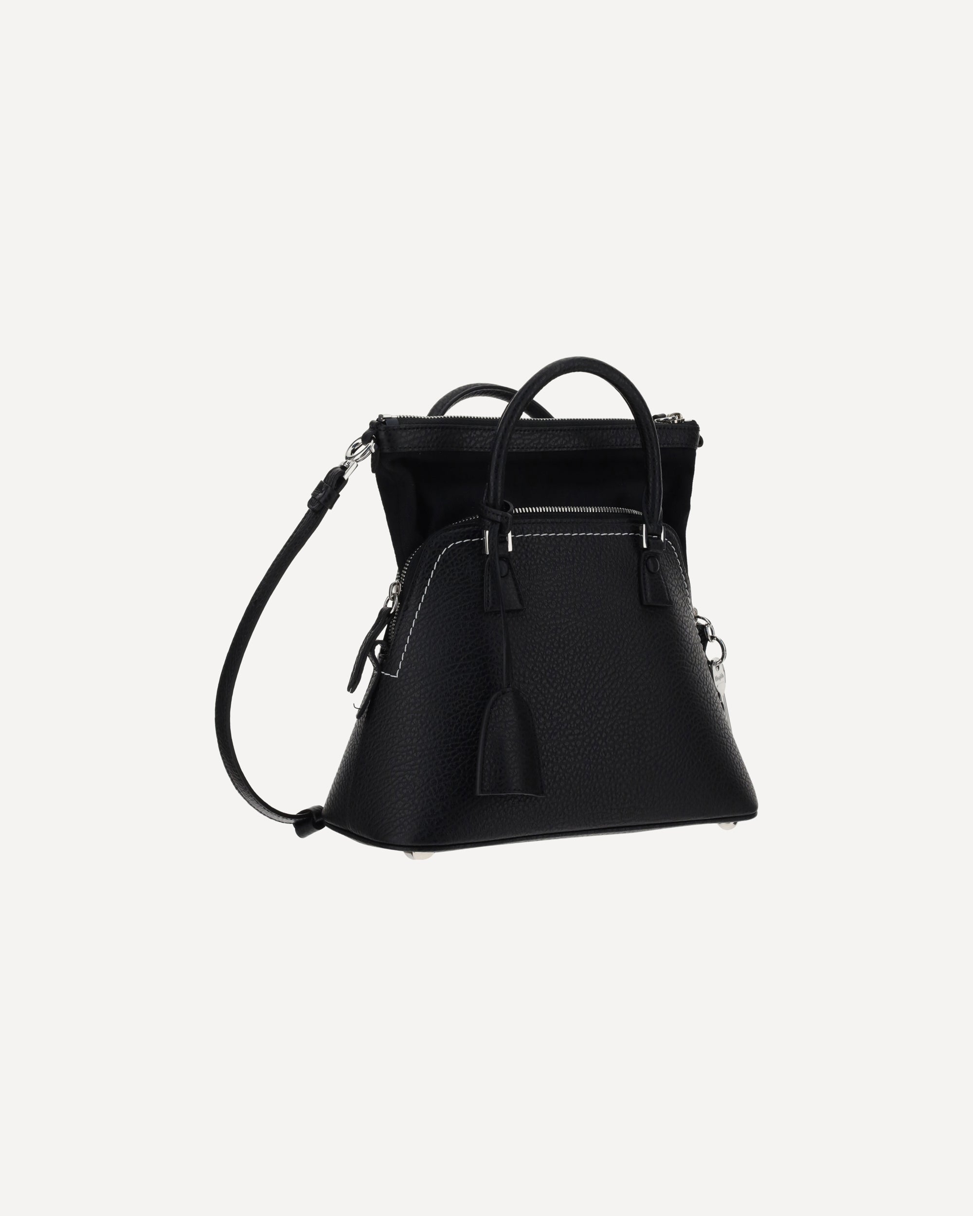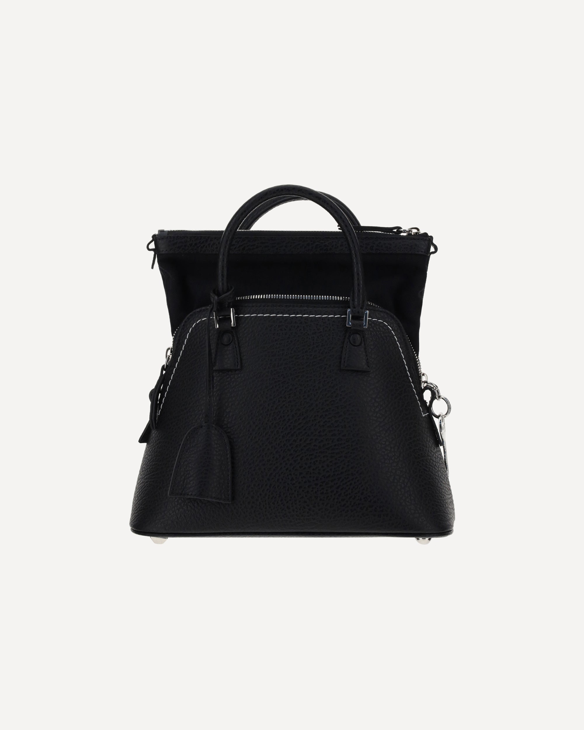 Calfskin 5AC Handbag by Margiela, double rigid leather handles, removable and adjustable chain shoulder strap, top closure with double-slider zipper, interior flat pocket, iconic signature patch and brand monogram embroidered on the front, metallic feet on the base of the bag for support.