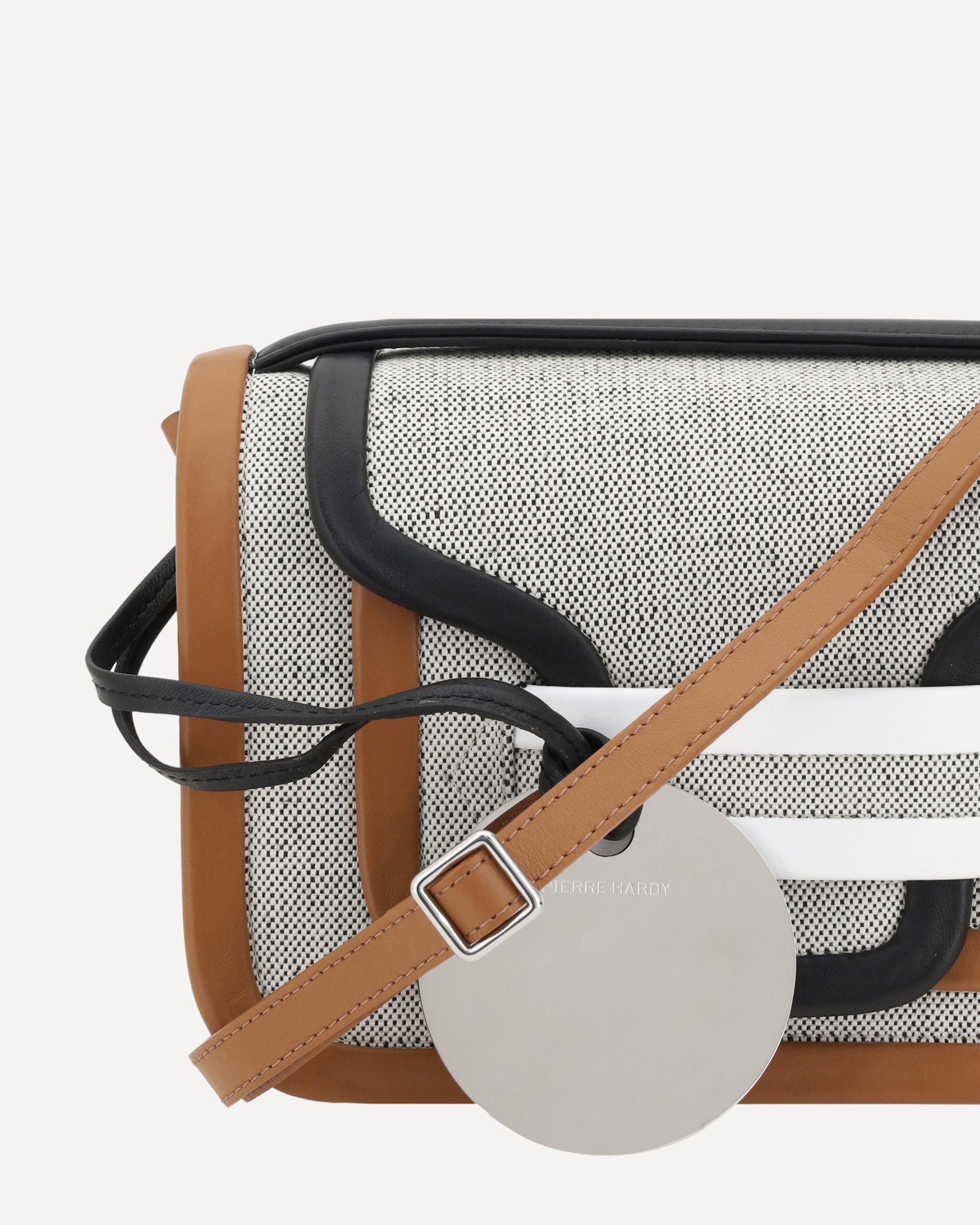 Pierre Hardy's Alpha leather Shoulder Bag features a handle on top and an adjustable, removable shoulder strap, offering the option to be worn in a variety of ways, adapting to every need. The pocket on the front, with an interlocking flap, adds a touch of practicality and style, while the slit pocket on the back offers extra space for smaller items. The magnetic button closure provides quick and easy security, while the interior features a main compartment with two slit pockets, perfect for better organizing personal items.
