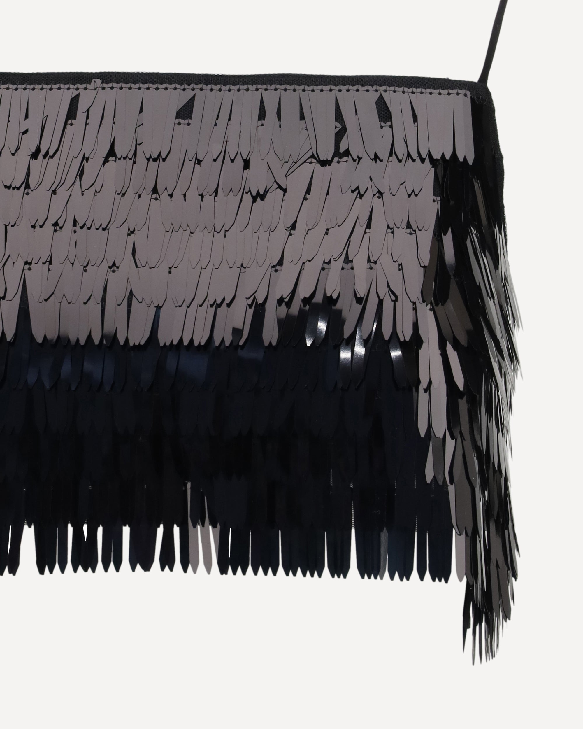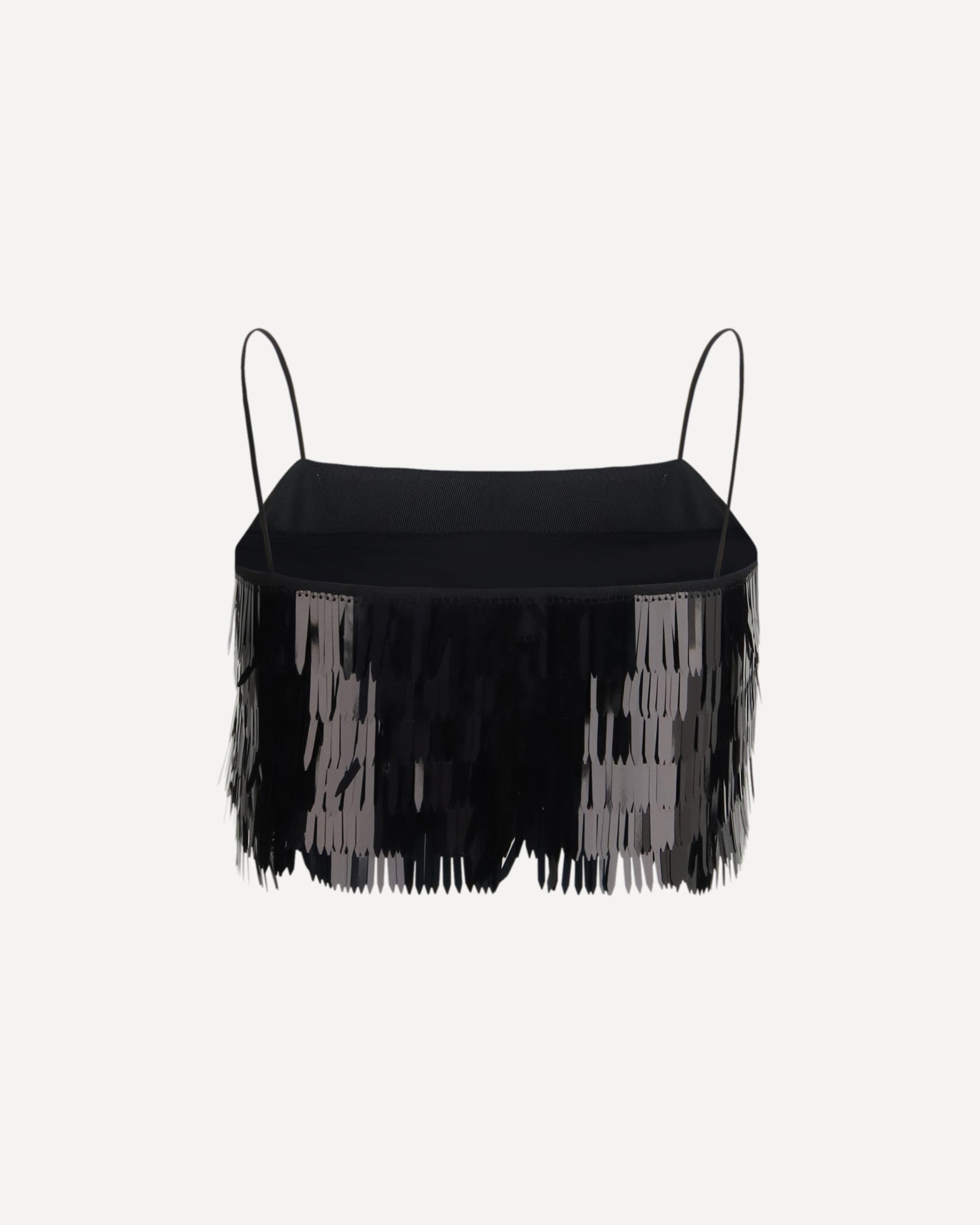 The sequin Top by Self Portrait is a statement piece designed for evenings out, defined by feather-like long black sequins that create dynamic texture and shine. It fits true to size, with a fabric that has slight stretch for comfort, and is fully lined for a polished finish. The cropped silhouette enhances the figure and can be styled with high-waisted denim for a relaxed night-out look or paired with the matching skirt for maximum impact.