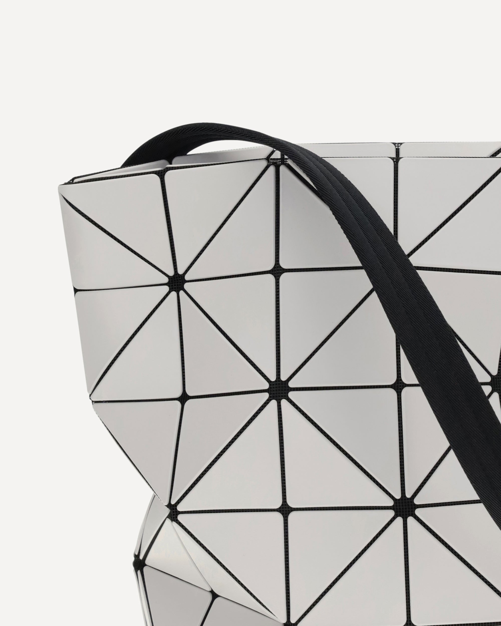 Blocky Shoulder Bag combines style and functionality with a zippered top closure, a roomy main compartment, and an inside pocket for small items. The adjustable, padded shoulder strap allows for comfortable shoulder or cross-body use. Made of matte leather-effect material, it features a three-dimensional structure of large triangles and is offered in neutral colors.