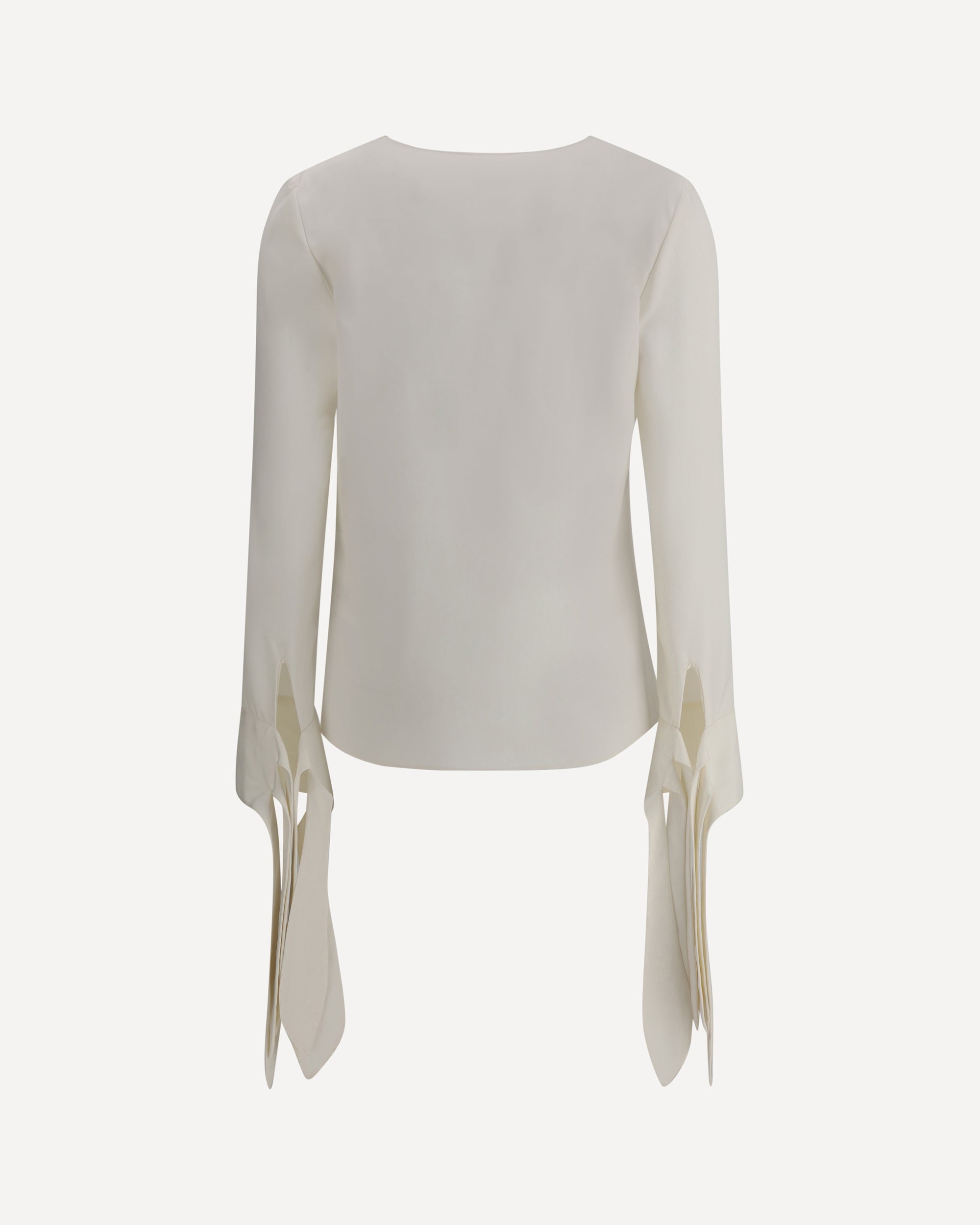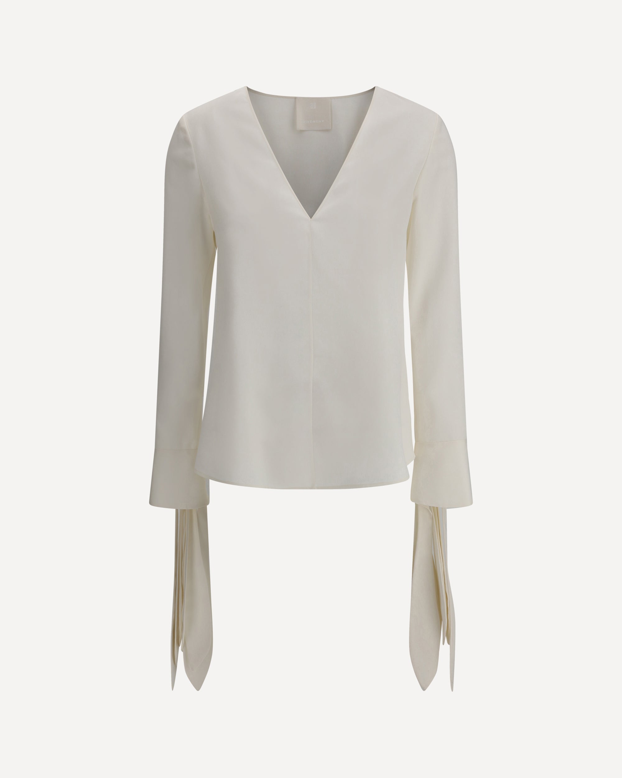 The Givenchy silk Blouse is an elegant and sophisticated piece, perfect for those seeking a refined look but with a touch of originality. The V-neckline on the front adds an accent of discreet sensuality, while the knotted bows on the cuffs give a romantic and distinctive detail. The iconic logo of the brand on the front adds a touch of recognisability, without being too invasive. Made of high-quality silk, this blouse is perfect for elegant occasions or to add a touch of luxury to a more casual look. A piece that combines sophistication and modernity impeccably.