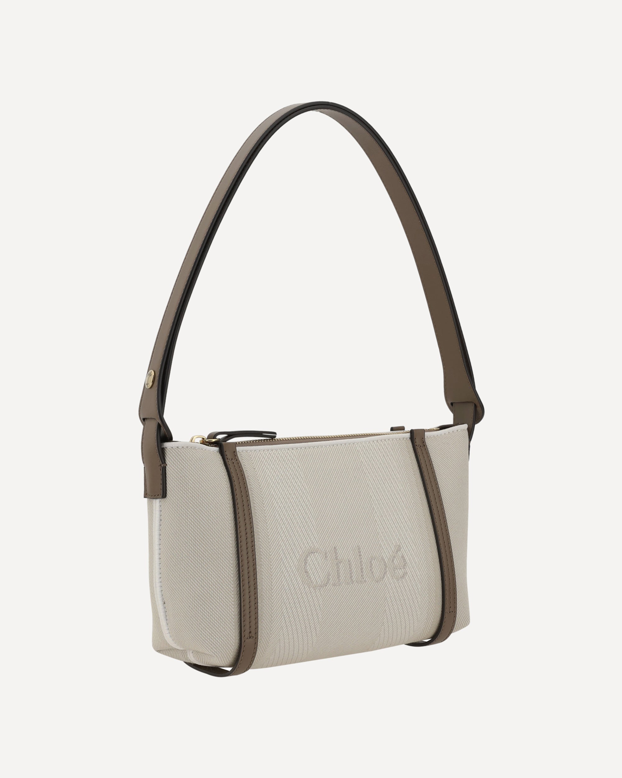 Chloé's cotton Carry Shoulder Bag is a stylish and versatile accessory made from durable cotton. It features a flat leather shoulder strap that is comfortable for carrying on the shoulder. The closure features a top zipper, providing security and convenience. The front of the bag features the jacquard monogram, a distinctive detail of the brand. Leather details add a touch of sophistication. Inside, the bag offers ample space with a single compartment, perfect for organizing personal items
