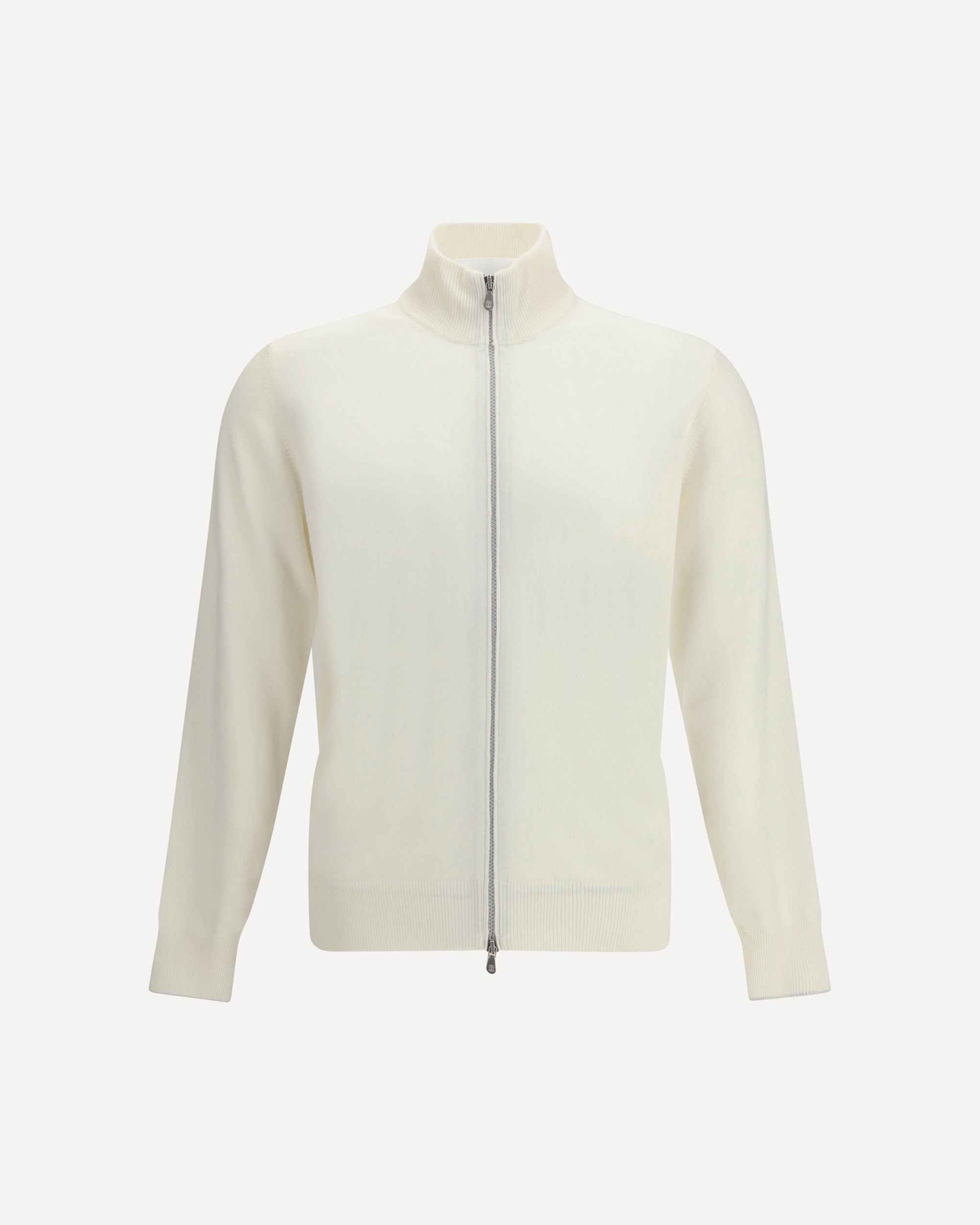 The pure cashmere Cardigan by Brunello Cucinelli embodies understated luxury and Italian craftsmanship. The fine knit enhances the natural softness of the yarn, while the high collar and double-slider zip closure lend a clean, modern profile. Ribbed cuffs and hem provide structure and comfort, balancing relaxed elegance with everyday wearability. A timeless piece that captures the refined spirit of Solomeo’s aesthetic philosophy.
