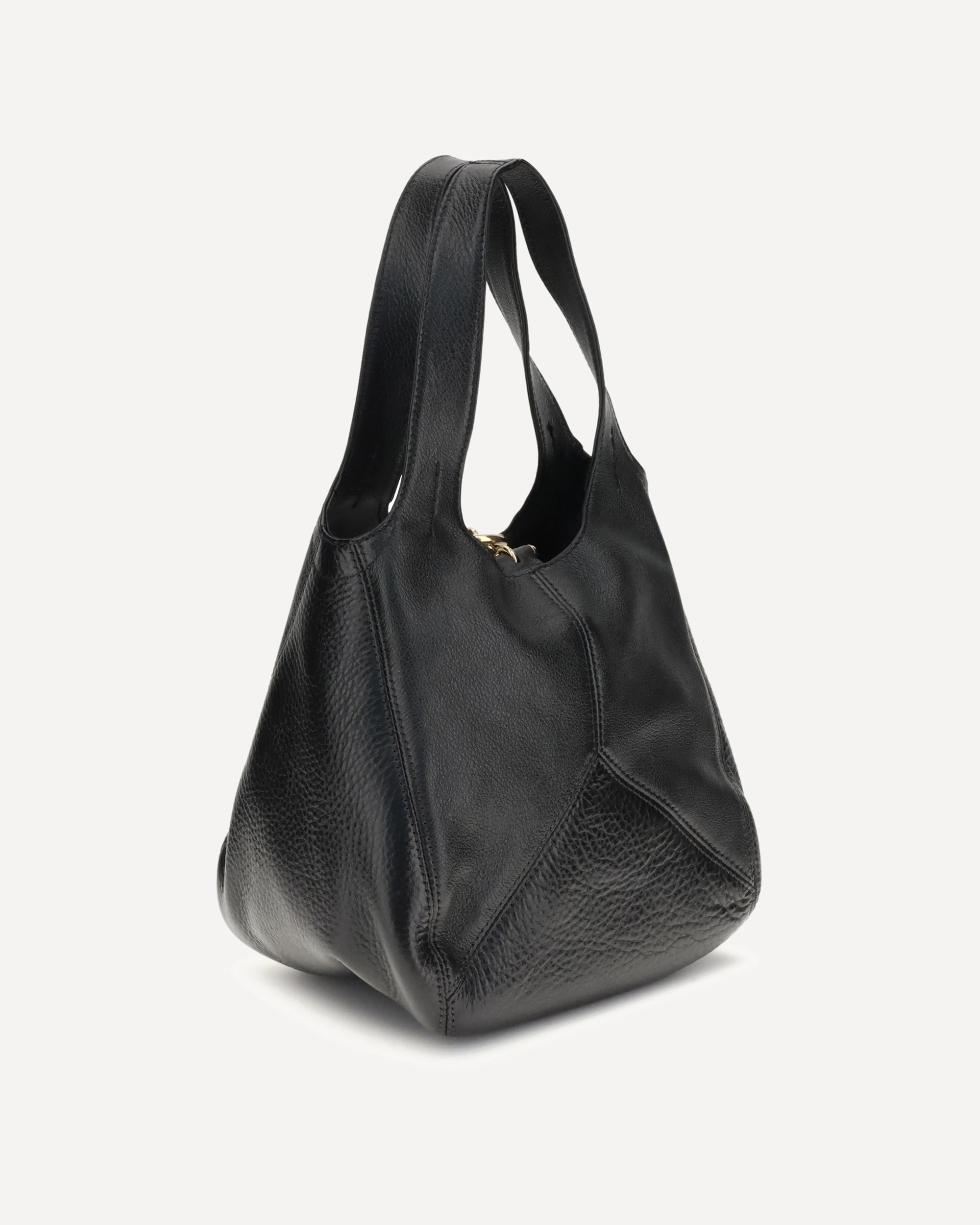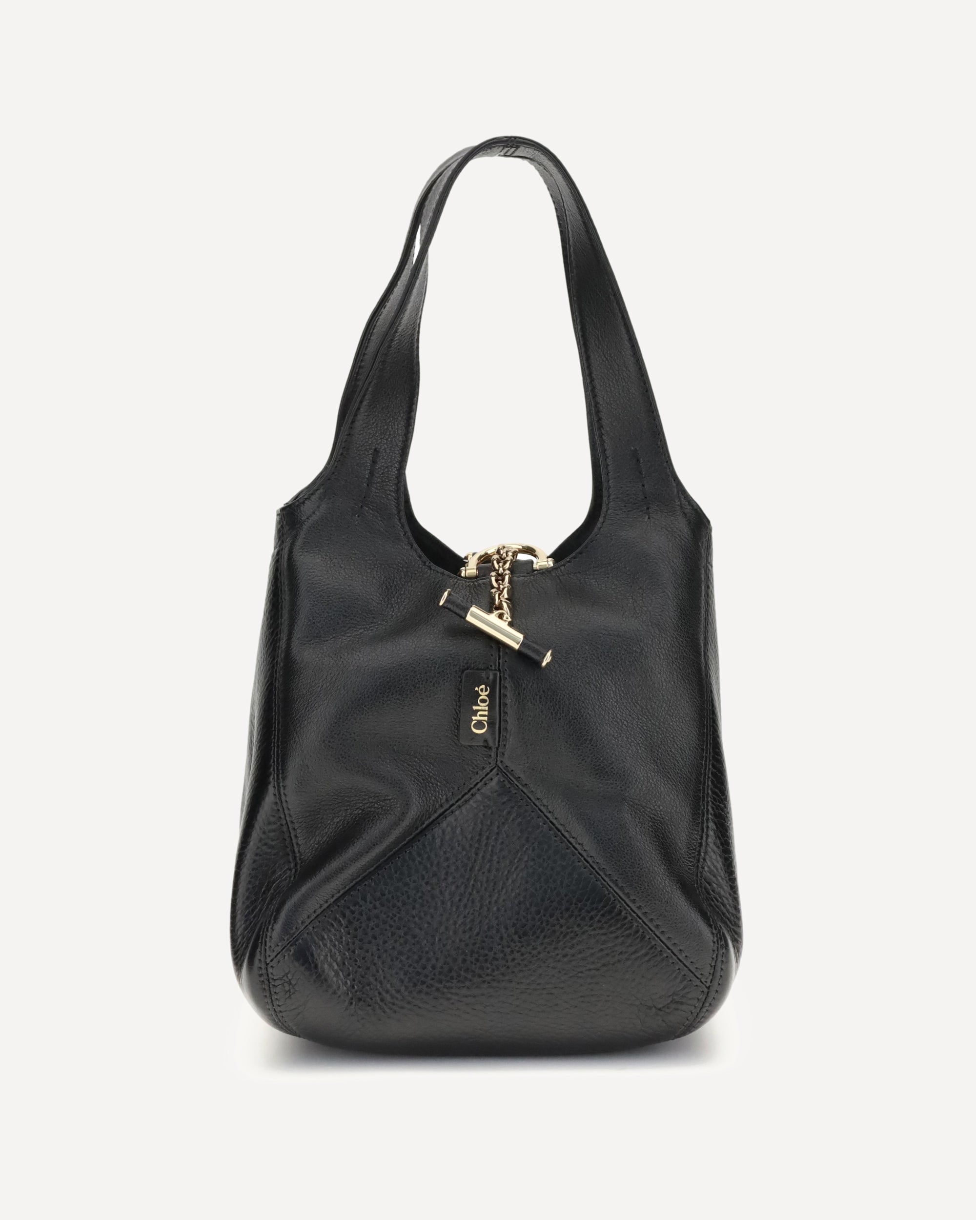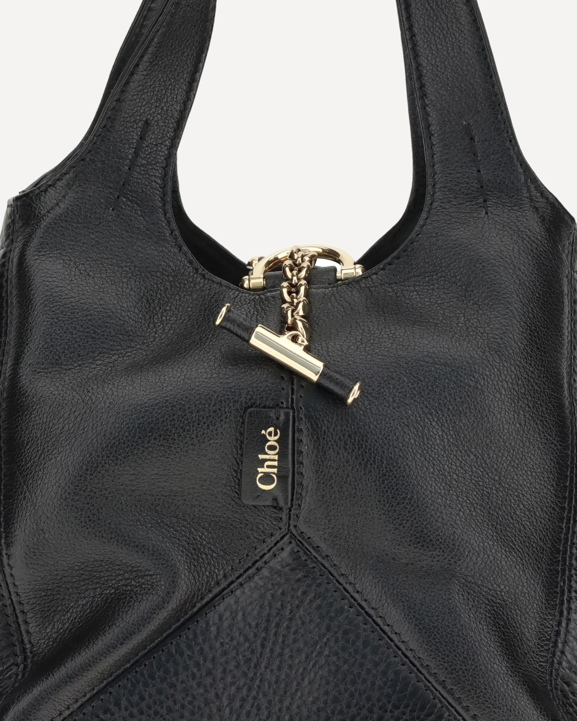 The small Balloon Shoulder Bag by Chloé combines elegance and craftsmanship. Crafted from grained buffalo leather with a shiny leather patchwork, it features a main compartment and a toggle closure. It can be carried by hand or over the shoulder, perfect for a sophisticated and versatile style.