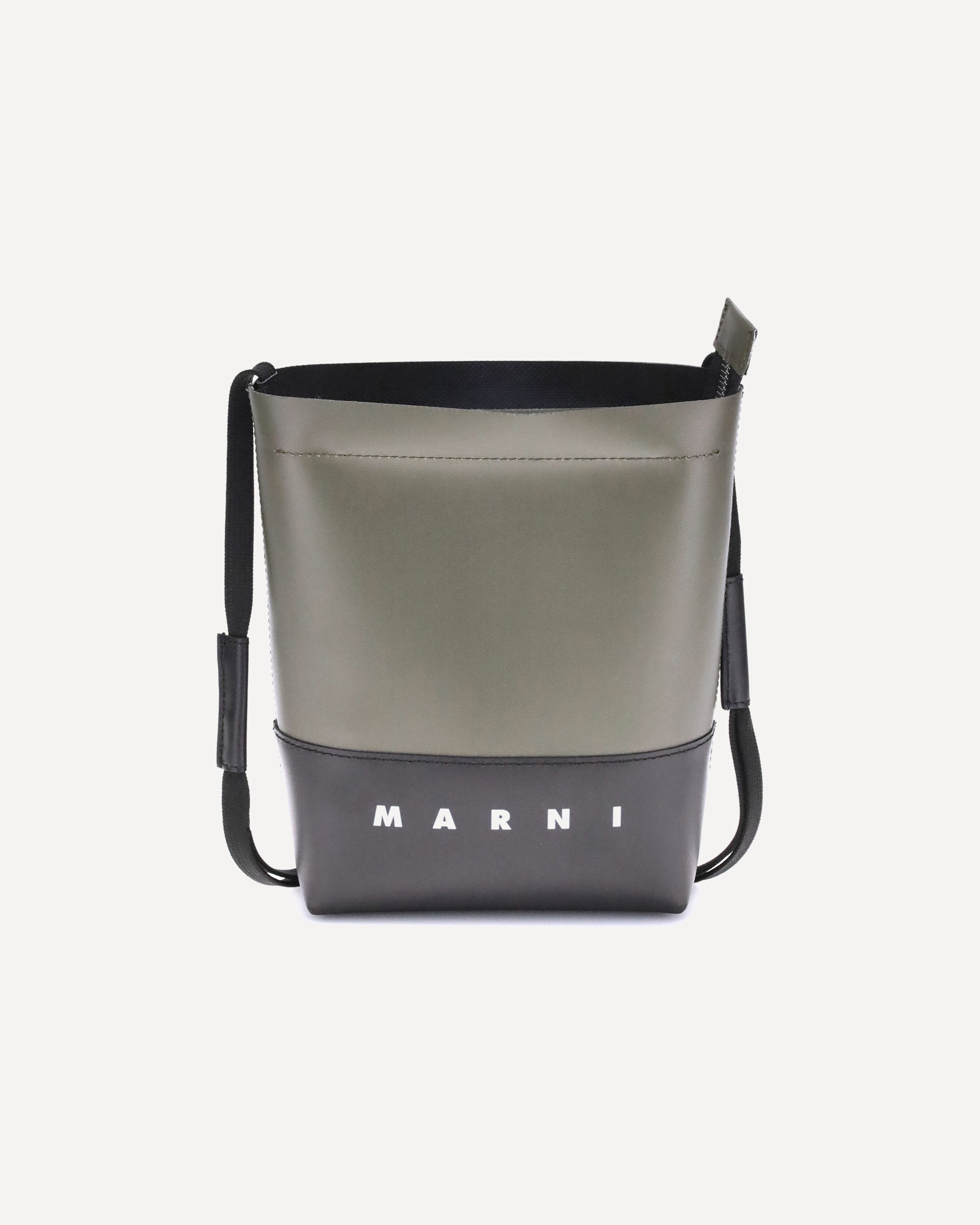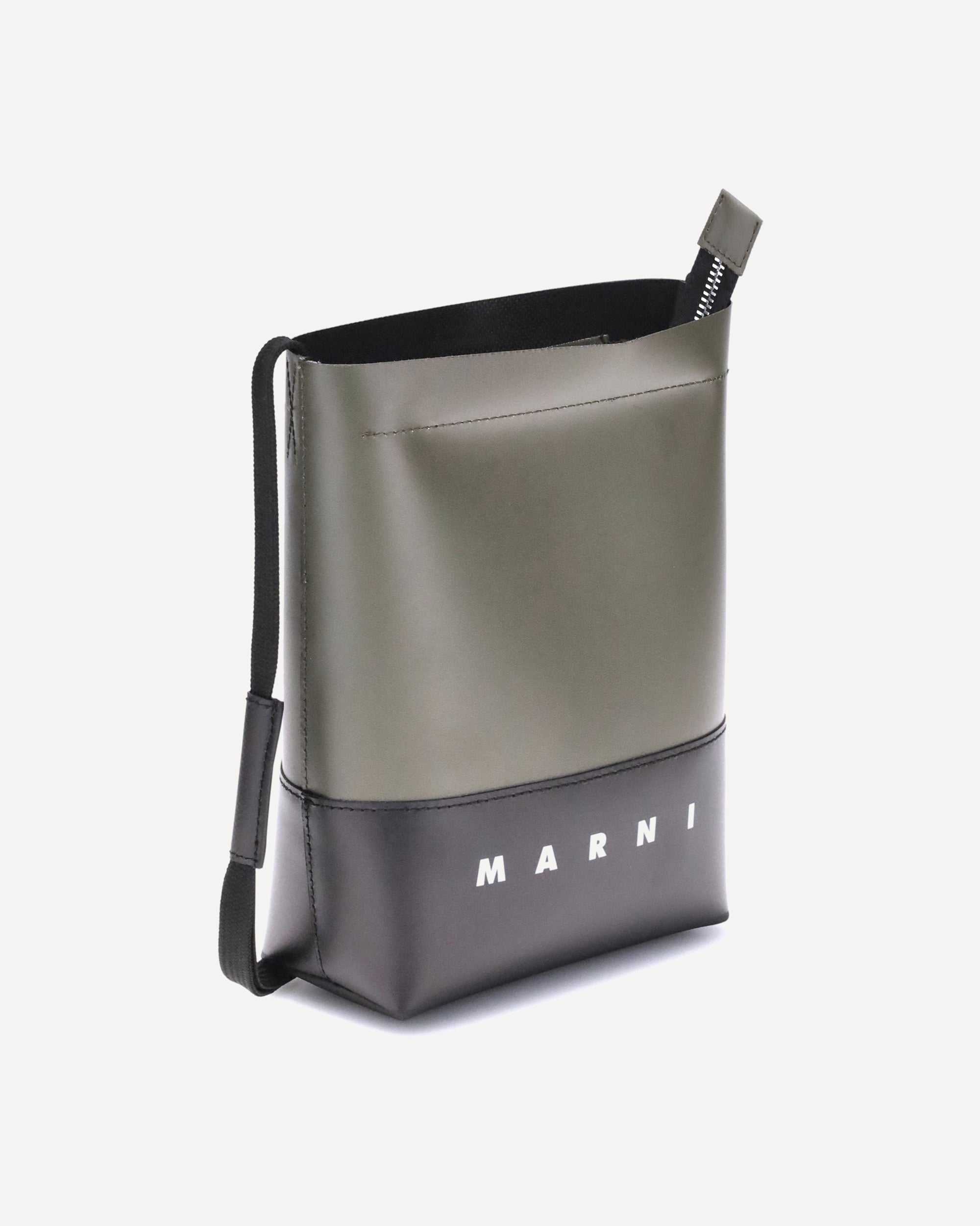Marni's colorblock Shoulder Bag combines modern design and functionality. Featuring an adjustable ribbon shoulder strap for personalized comfort, it has a practical and secure zipper closure. A Marni logo print stands out on the front, while palladium metal elements add a touch of contemporary elegance.