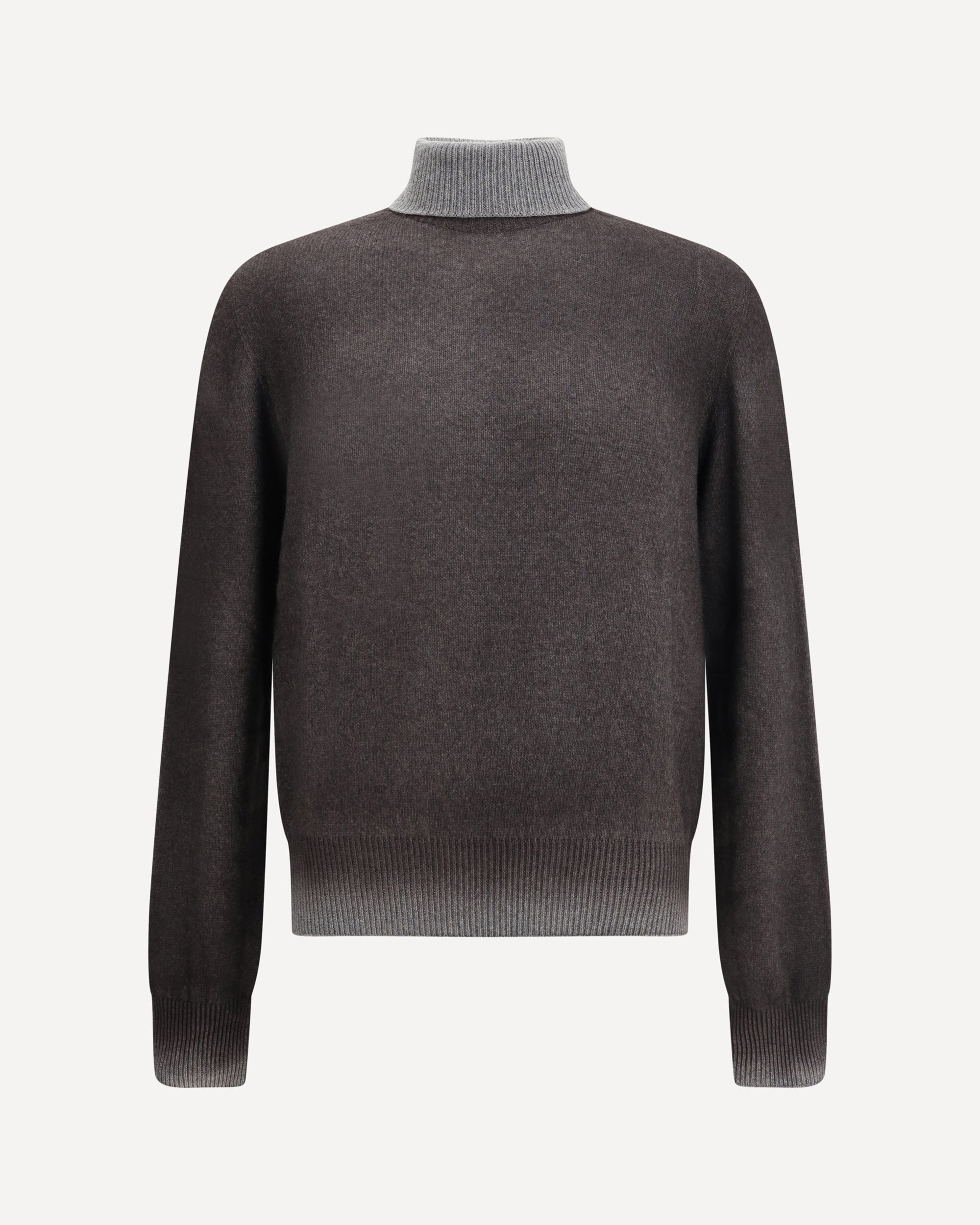 The Cashmere Turtleneck by Aragona Cashmere redefines elegance with a contemporary touch. Enhanced by a gradient effect that flows through the knit in subtle color transitions, it features ribbed hem and cuffs for a structured finish. Soft and enveloping, it is designed to deliver absolute comfort while standing out with refined, distinctive style.