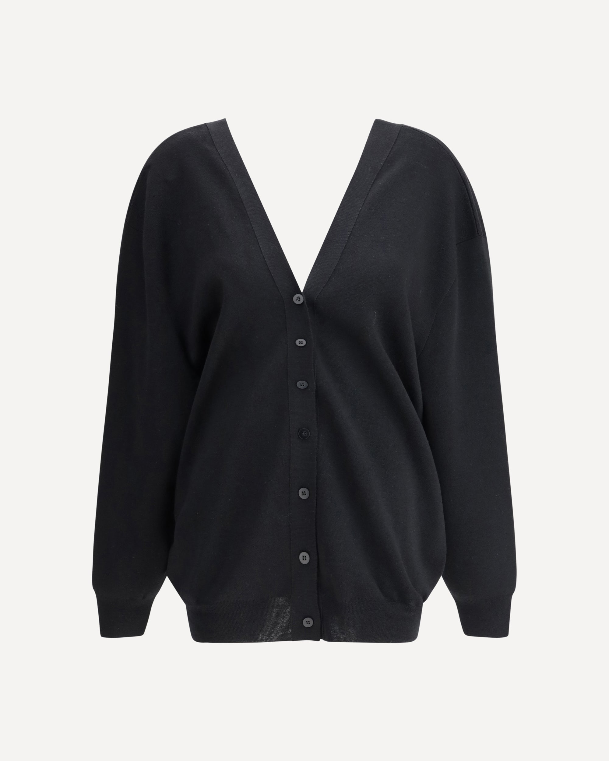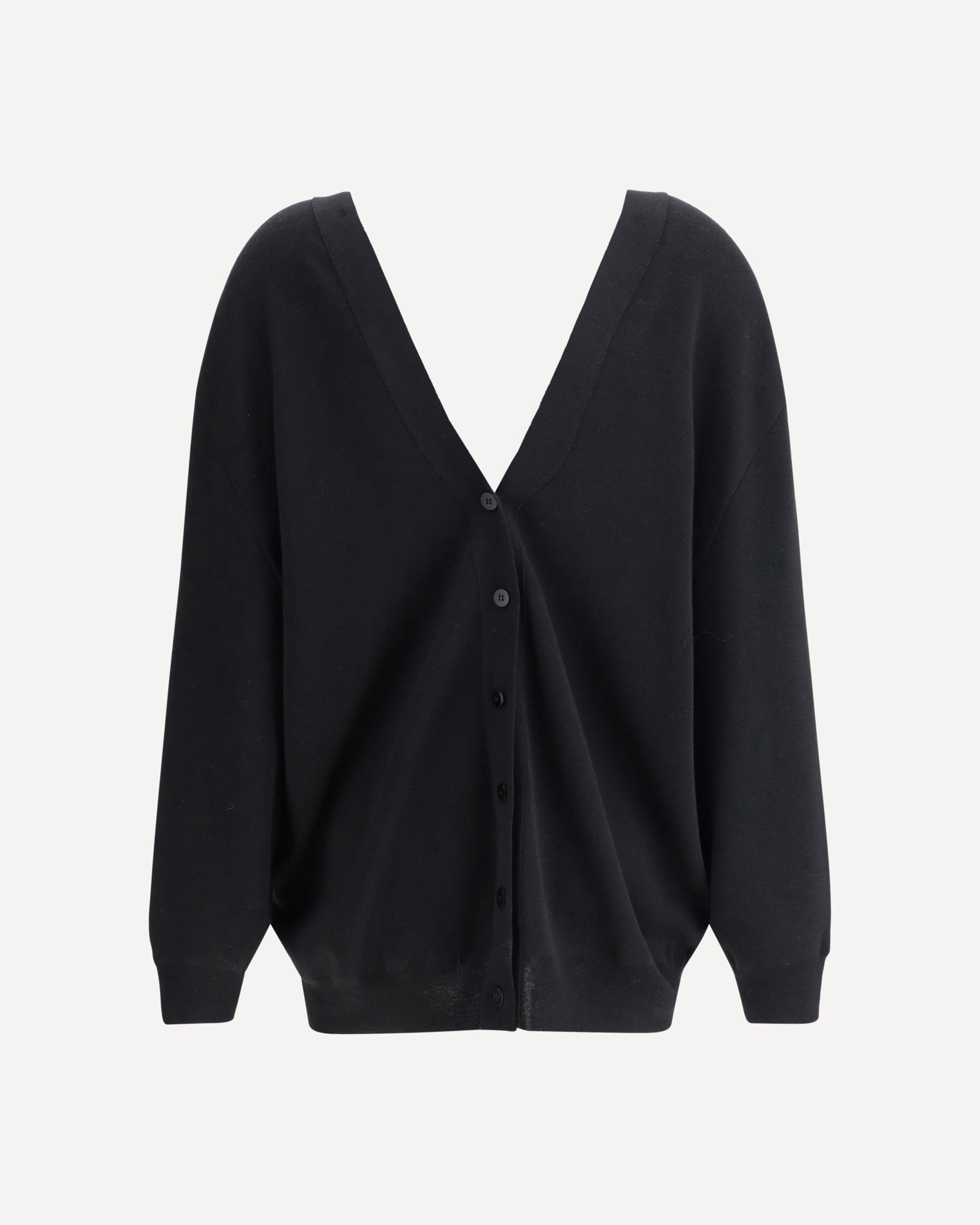 The Double Side V Cardigan by Sa Su Phi is a bold and sophisticated design piece, perfect for those looking for a mix of elegance and originality. The deep V-neckline on both the front and back adds a sensual and distinctive touch, creating an interesting and dynamic effect. The front and back button closure offers a versatile look, allowing you to choose how to wear it and adapt it to your style. The ribbed edges and ribbed cuffs complete the design with classic details, ensuring a comfortable and finished fit.
