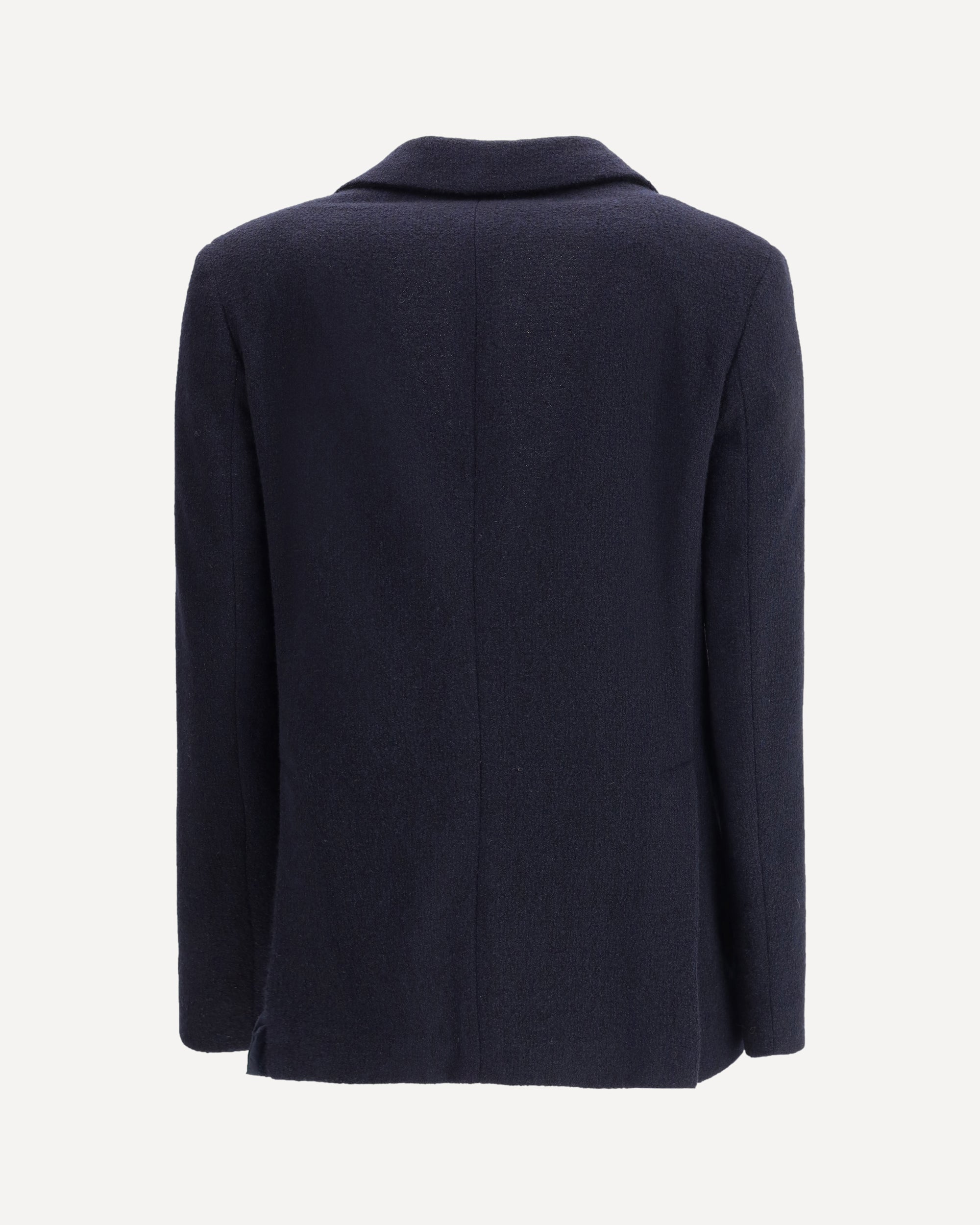 Lardini's wool Blazer combines timeless elegance with attention to detail. Featuring a single-breasted button closure and classic lapels, it is embellished with the famous flower-shaped pin, a distinctive symbol of the brand. The two patch pockets on the front give a more casual touch, making it perfect for both refined looks and more casual outfits.