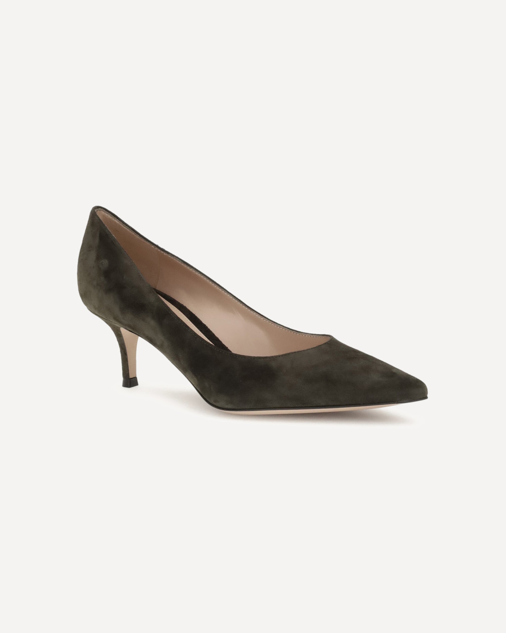 Gianvito Rossi's suede Pumps combine elegance and sophistication. Featuring a kitten heel and an almond toe, they offer a sophisticated and feminine silhouette perfect for a chic and timeless look.