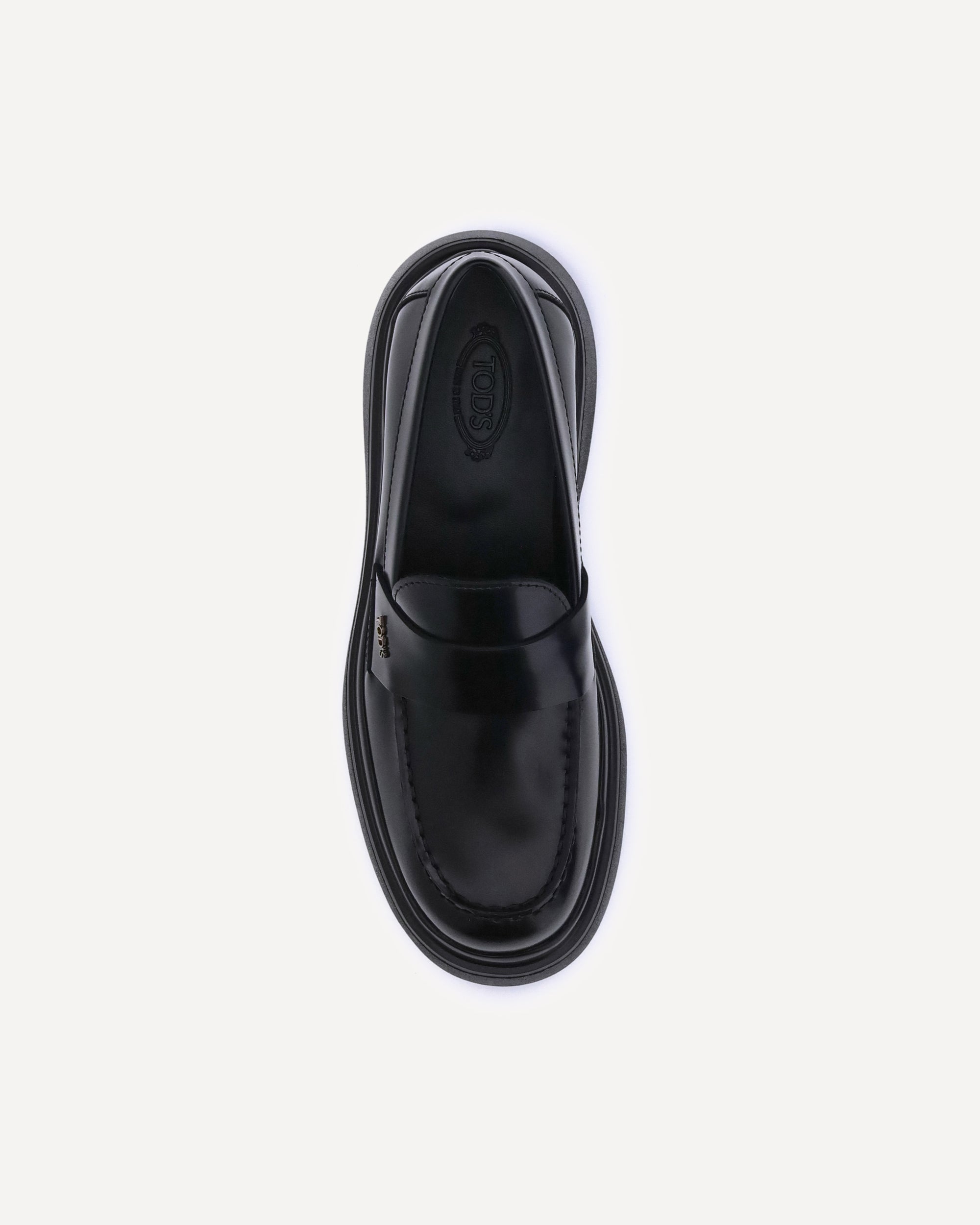 Tod's patent leather Loafers reinterpret a classic with a contemporary touch. Featuring a rubber platform sole that provides momentum and comfort, they have a rounded toe and a side logo plaque, a distinctive detail that elegantly signs the essential design of the model.