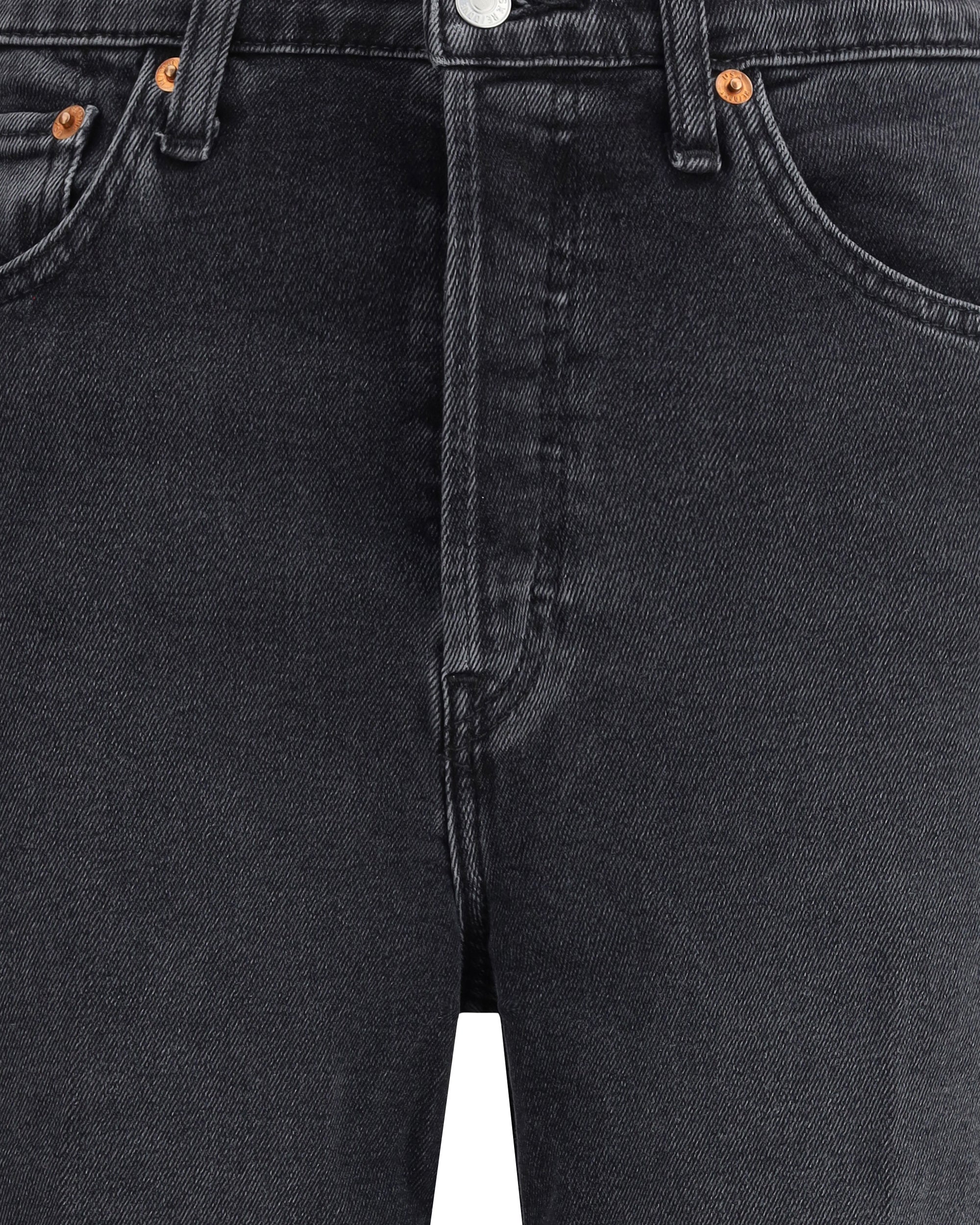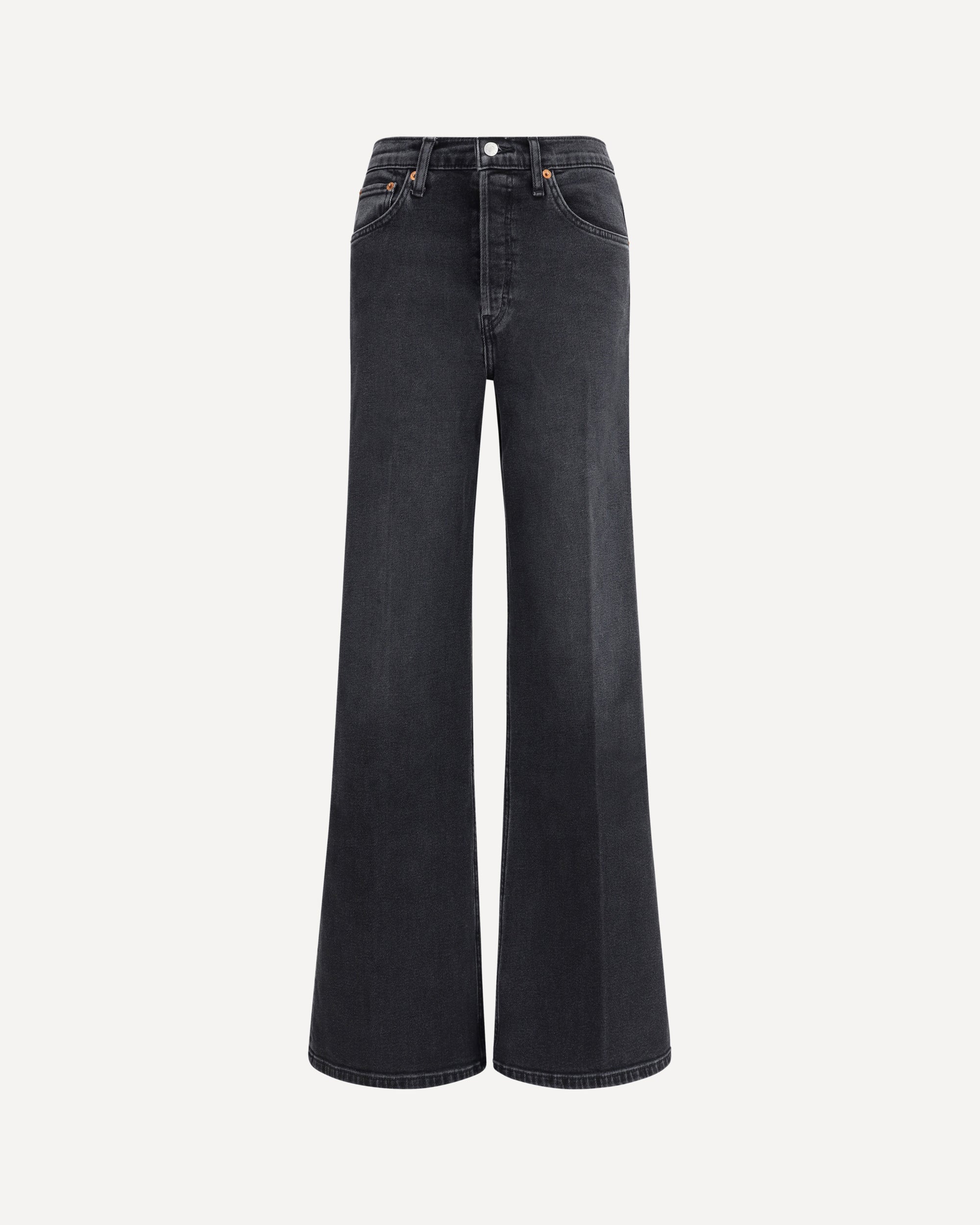 Re/Done's wide leg Jeans feature a high-waisted design with five pockets and belt loops. The front closure features buttons, completing a versatile and trendy design with the distinctive wide leg.