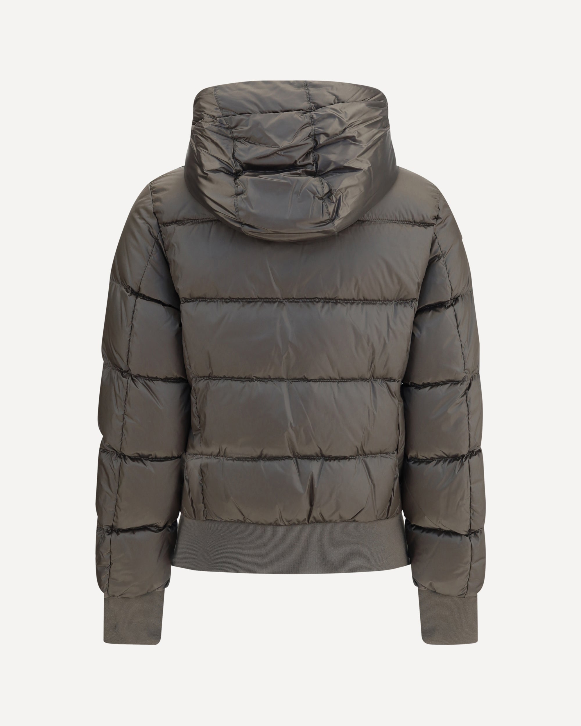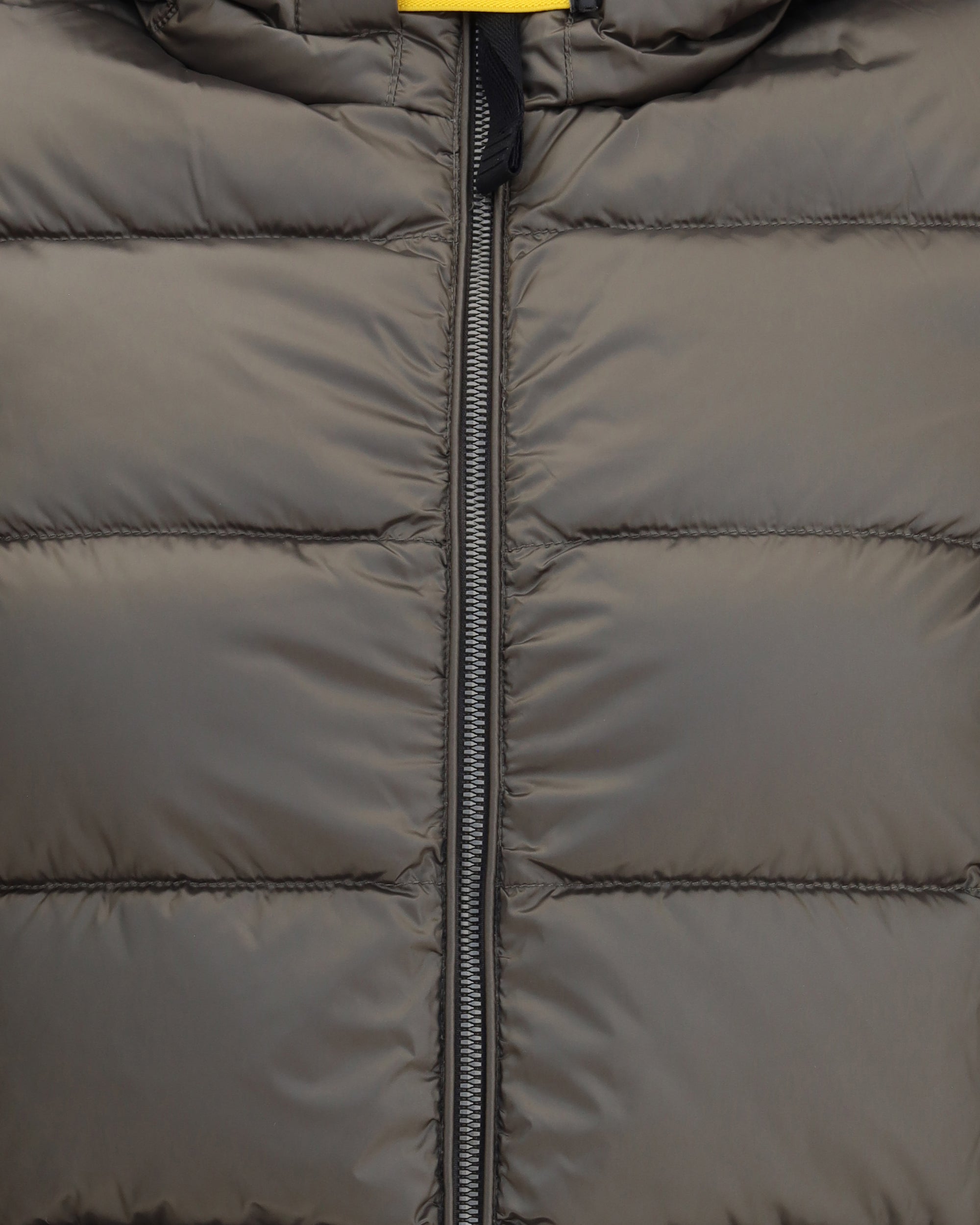 The Mariah hooded Down Jacket by Parajumpers combines functionality with distinctive design. Featuring an adjustable drawstring hood and a double-slider front zipper closure, it offers versatility and comfort. The garment features two zippered pockets and an inner pocket with Velcro closure for security and convenience. Underarm ventilation ensures breathability, while elastic rib hem and cuffs give a snug, comfortable fit. Completing the look is the Parajumpers patch on the sleeve and the iconic removable yellow tape at the collar closure, a hallmark of the brand.