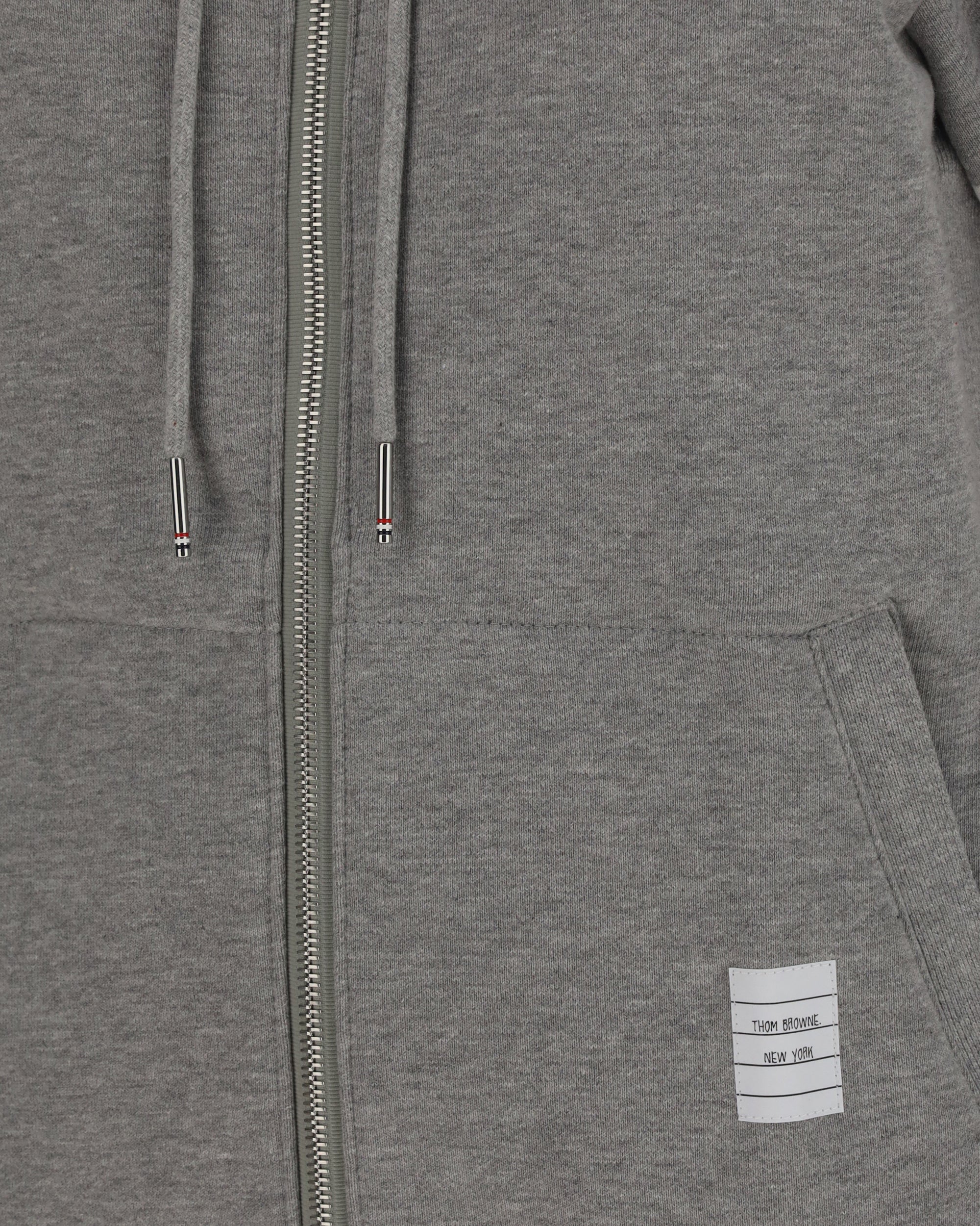 The Cotton Hooded Sweatshirt by Thom Browne is a casual and iconic Sweatshirt, featuring a comfortable fit and distinctive brand details. The design includes an adjustable drawstring hood, a front zip closure, and a kangaroo pocket. Ribbed cuffs and hem provide a defined structure, while the logo patch on the front and the striped band on the left sleeve add a recognizable touch. Perfect for contemporary looks with a bold character.
