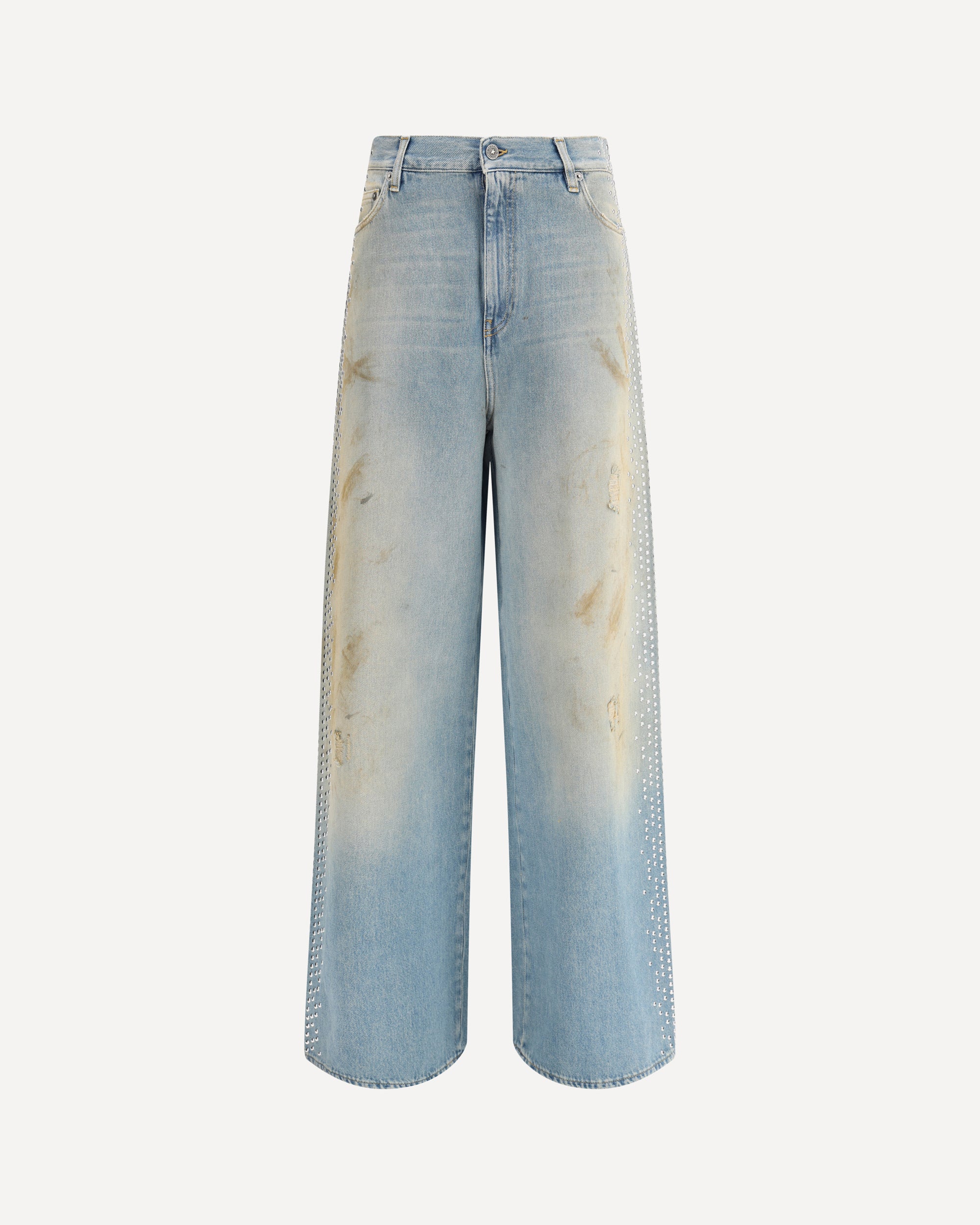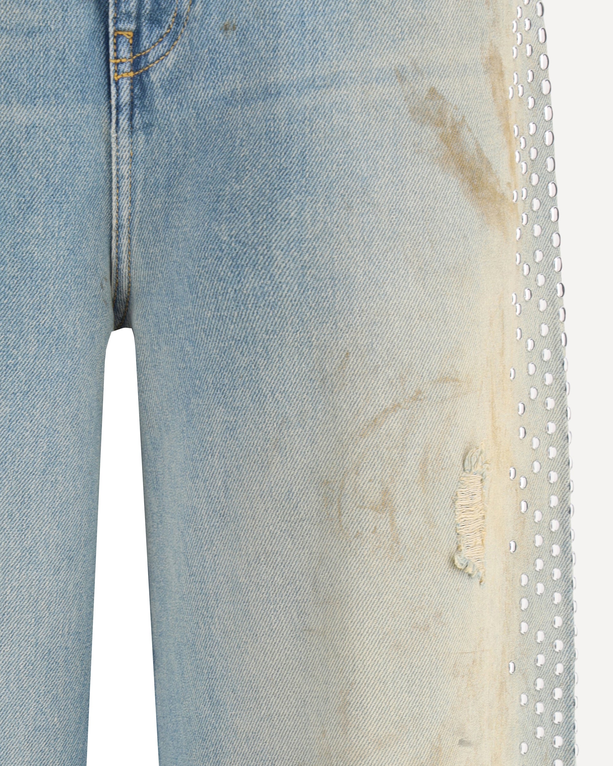 Golden Goose's Journey boyfriend Jeans stand out for their worn-effect design that recalls the brand's lived-in aesthetic. Made in the classic five-pocket model, they feature a zipper and button closure and are embellished with studs applied along the sides, for a gritty and contemporary touch. A garment with a strong character, perfect for casual looks with a strong personal style.