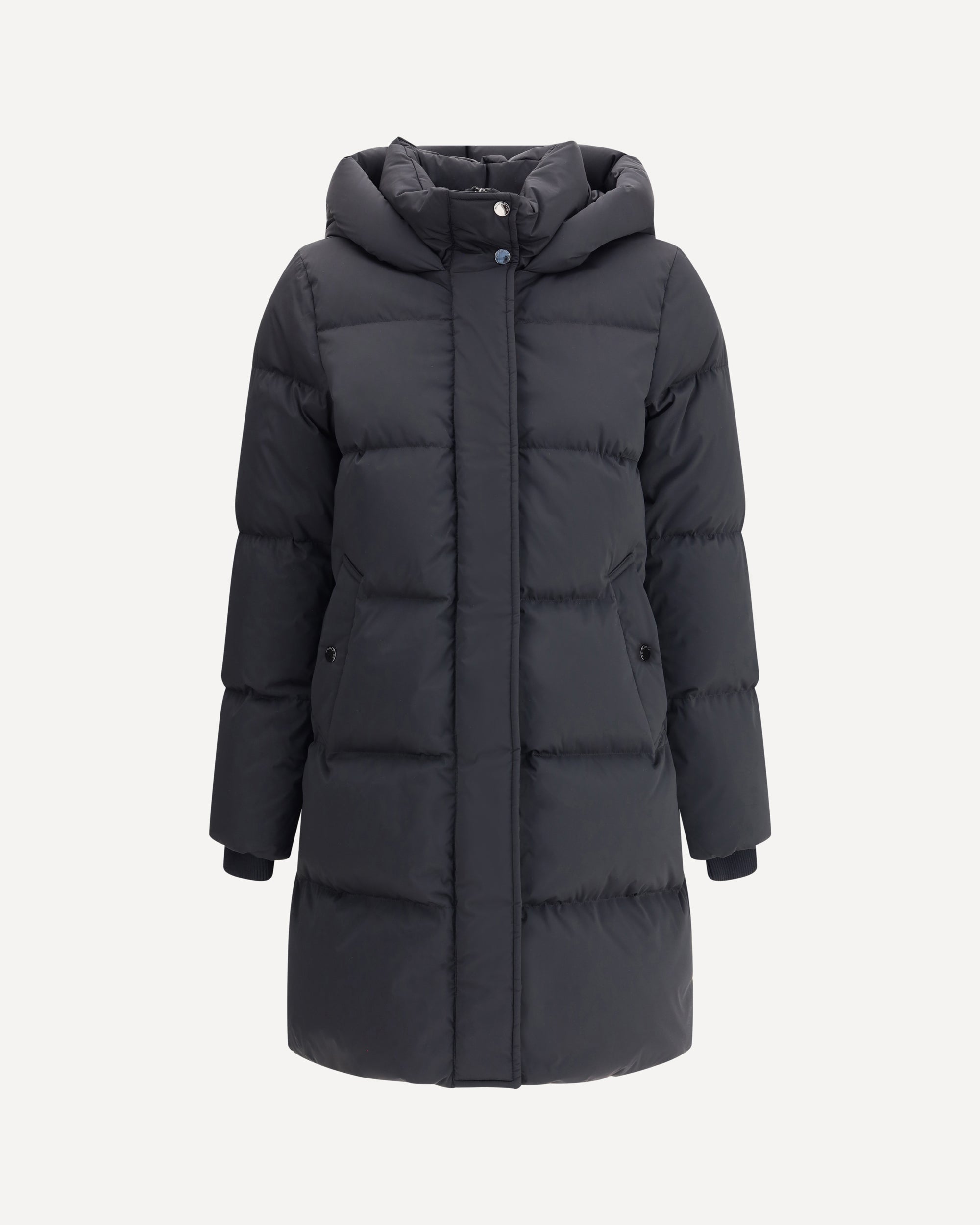 The Kelly Down Jacket by Woolrich combines practicality and contemporary style. Featuring elastic cuffs and a hood, it features a front zipper and button closure, zippered side slits and two welt pockets. The padded and quilted design ensures warmth and comfort for any occasion.