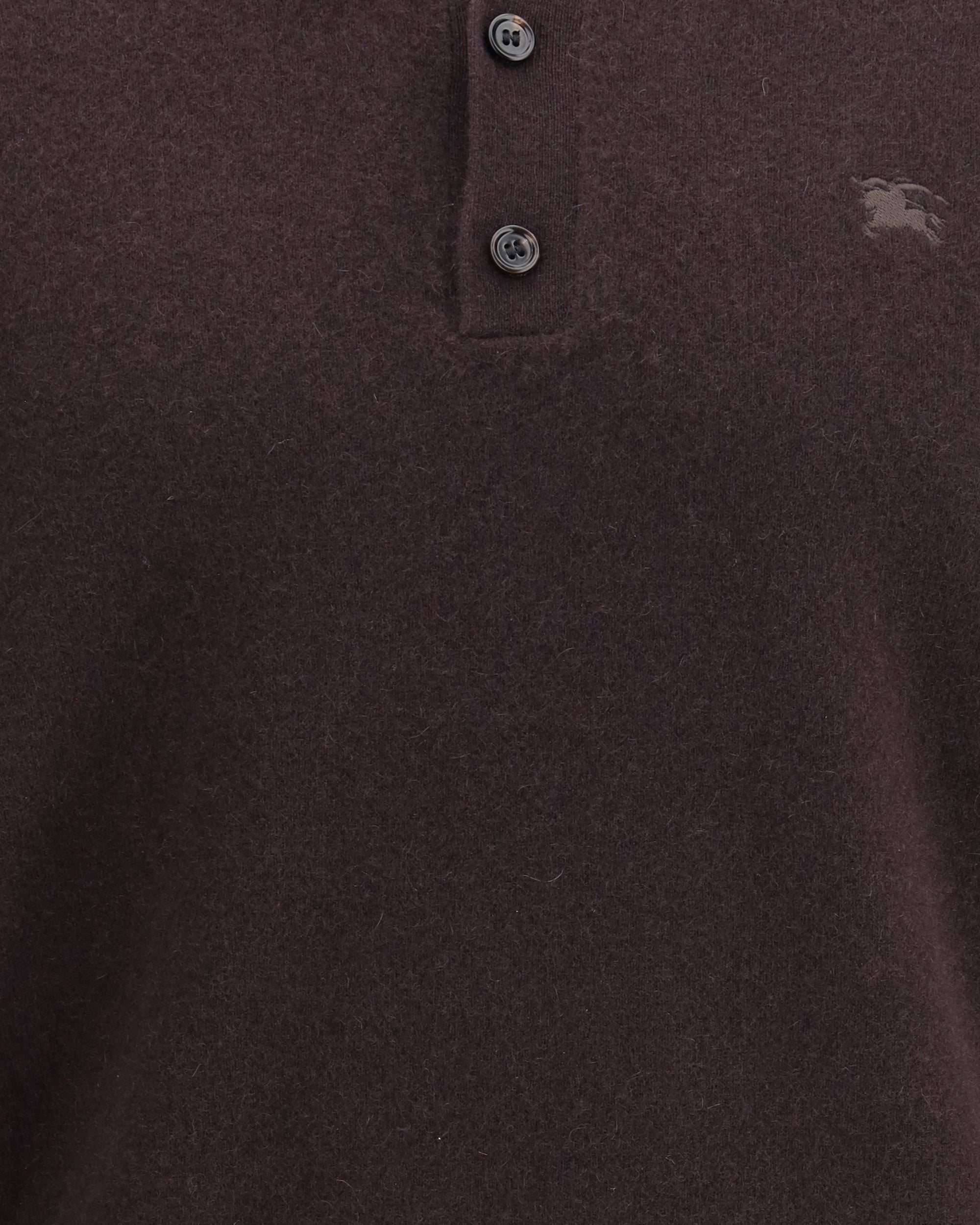 Burberry's cashmere long-sleeved polo sweater is a garment that combines the softness of fine yarn with the house's iconic details. Made from pure cashmere, it offers a comfortable fit and a luxurious feel against the skin. The design features a classic button placket and ribbed trim on the collar, cuffs and hem for a defined yet relaxed silhouette. The embroidered Equestrian Knight Design, Burberry's historic symbol, stands out on the chest, adding a distinctive and refined touch. A versatile and timeless garment, perfect for everyday elegance.