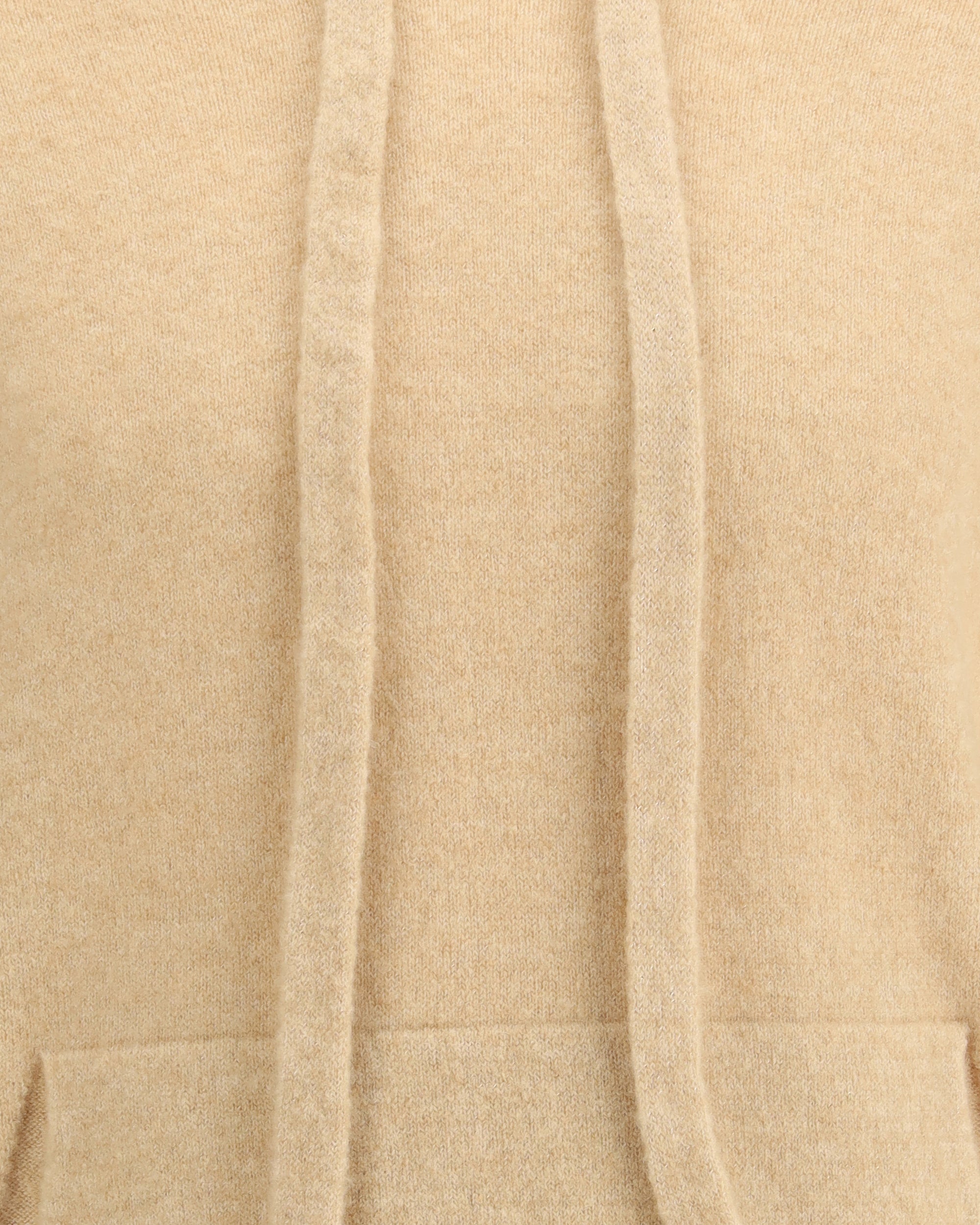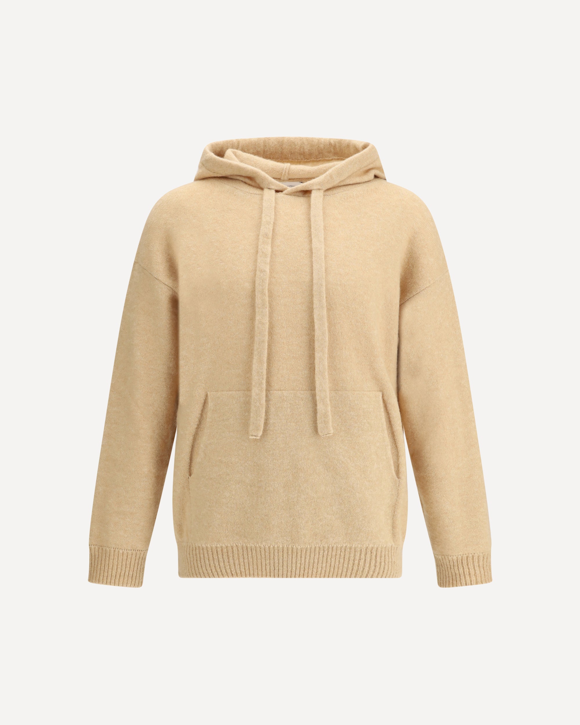 The Cashmere hooded Sweater by Laneus combines the elegance of fine yarn with a casual, relaxed design. Made of soft cashmere, it offers a snug, comfortable feel that's ideal for relaxed moments or sophisticated looks with a casual spirit. The adjustable drawstring hood adds practicality, while the ribbed hem and cuffs ensure a well-defined fit. Completing the design is the pouch pocket on the front, a functional detail that echoes the garment's sporty-chic aesthetic.