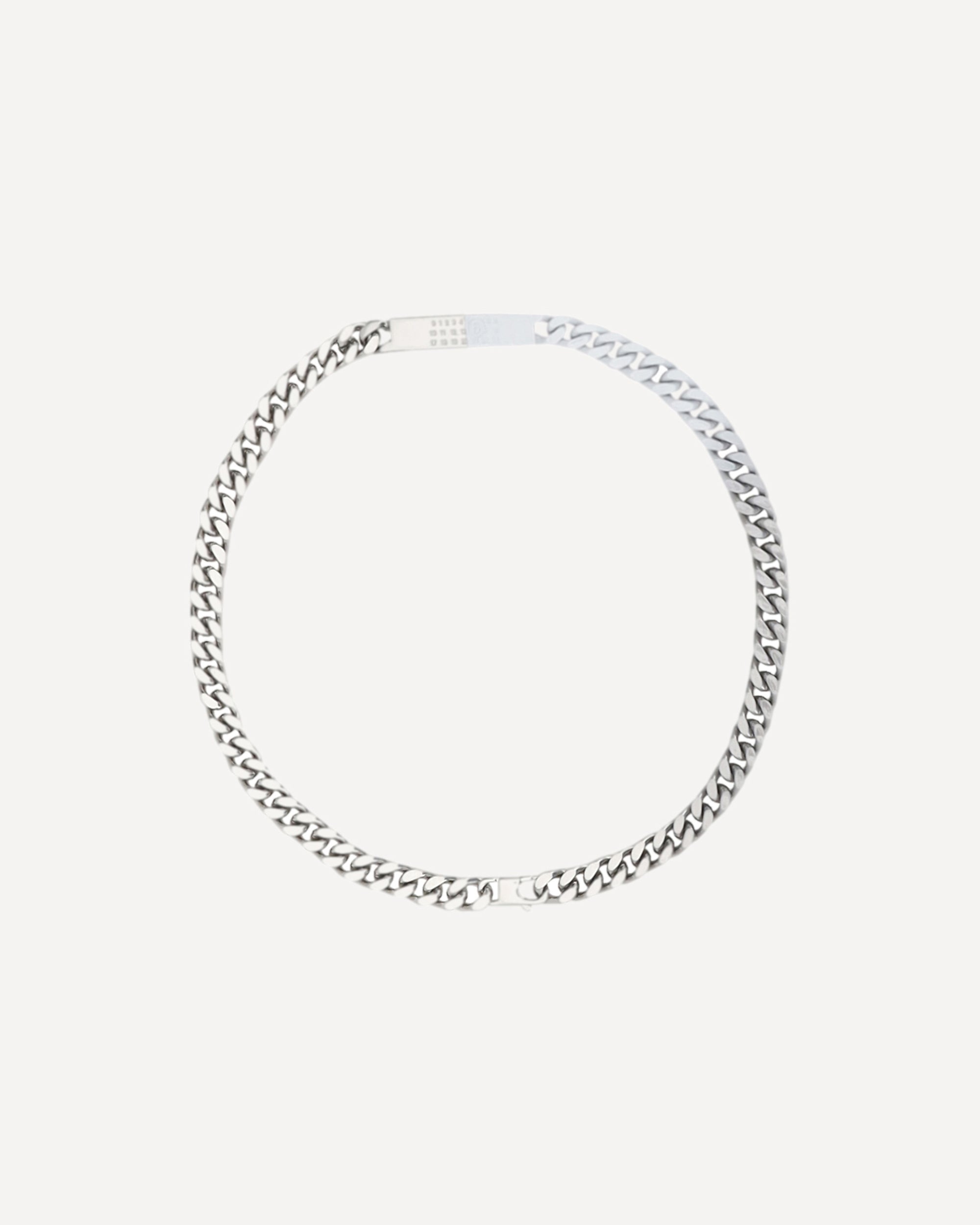 MM6's Necklace is an elegant chain model, featuring a lobster clasp closure that ensures its practicality and security. The flat logoed plaque, present as a distinctive detail, adds a touch of luxury and recognition to the design.