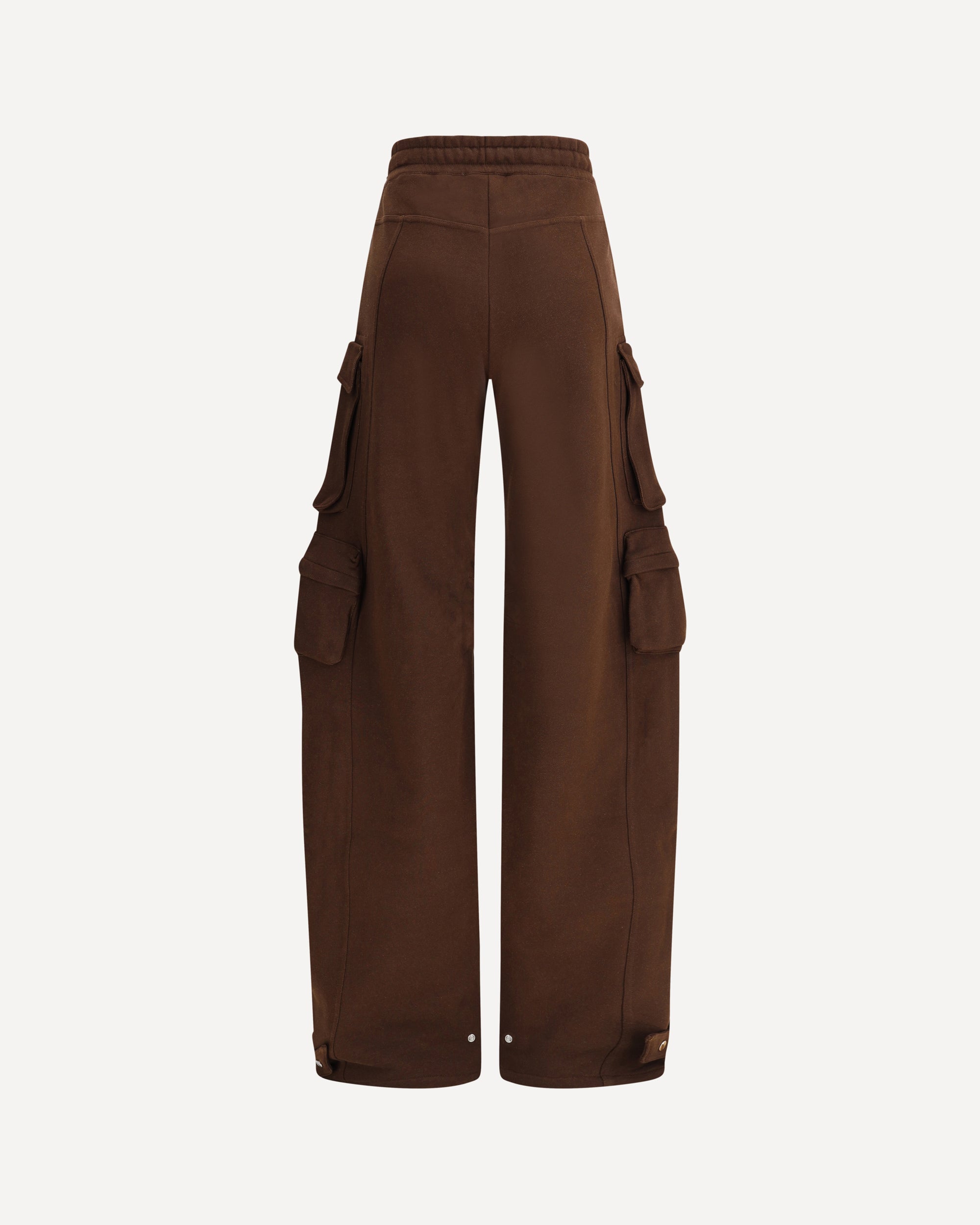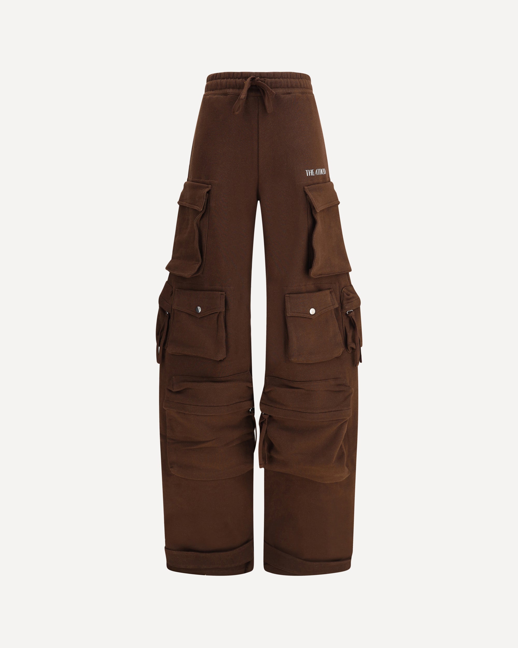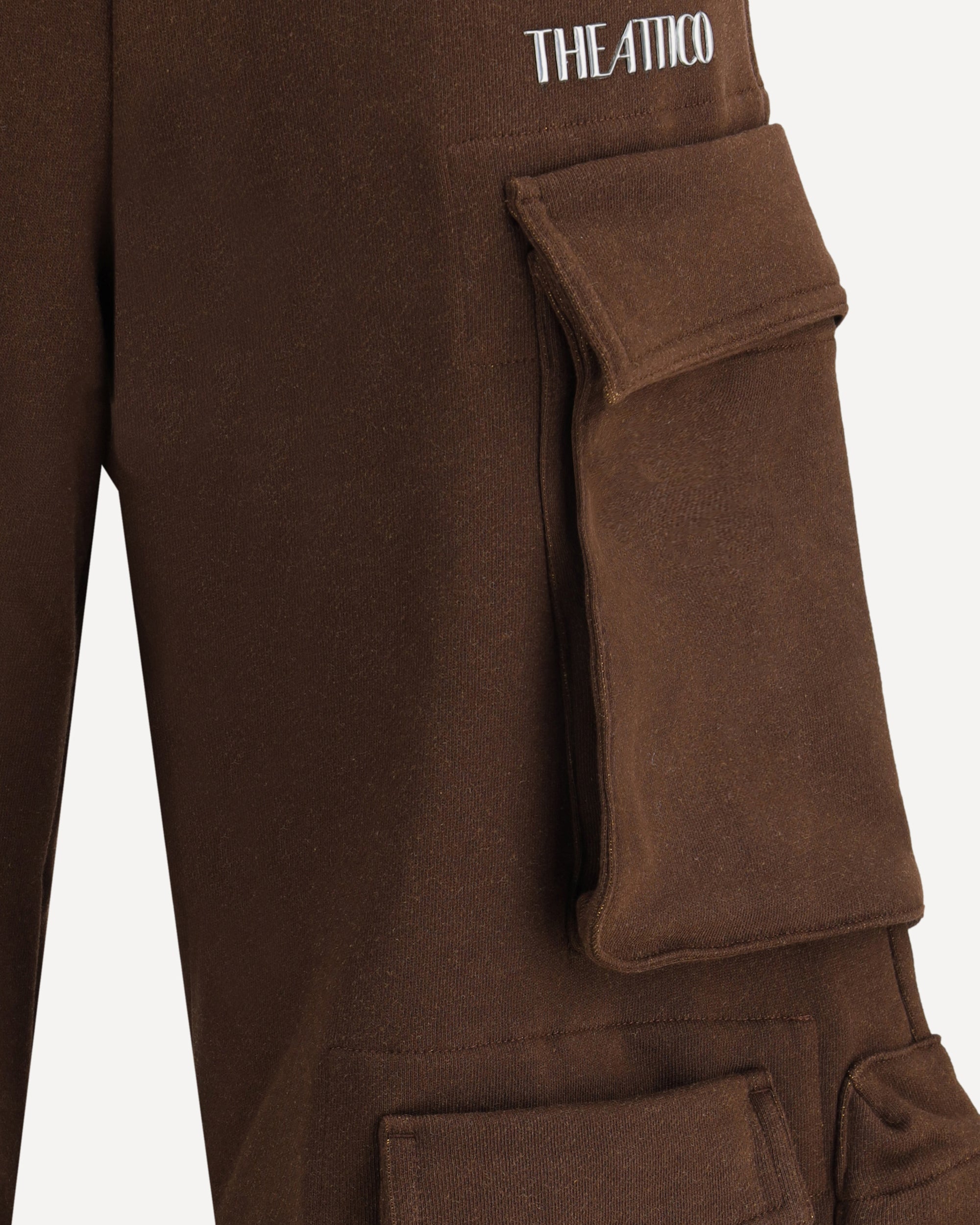 Cotton cargo Sweatpants by The Attico, featuring maxi cargo pockets on the side and front panels, for a practical and trendy look. The elasticated waistband with adjustable drawstring ensures comfort and adaptability, while the adjustable ankle with button allows you to customize the fit. The wide legs and the fleece interior complete the design, making these pants perfect for an urban and comfortable style.