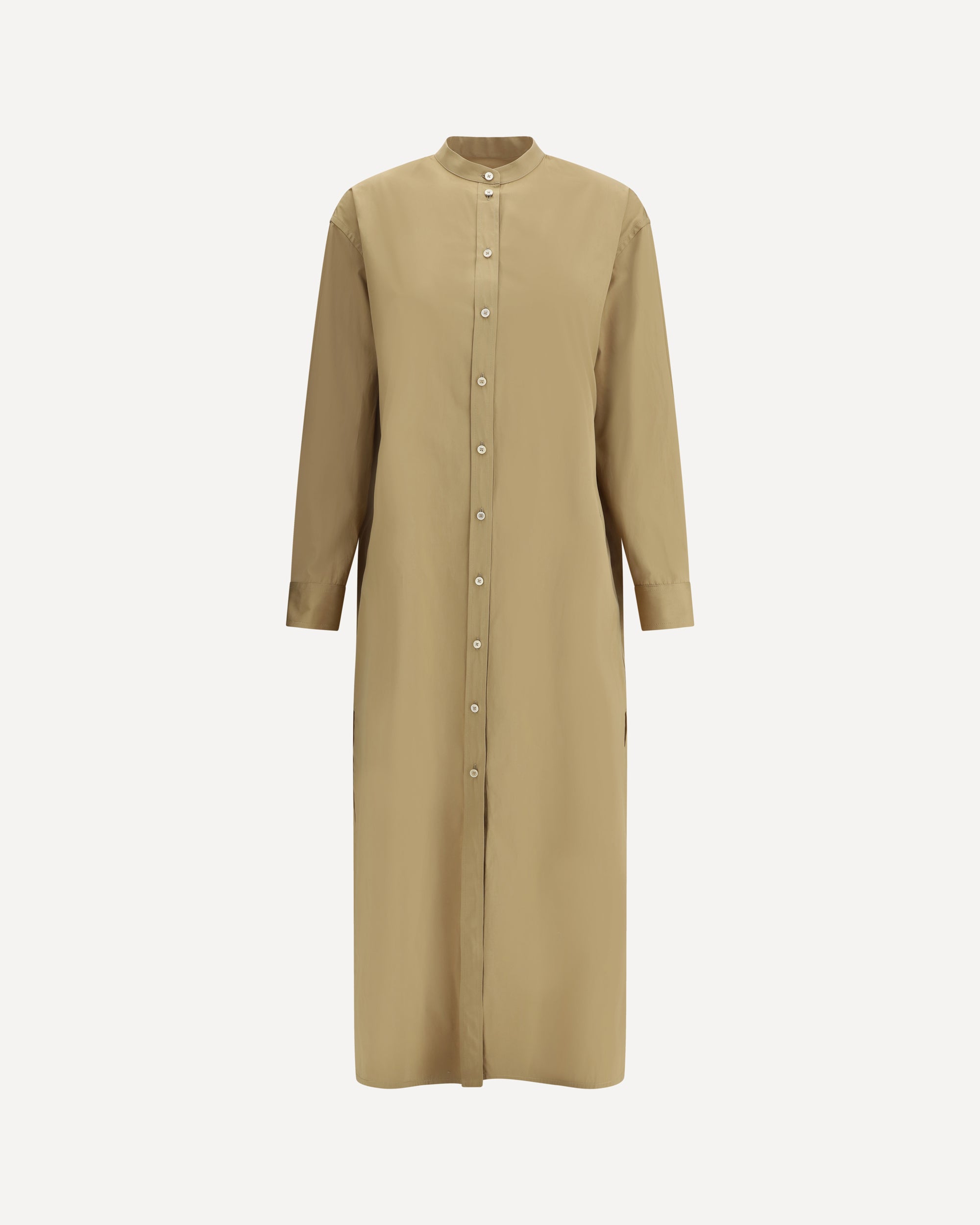 The Jil Sander long shirt Dress is a garment that expresses minimalist elegance and modernity. The collarless design gives a clean and sophisticated look, while the front button closure maintains the classic and functional structure. The two side slits add movement and dynamism to the model, without compromising its refined line. The iconic embroidered logo on the front adds a discreet touch of recognition, emphasizing the quality and authenticity of the brand. A versatile and sophisticated dress, perfect for elegant occasions or for an everyday look with a touch of luxury.