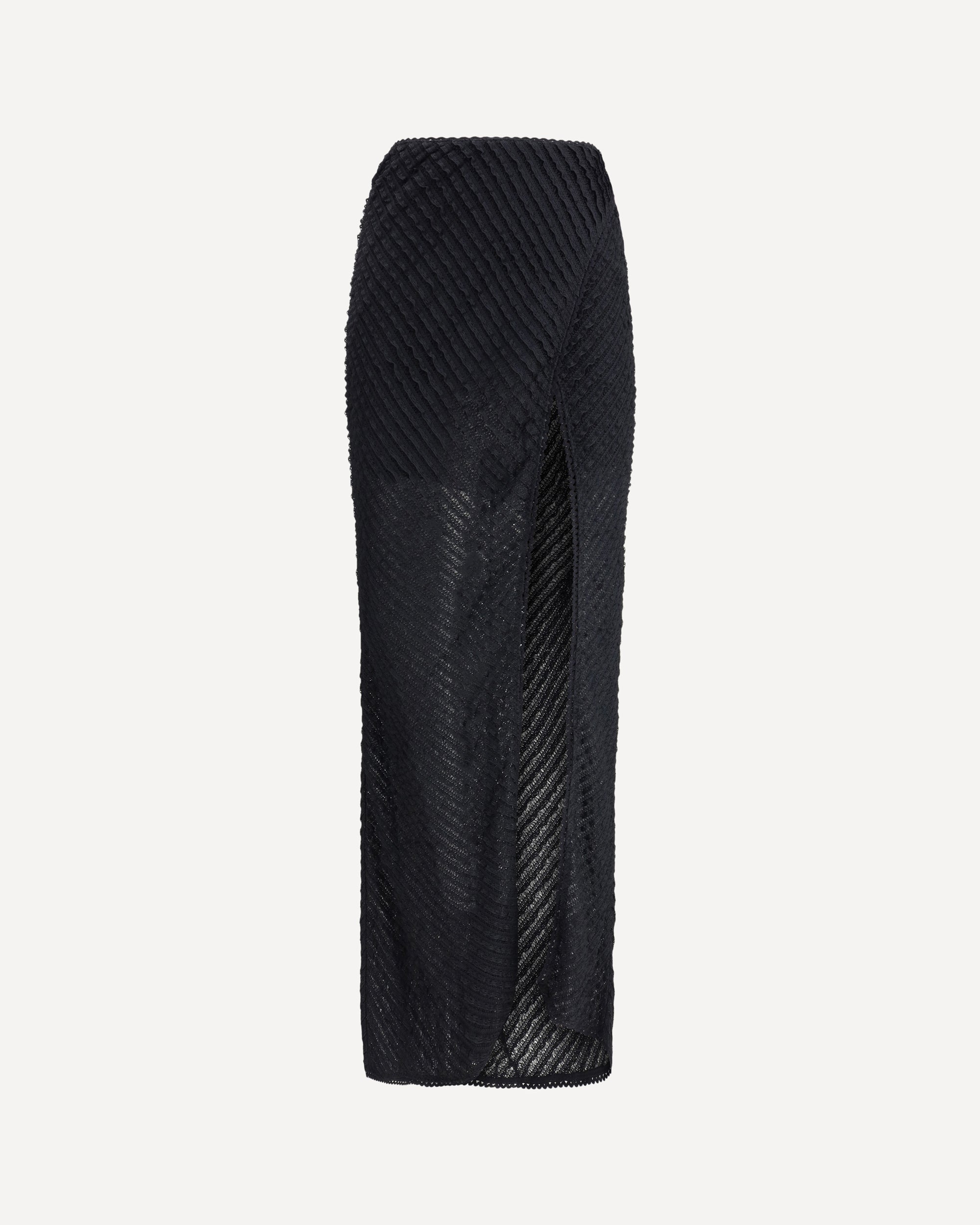 The Eris Long Skirt by Charo Ruiz is made of fine stretch knit, designed to flatter the silhouette with elegance and comfort. Featuring a high waist with an elastic band and a side slit, it combines femininity and practicality in a sophisticated and contemporary design.