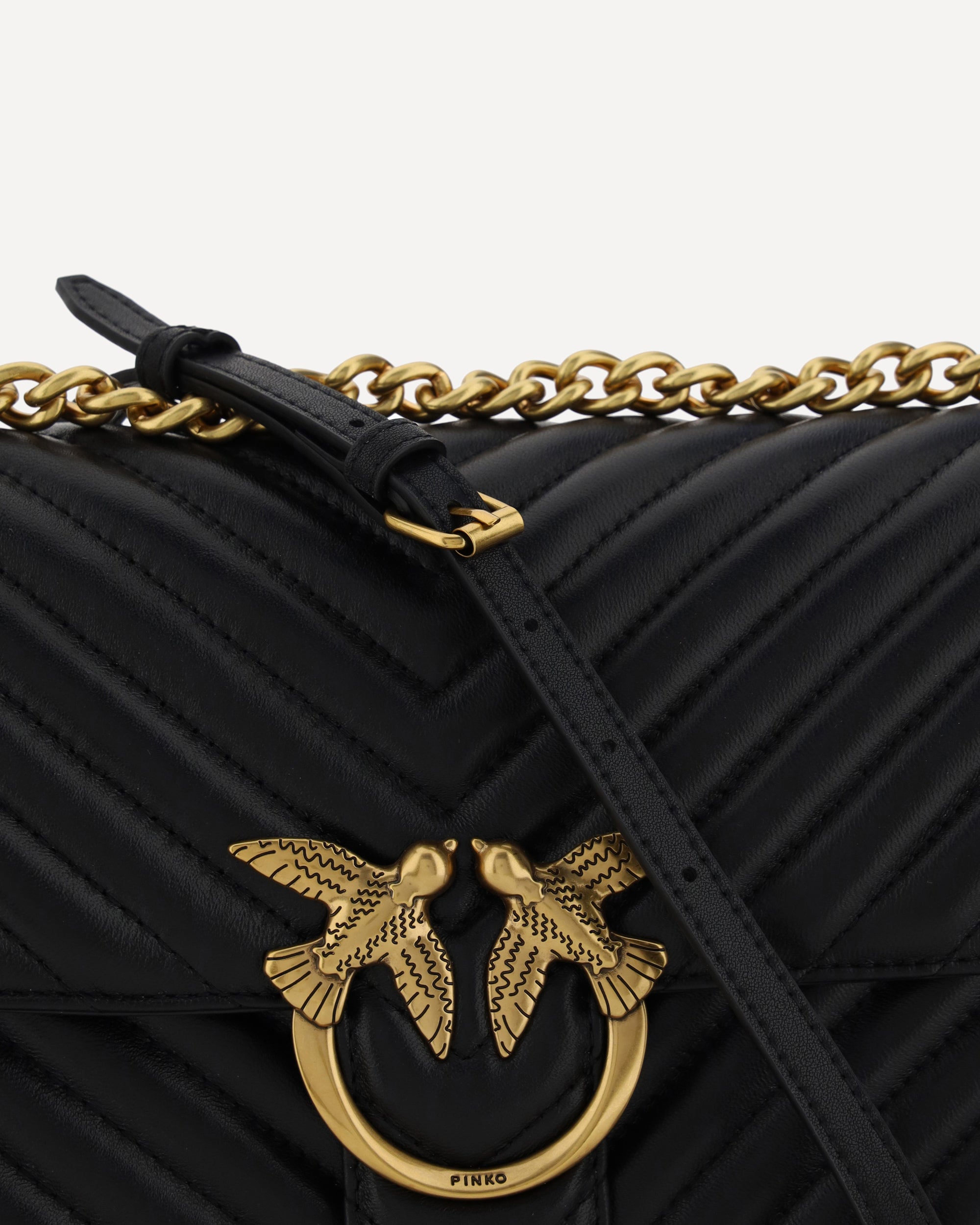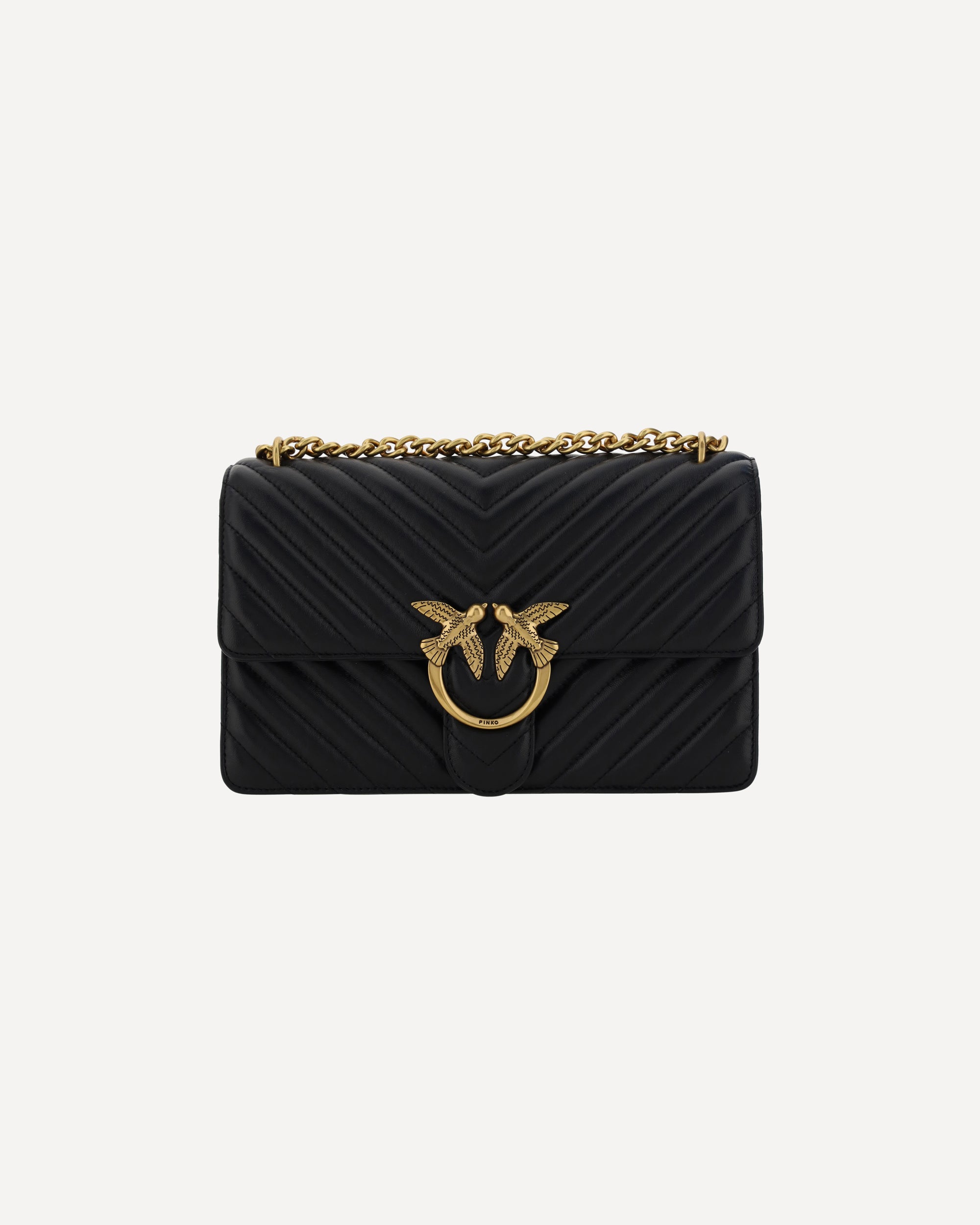 The Love One Classic Leather Shoulder Bag by Pinko is a true symbol of elegance and versatility. The front magnetic button closure ensures ease of use and security, while the iconic gold-plated Love Birds logo, embossed on the front, is a distinctive mark of luxury. The quilted and padded design gives a sophisticated texture, making the bag not only beautiful, but also pleasant to the touch. With the double internal compartment, this bag offers functionality, allowing you to organize objects in a practical and orderly way. The sliding chain shoulder strap allows you to wear it comfortably, while the flat leather shoulder strap, adjustable and removable, offers the possibility of personalising the look according to your preferences. The tone-on-tone embroidered brand monogram on the back adds an additional exclusive detail.