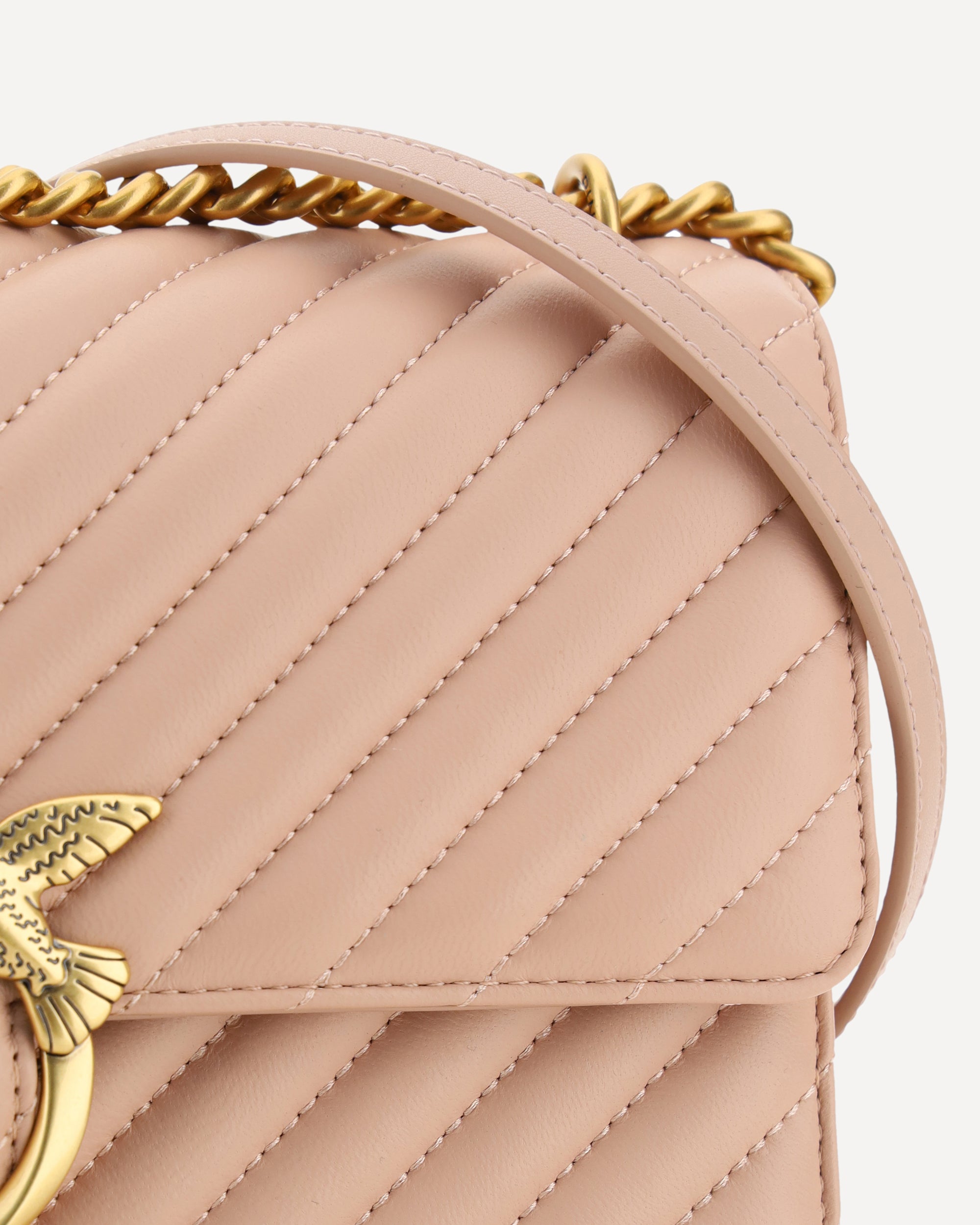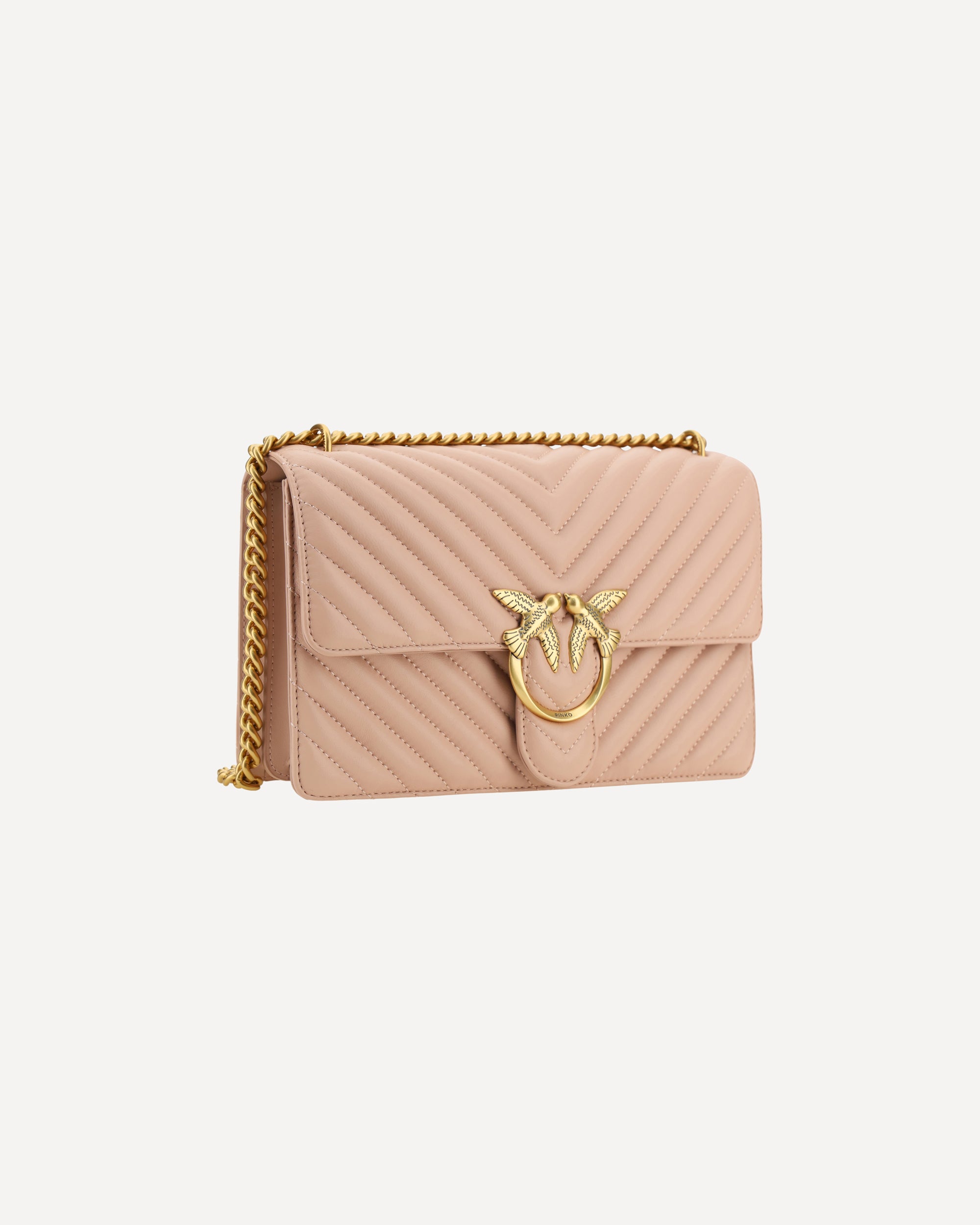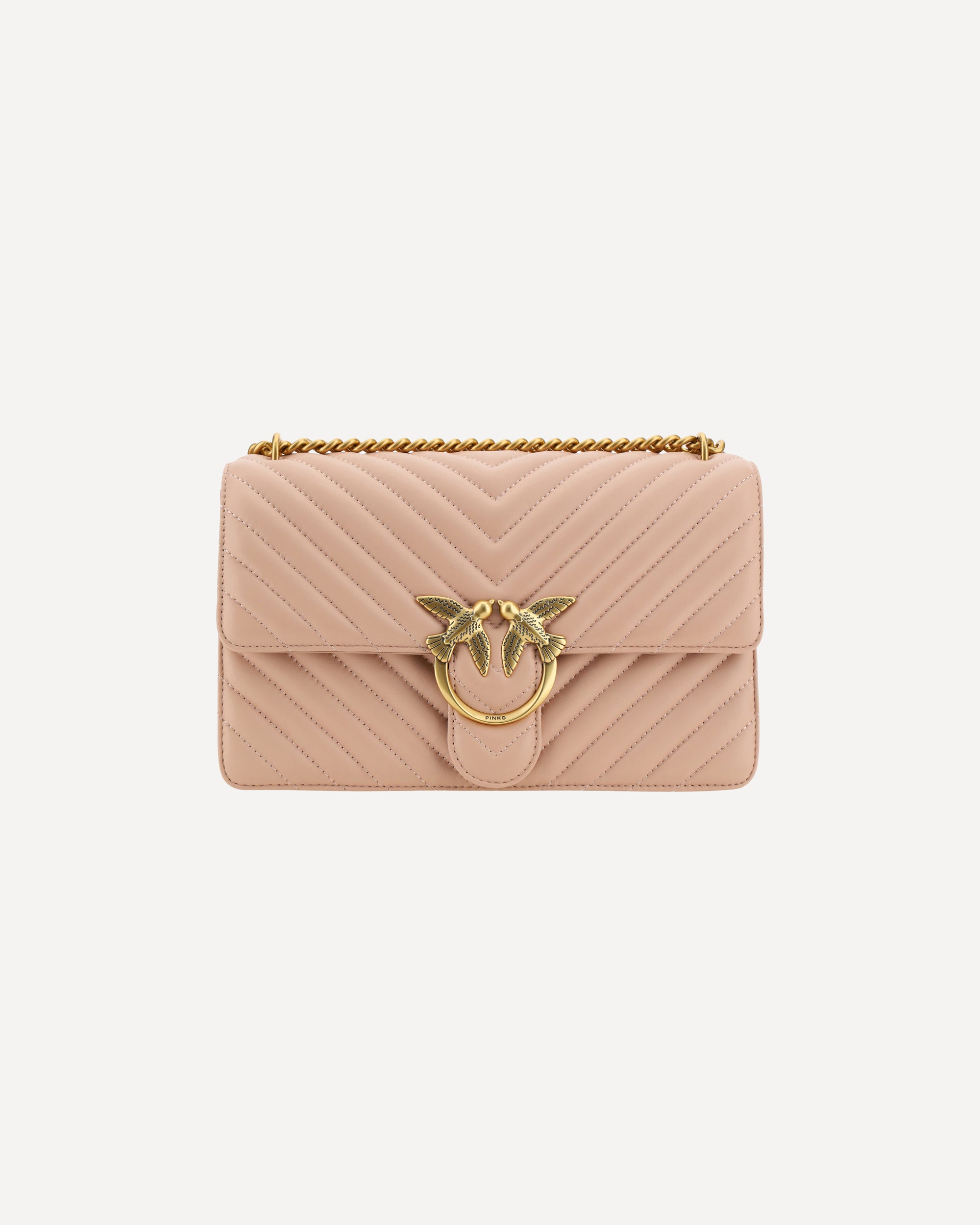The Love One Classic Leather Shoulder Bag by Pinko is a true symbol of elegance and versatility. The front magnetic button closure ensures ease of use and security, while the iconic gold-plated Love Birds logo, embossed on the front, is a distinctive mark of luxury. The quilted and padded design gives a sophisticated texture, making the bag not only beautiful, but also pleasant to the touch. With the double internal compartment, this bag offers functionality, allowing you to organize objects in a practical and orderly way. The sliding chain shoulder strap allows you to wear it comfortably, while the flat leather shoulder strap, adjustable and removable, offers the possibility of personalising the look according to your preferences. The tone-on-tone embroidered brand monogram on the back adds an additional exclusive detail.